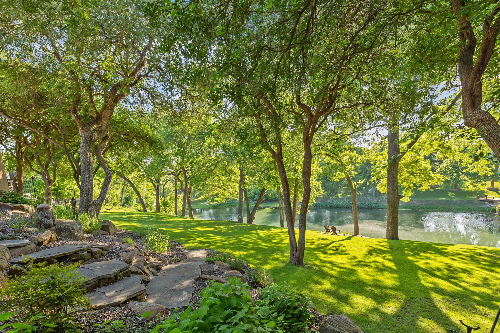 Guadalupe River views, a resort-style backyard, and a setting built for the Hill Country lifestyle. Conveniently located just minutes from Gruene and Downtown New Braunfels, offering easy access to dining, shopping, and entertainment. With 83’ of scenic river frontage, this property offers direct water access via a private stone walkway, surrounded by mature trees and well-designed landscaping that creates both privacy and a true waterfront atmosphere. The outdoor space is designed to be the centerpiece. A pool and spa with waterfall, covered patio with wood ceiling, full outdoor kitchen, and wood-burning fireplace create a comfortable, all-season gathering space. Whether hosting friends, enjoying a quiet evening, or spending the day by the water, the layout makes it easy to enjoy the river setting. Inside, the home features an open-concept design with large windows that bring in natural light and frame views of the pool and river. The living room is anchored by a floor-to-ceiling stone fireplace with custom built-ins, while the kitchen offers granite countertops, double ovens, gas cooktop, and a spacious island ready for everyday living or entertaining. The primary suite provides a private escape with river views and outdoor access, along with a spa-style bath featuring a soaking tub, walk-in shower, dual vanities, and a generous walk-in closet. Metal roof, irrigation from the river, dual HVAC systems, and an oversized garage add long-term durability and function. Waterfront access. Outdoor living. Hill Country comfort—all in one riverfront setting.