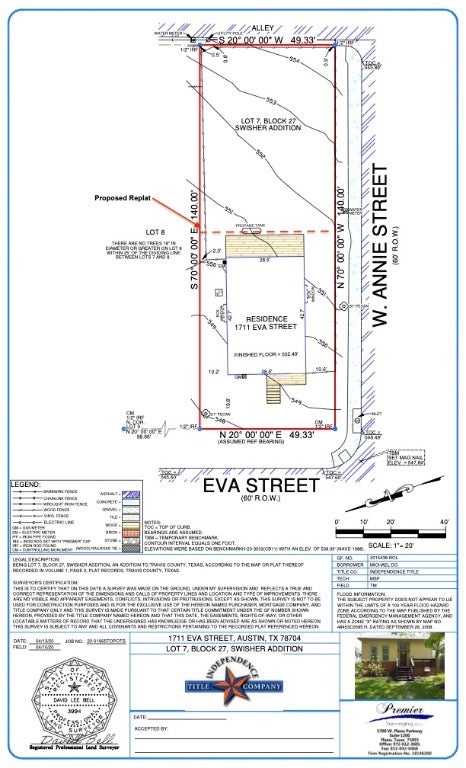 Unmatched Location. Unlimited Potential. Owner selling selling existing stucture prepped for remodeling and 1/2 of the lot. Welcome to 1711 Eva Street, ideally situated on the corner of Eva and Annie Streets in the sought-after Bouldin Creek Neighborhood—just 400 feet from South Congress Avenue. This rare 1925 Craftsman-style home sits on a premium corner lot with alley access, offering one of the most exciting redevelopment opportunities in South Austin. Prime remodel opportunity. beautiful corner lot with great trees. Zoned for potential multi-unit development under new City of Austin ordinances. Just steps from iconic SoCo shops, cafes, restaurants, and entertainment. 1901 Newton (new corner construction) nearby shows the site's incredible potential! Current Condition: The property is prepped for major transformation. Kitchen is down to the studs, floors and vanities have been removed, and utilities (water and power) are currently off.