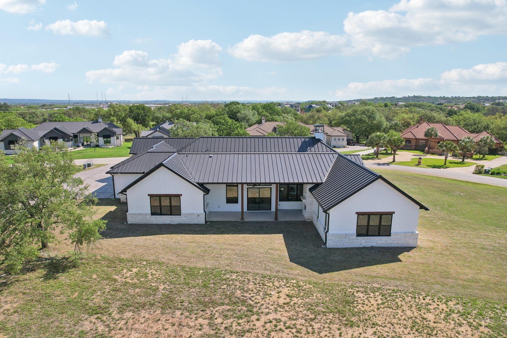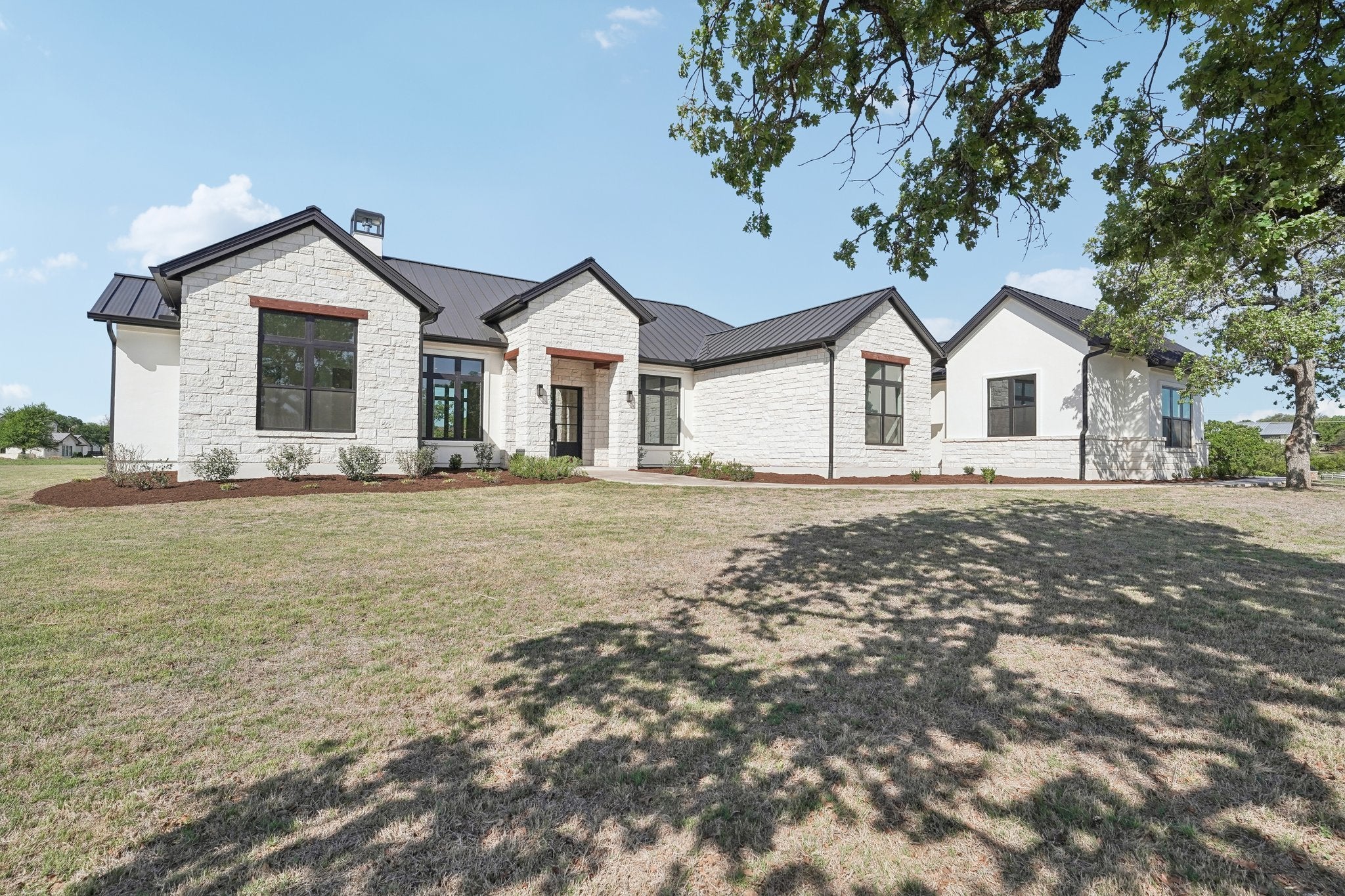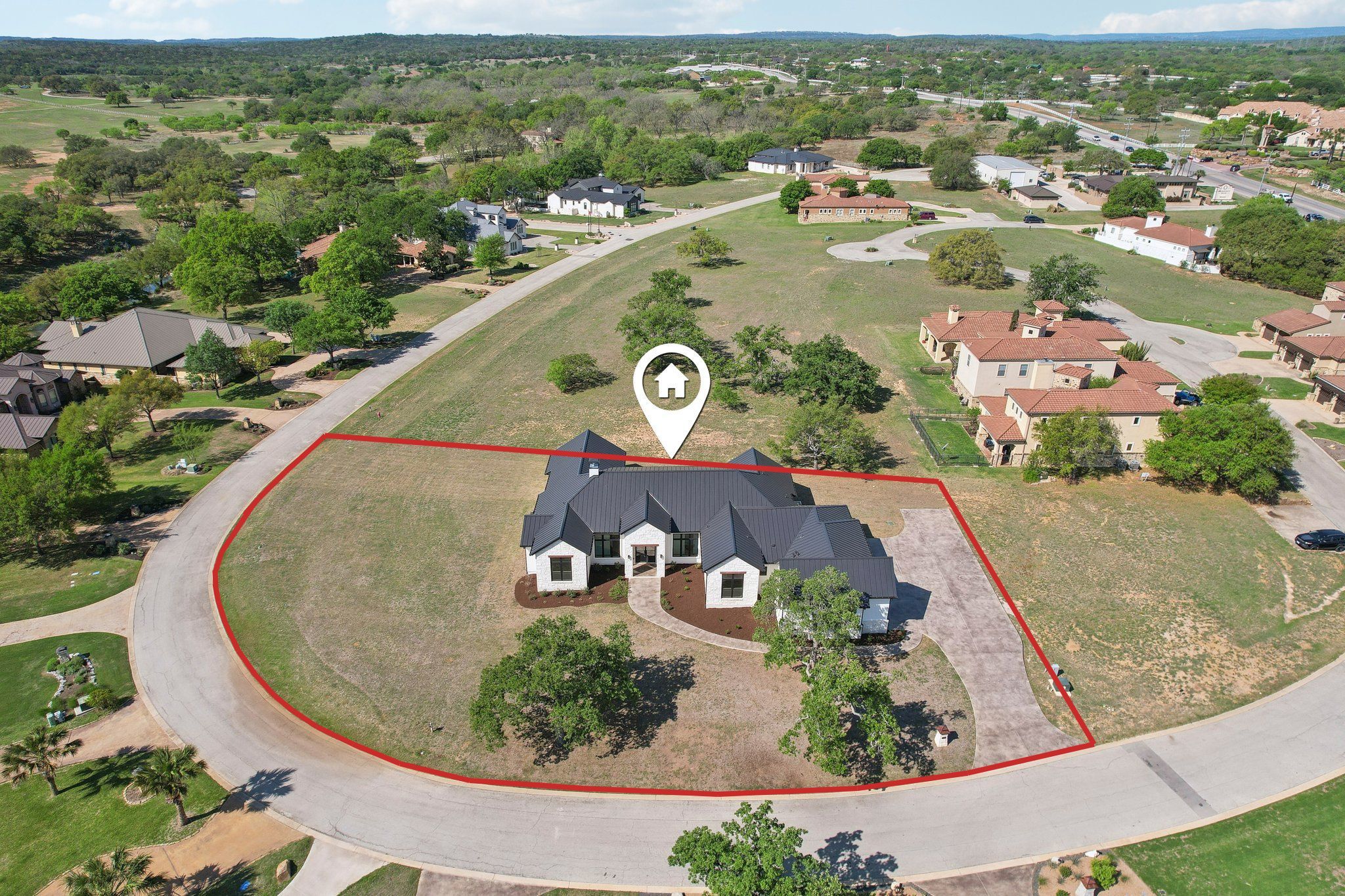 Designed for sophisticated entertaining and comfortable daily living, this newly built 3,746 sq. ft. residence in the exclusive gated Siena Creek community is a showcase of modern luxury. Situated on a generous 0.73-acre corner lot, this 5-bedroom single-story home offers a peaceful setting and an intelligent layout. From the moment you arrive, you’ll appreciate the striking exterior with its stone siding. As you step inside, you will be greeted by high vaulted ceilings and wide windows that flood the space with abundant natural light. You will find the heart of the home is the expansive great room, centered around a premium fireplace. Picture yourself entertaining as this space flows directly into a gourmet kitchen, featuring sleek quartz countertops, a large center island with a breakfast bar, and high-end stainless steel appliances, including a wine cooler. This impressive space is completed by a casual dining area and notable chandeliers. explore the spacious primary suite, a private retreat featuring a luxurious primary bathroom with a freestanding garden tub, a large tiled walk-in shower, double vanities, and a walk-in closet. You’ll also find the home's split floor plan includes four additional well-proportioned bedrooms, one of which includes a private ensuite bathroom, ideal for a guest suite. A significant highlight is the spacious bonus room—we invite you to imagine the possibilities as a game room, media room, or a private second living space. Step outside to the covered back porch and discover its outdoor stone fireplace and ceiling fan, creating the ideal setting for quiet mornings or evening gatherings. Living here provides a relaxed Hill Country lifestyle, complete with access to a private community pool. This is more than a home; it’s an opportunity to join a premier community, just minutes from Lake LBJ, golf, and scenic trails, with membership options at The Club at Horseshoe Bay.