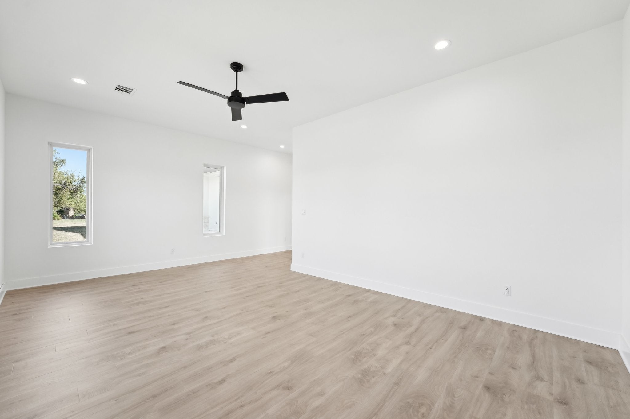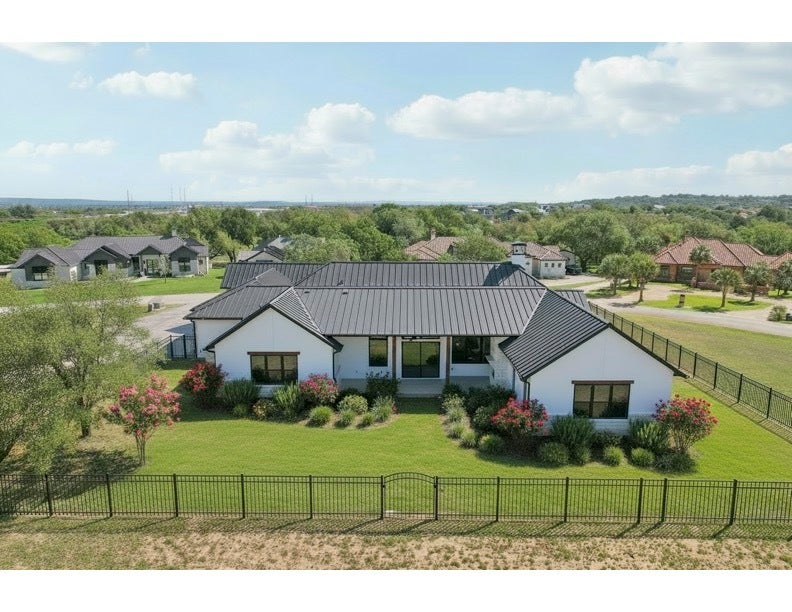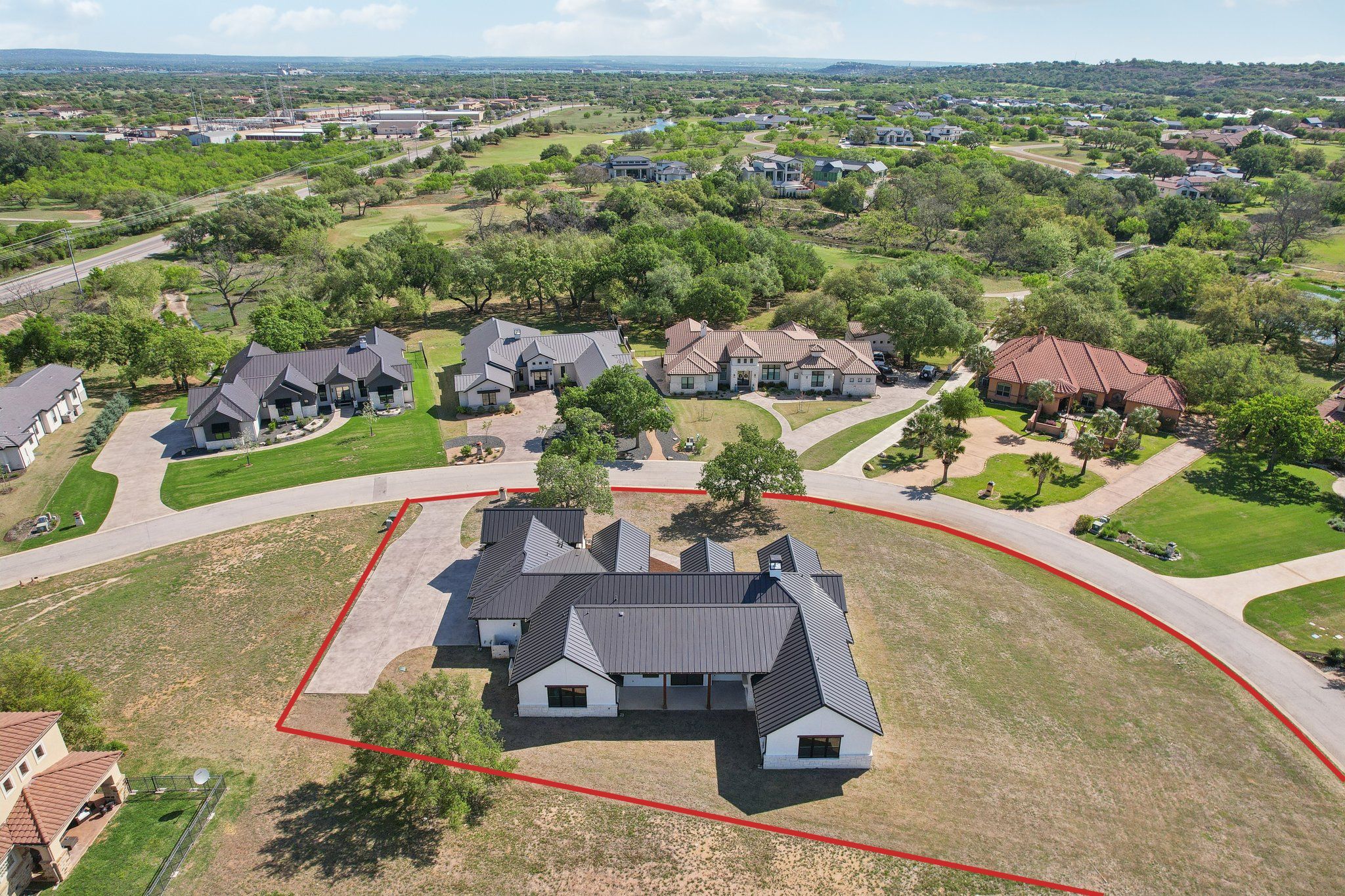 Designed for sophisticated entertaining and comfortable daily living, this newly built 3,746 sq. ft. residence in the exclusive gated Siena Creek community is a showcase of modern luxury. Situated on a generous 0.73-acre corner lot, this 5-bedroom single-story home offers a peaceful setting and an intelligent layout. From the moment you arrive, you’ll appreciate the striking exterior with its stone siding. As you step inside, you will be greeted by high vaulted ceilings and wide windows that flood the space with abundant natural light. You will find the heart of the home is the expansive great room, centered around a premium fireplace. Picture yourself entertaining as this space flows directly into a gourmet kitchen, featuring sleek quartz countertops, a large center island with a breakfast bar, and high-end stainless steel appliances, including a wine cooler. This impressive space is completed by a casual dining area and notable chandeliers. explore the spacious primary suite, a private retreat featuring a luxurious primary bathroom with a freestanding garden tub, a large tiled walk-in shower, double vanities, and a walk-in closet. You’ll also find the home's split floor plan includes four additional well-proportioned bedrooms, one of which includes a private ensuite bathroom, ideal for a guest suite. A significant highlight is the spacious bonus room—we invite you to imagine the possibilities as a game room, media room, or a private second living space. Step outside to the covered back porch and discover its outdoor stone fireplace and ceiling fan, creating the ideal setting for quiet mornings or evening gatherings. Living here provides a relaxed Hill Country lifestyle, complete with access to a private community pool. This is more than a home; it’s an opportunity to join a premier community, just minutes from Lake LBJ, golf, and scenic trails, with membership options at The Club at Horseshoe Bay.