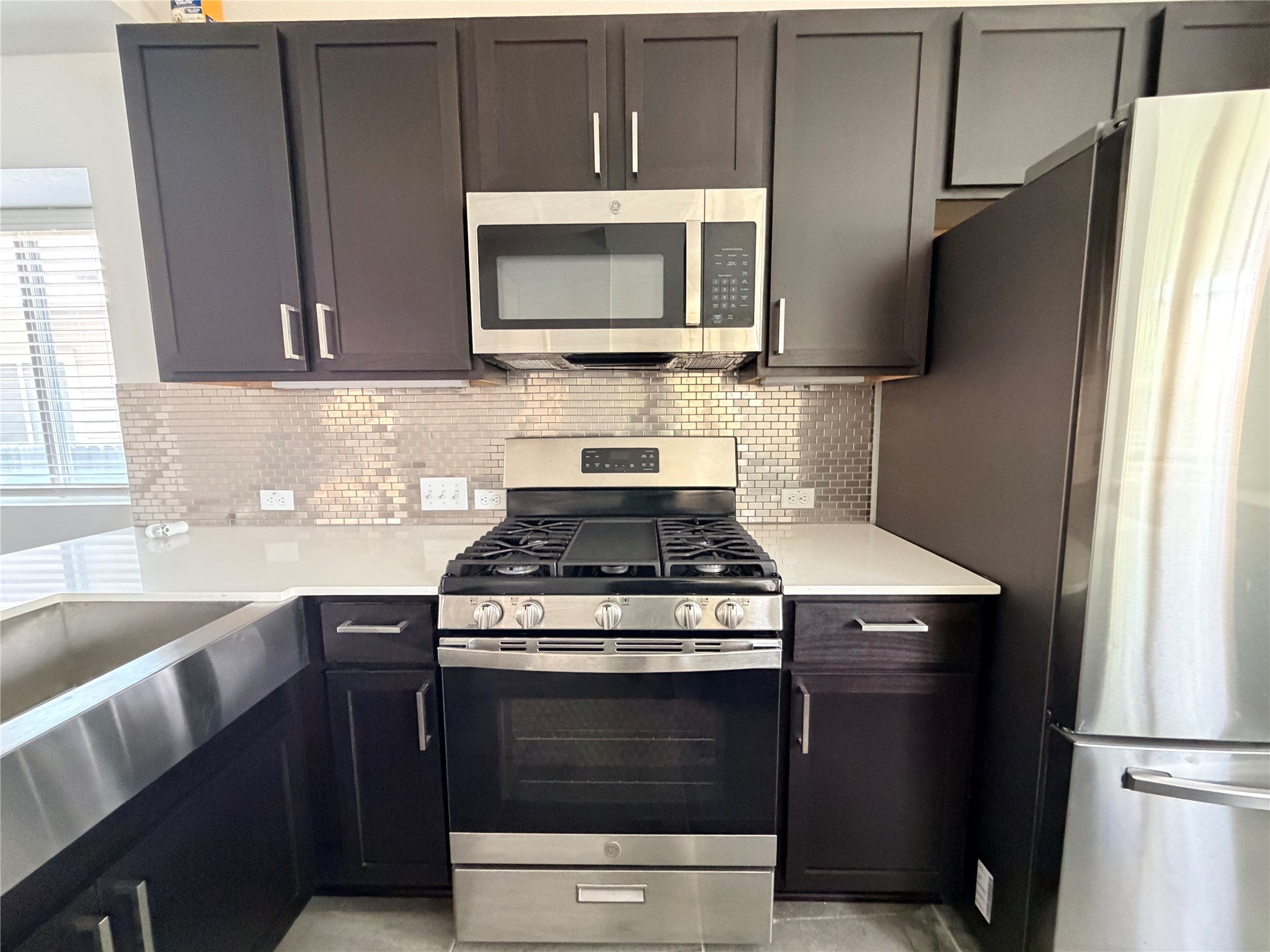 - Dryer, Dishwasher, Disposal, Gas Range, Microwave, Refrigerator, Range Hood, Stainless Steel Appliance(s), Tankless Water Heater, Vented Exhaust Fan, Washer, Convection Oven