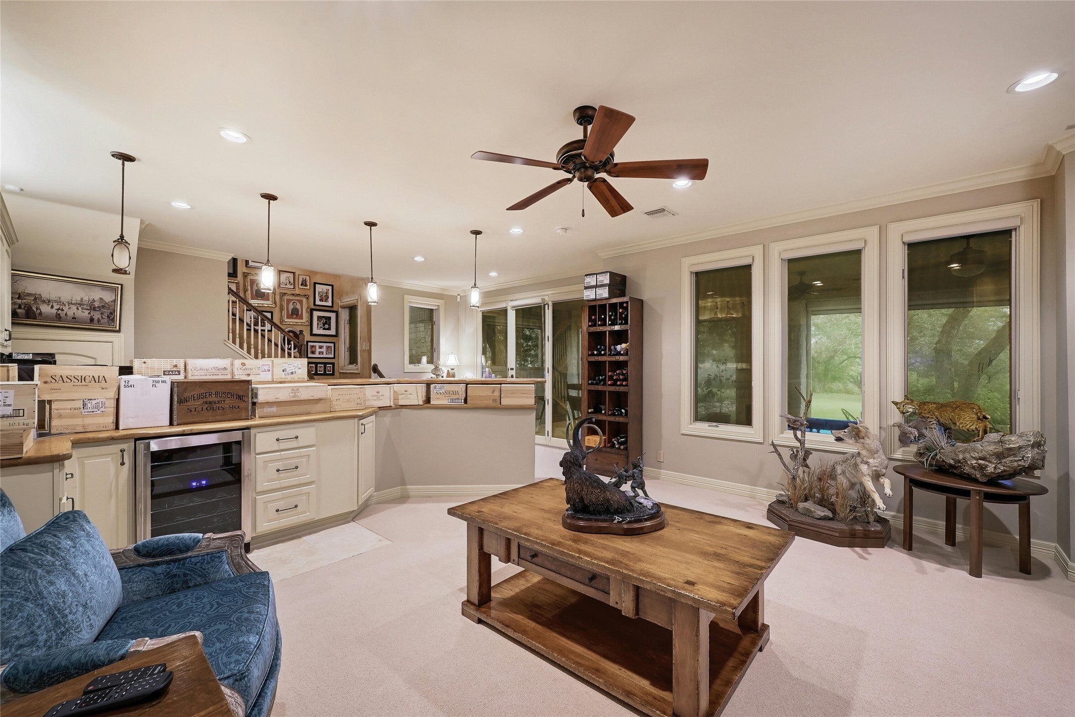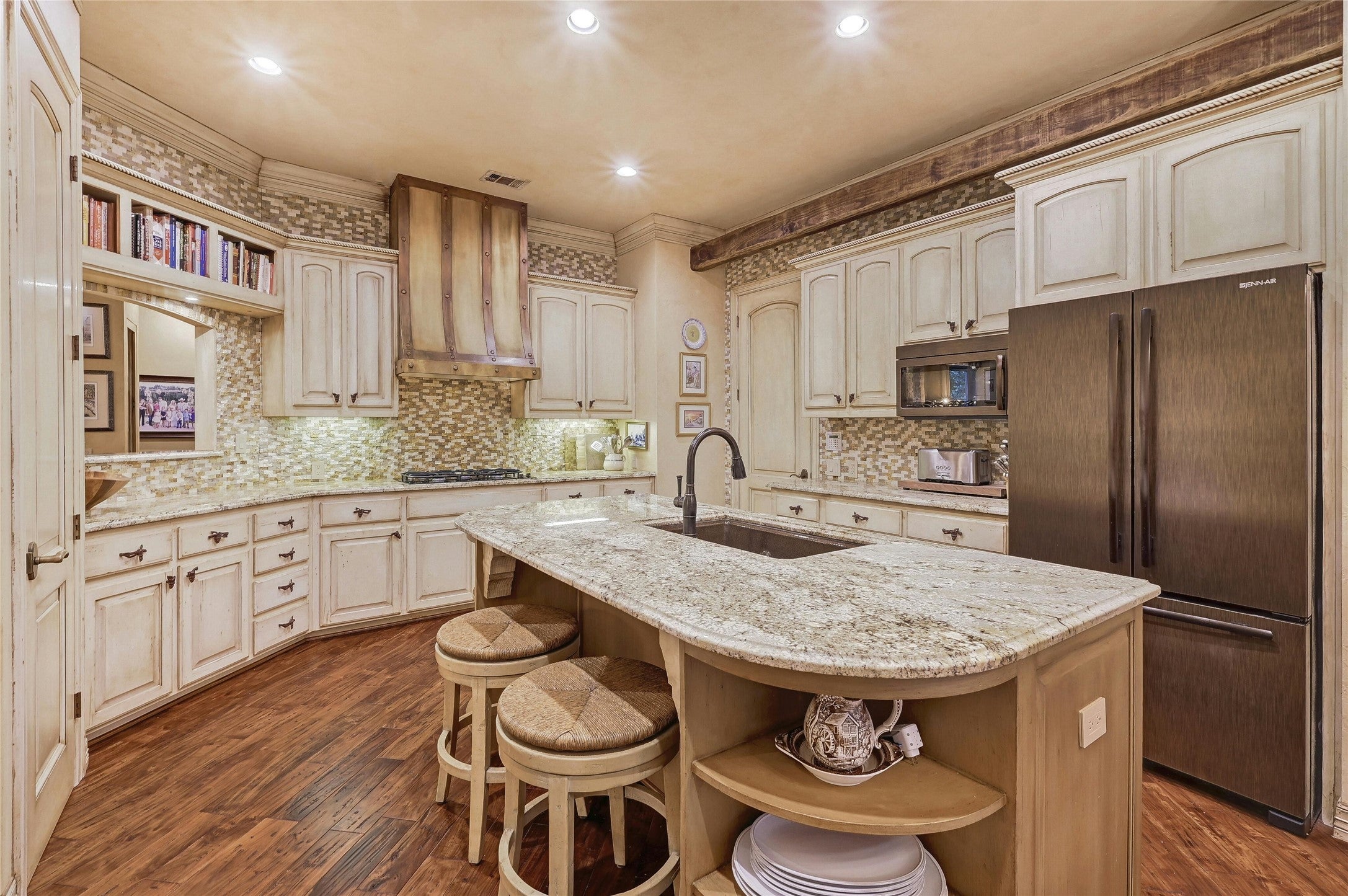 - Bar Fridge, Built-In Oven, Double Oven, Gas Cooktop, Disposal, Microwave, Refrigerator, Vented Exhaust Fan
