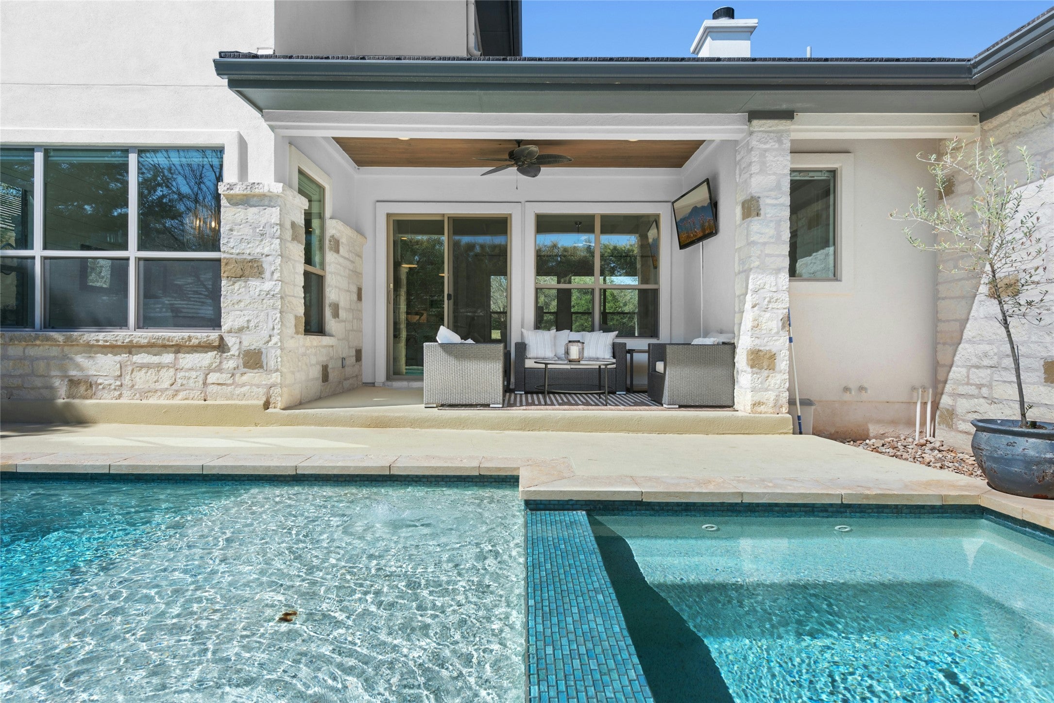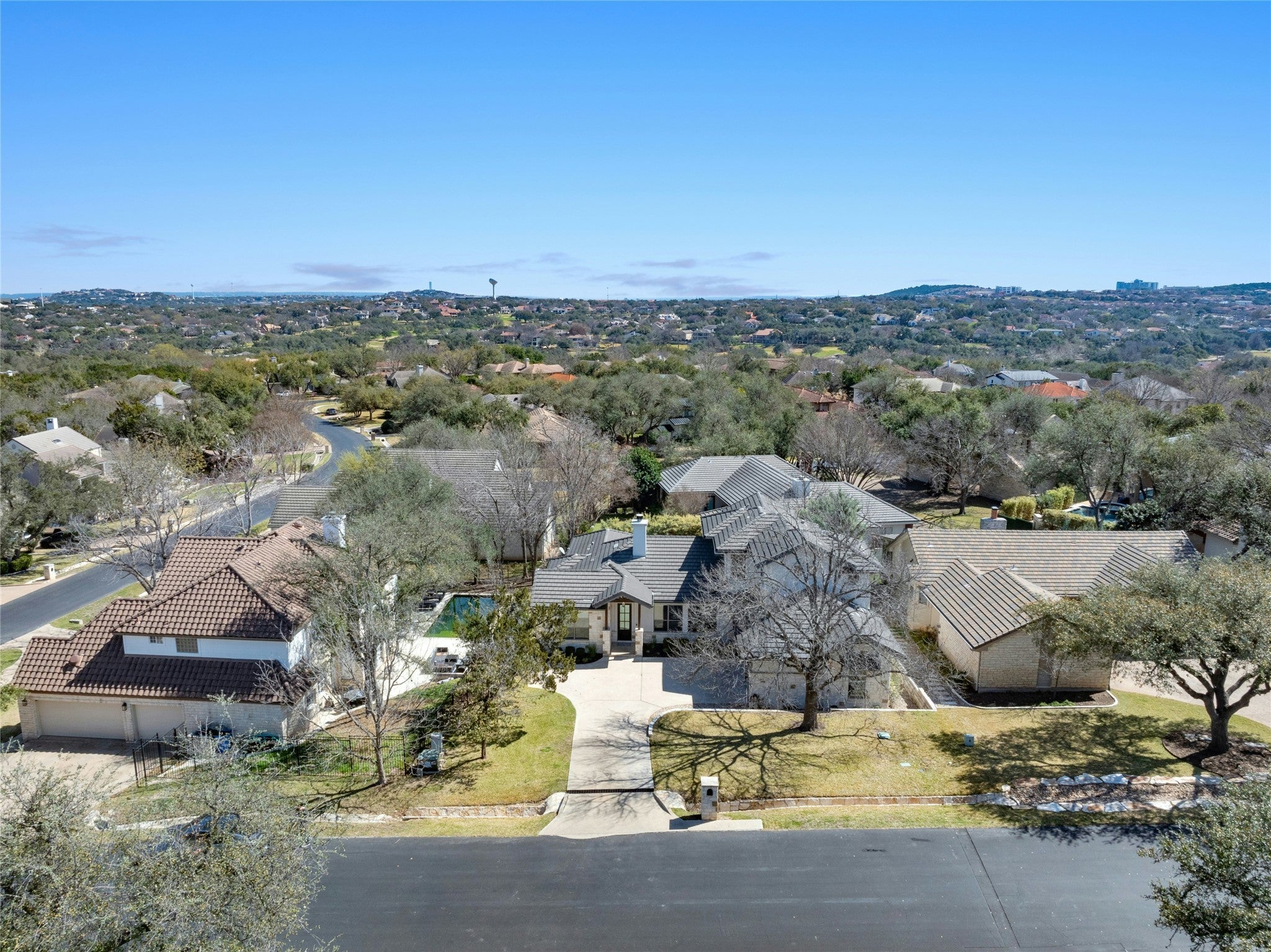 Located behind the gates of the prestigious Hills of Lakeway, this 2,700 sq. ft. Hill Country residence offers refined comfort and resort-style living. Featuring 3 bedrooms, 3.5 bathrooms, and a private study, the open-concept design showcases a light-filled living area with coffered ceilings, hardwood floors, and a spacious kitchen ideal for entertaining. The primary suite provides a peaceful retreat, while secondary bedrooms offer privacy and flexibility. Step outside to a private backyard oasis complete with a sparkling pool, elevated spa, covered patio, and mature landscaping. Residents of The Hills of Lakeway enjoy 24-hour guarded security, access to the acclaimed Hills Country Club with championship golf, tennis, fitness center, dining, and close proximity to Lake Travis, marinas, and top-rated Lake Travis ISD schools. A rare opportunity to own newer construction in one of Lakeway’s most sought-after gated communities.