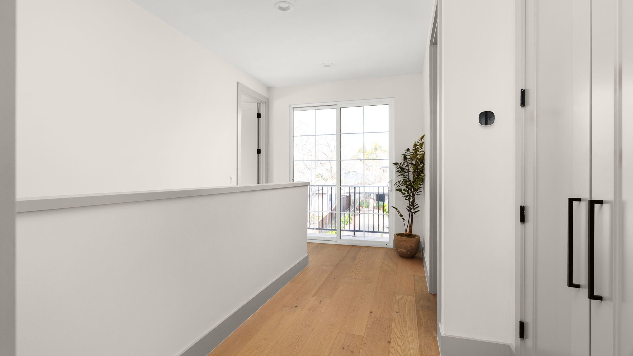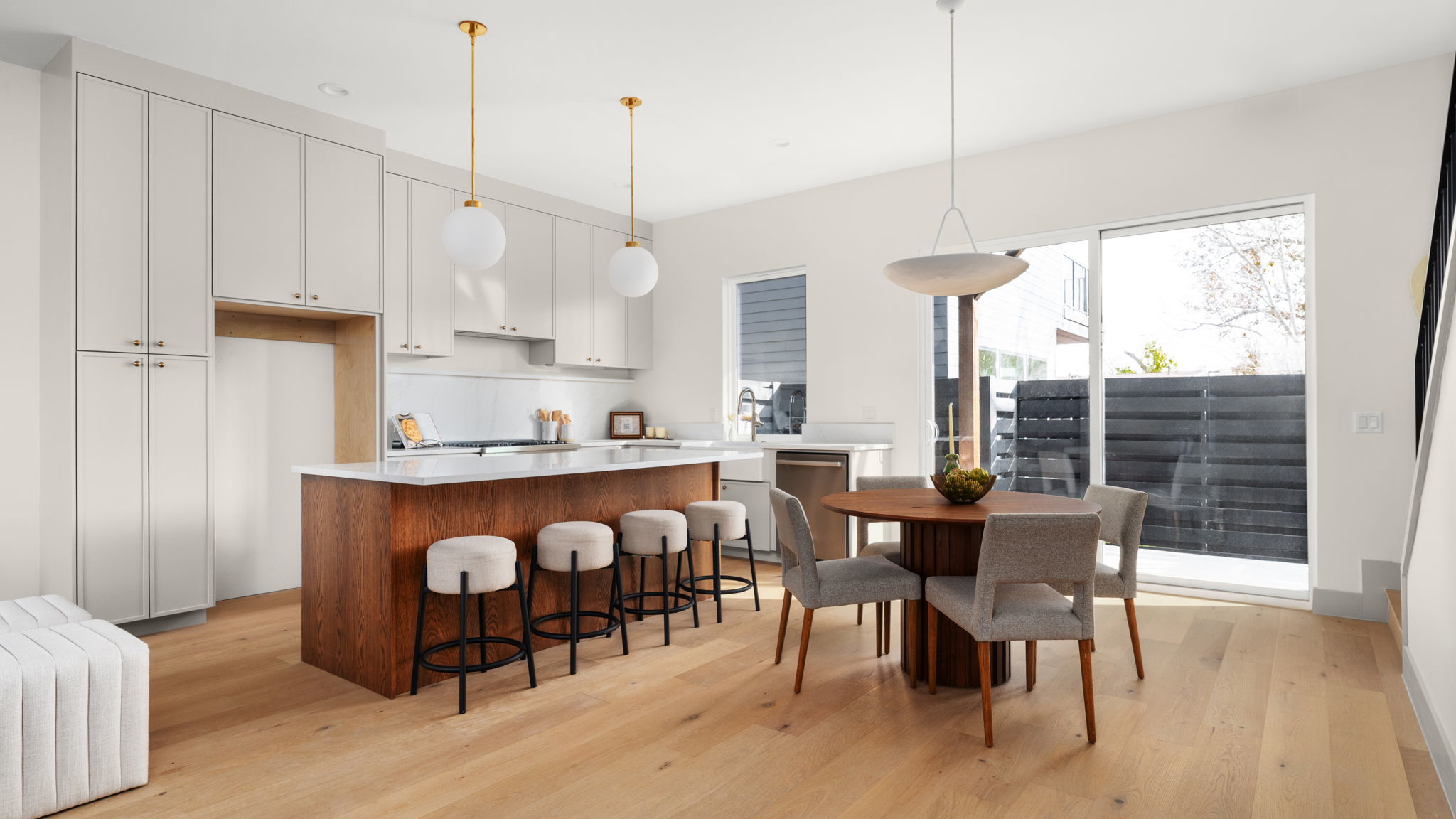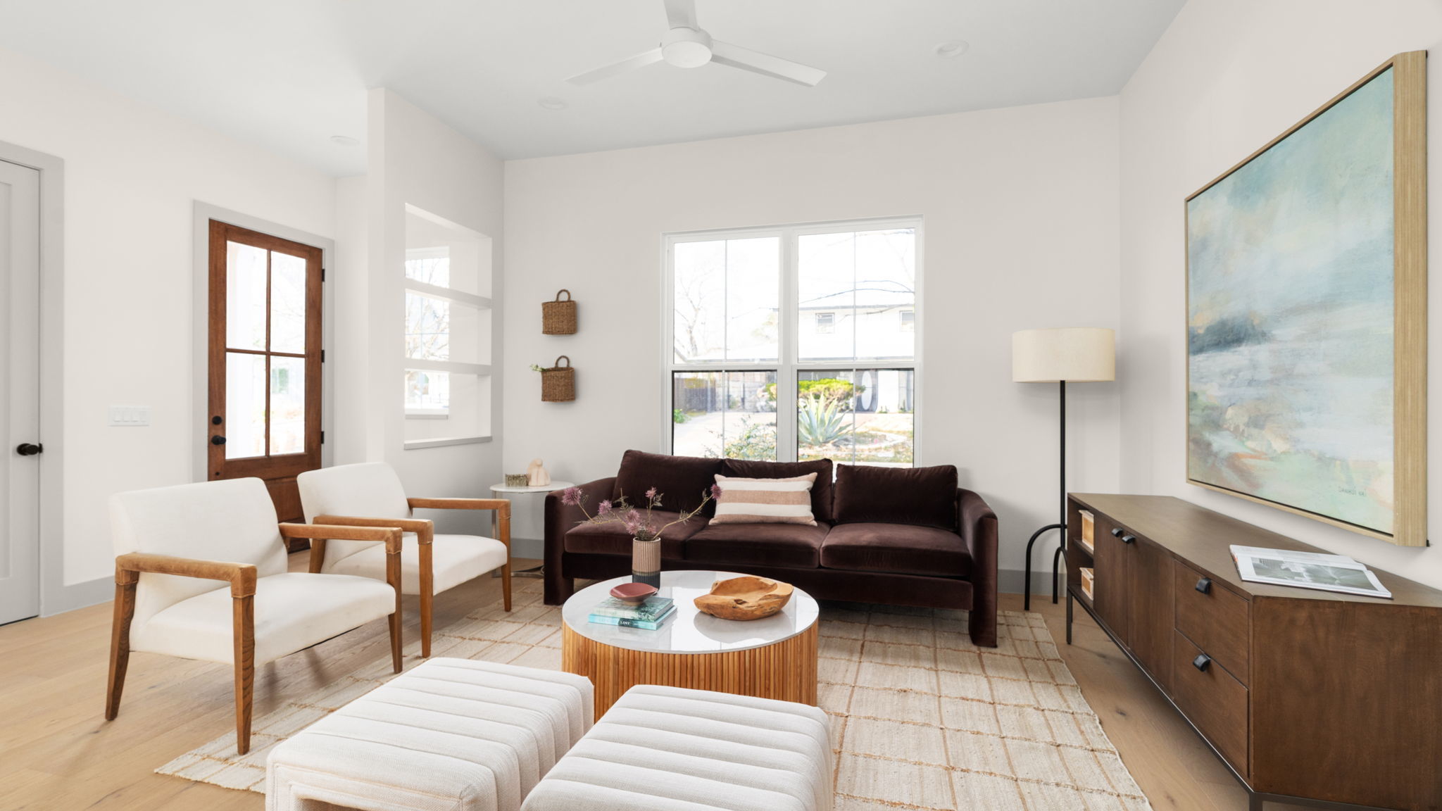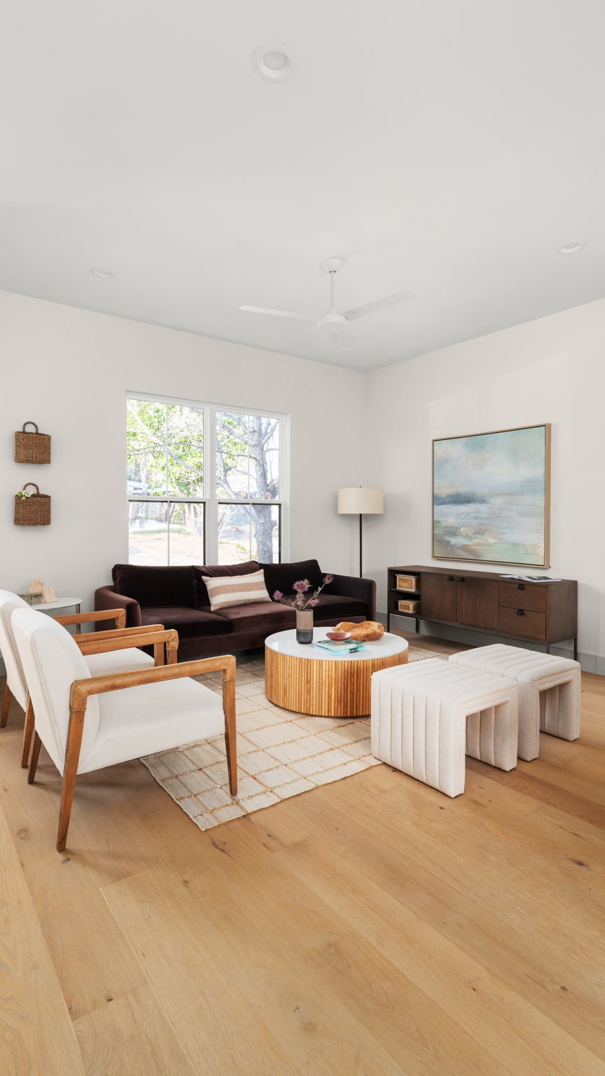Step into elevated modern living in this Modern Transitional duplex residence, thoughtfully crafted with the same high-end finishes and architectural presence as the standalone home next door. Featuring a private driveway, attached carport, Designer fencing, and mature trees all around, this home blends luxury, efficiency, and comfort. A welcoming entry opens to bright, airy interiors with 10' ceilings and large windows that allow natural light to pour through the space. The Organic Modern kitchen features quartz countertops carried up the wall as a full-height backsplash, Quarterline shaker cabinetry with a curated mix of knobs and pulls, and a premium Bosch appliance package including a 36" gas range and drawer microwave. Sightlines extend from the kitchen through the dining area into the living room, creating a natural flow leading directly to the covered patio and outdoor space. This intentional layout embodies the Austin lifestyle—indoor/outdoor living, comfortable entertaining, and everyday functionality. Upstairs, the primary suite offers a serene retreat with a curbless walk-in shower, frameless glass, and a built-in niche. Two additional bedrooms and a second bathroom provide flexibility for guests, children, office space, or hobbies. Additional features include: • Navien tankless water heater • Energy-efficient spray foam insulation • Smart thermostat • Ring doorbell • Designer architectural fencing (metal, wood, and stucco) • EV Charging outlet • Modern lighting and finishes throughout Located in a quiet, walkable neighborhood with easy access to major highways and a 10-minute drive to downtown Austin, this home offers modern design, urban convenience, and exceptional livability. A refined, thoughtfully crafted modern home—perfect for those seeking quality, comfort, and design-driven living. Wired Ring doorbell, Smart Ecobee thermostats (2x) Agent is a majority owner in Selling LLC