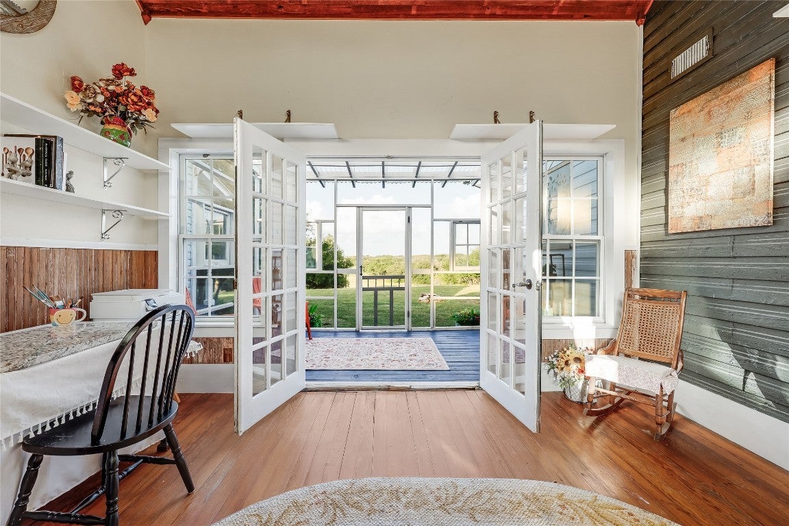 Nestled on top of a scenic panoramic hill view and previously home to peacocks, this property is called Peacock Hill. This exceptional 21+ acre estate offers a rare blend of historic charm and modern self-sufficiency. Featuring two fully renovated Victorian homes joined into one expansive residence and a separate guest house, this property is ideal for multi-generational living. This creative space and layout have the potential to be more than just a home with possible income producing opportunities. Thoughtfully updated, the homes retain their architectural elegance with high ceilings, original woodwork and wrap-around porches while incorporating modern systems for comfort and reliability. Designed with long-term resilience in mind, the property includes a solar and wind system with battery backup that powers the water pump and the 110 outlets in the North Wing ensuring sustainable living. There is a fully equipped tornado shelter plus a thoughtfully constructed private shooting range with up to 300-yard firing range capability. The detached guest house has 2 bedrooms, and 1 bath, kitchen, dining, front and back porch and separate carport. There is a barn with 2 horse stalls that is home to playful goats, watchful donkeys and dutiful barn cats that may convey with the property. A self-sustaining keyhole garden is within easy reach of the farmhouse. The land itself offers a mix of open pasture and wooded areas providing ample opportunities for recreation, agriculture or livestock. Combining privacy, preparedness and an old-world elegant style, this one-of-a-kind property presents an unparalleled opportunity for those seeking security, flexibility and rural tranquility. This property is conveniently located between Austin and Waco, 10 minutes from the charming and artistic village of Salado and 15 minutes from Killeen (home to Fort Hood). Come and enjoy the inviting porches with the gorgeous panoramic views, hummingbirds, nature and wildlife abundance.