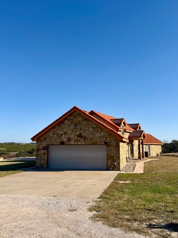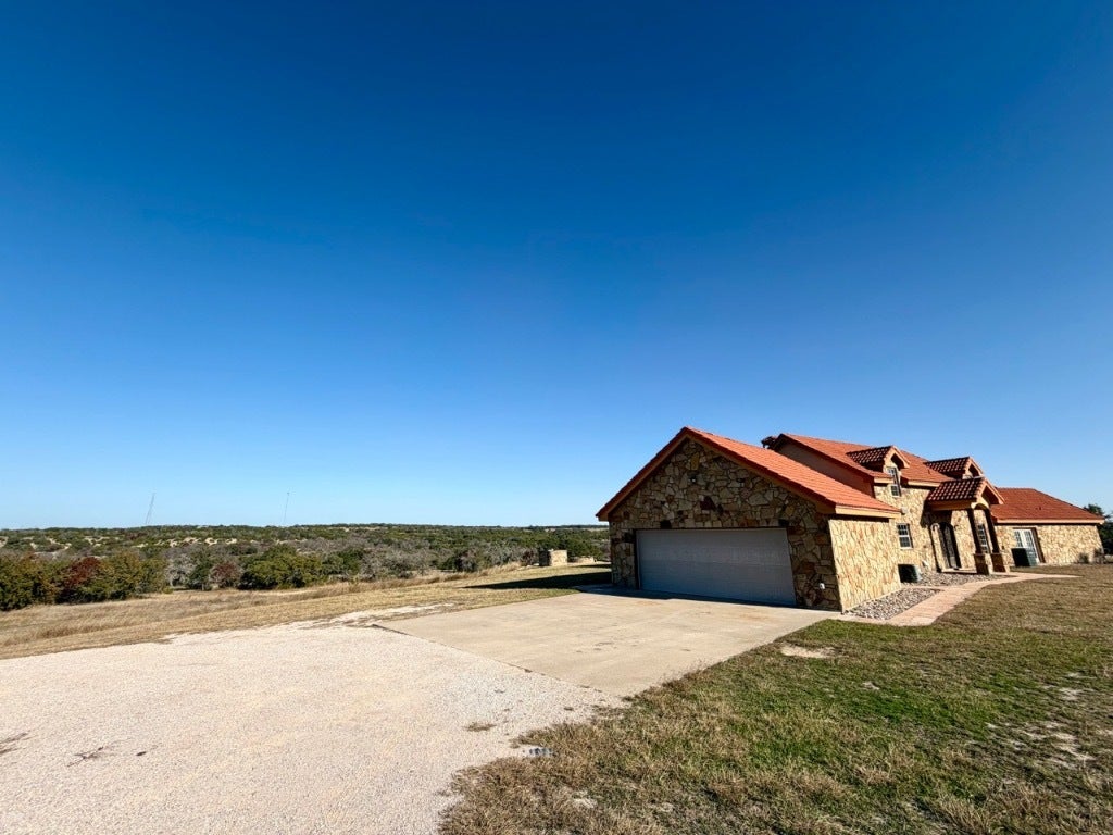 Discover the perfect blend of rustic elegance and modern comfort in this 3,007 sq. ft. custom stone residence. With 4 bedrooms, 3 bathrooms, and a gourmet kitchen, this home is designed for both entertaining and private relaxation, set against a backdrop of the Central Texas Hill Country. The interior showcases an open-concept layout defined by vaulted ceilings and durable stained concrete flooring throughout. The living area serves as a focal point, anchored by a dramatic floor-to-ceiling stone fireplace and large windows that invite natural light. The gourmet kitchen offers a granite stone wraparound bar, professional-grade appliances, and thoughtful details. This lease includes the home and 2.5 acres of land amid a larger parcel, giving you ultimate privacy while still being a short drive to Briggs, Liberty Hill, and Lampasas.