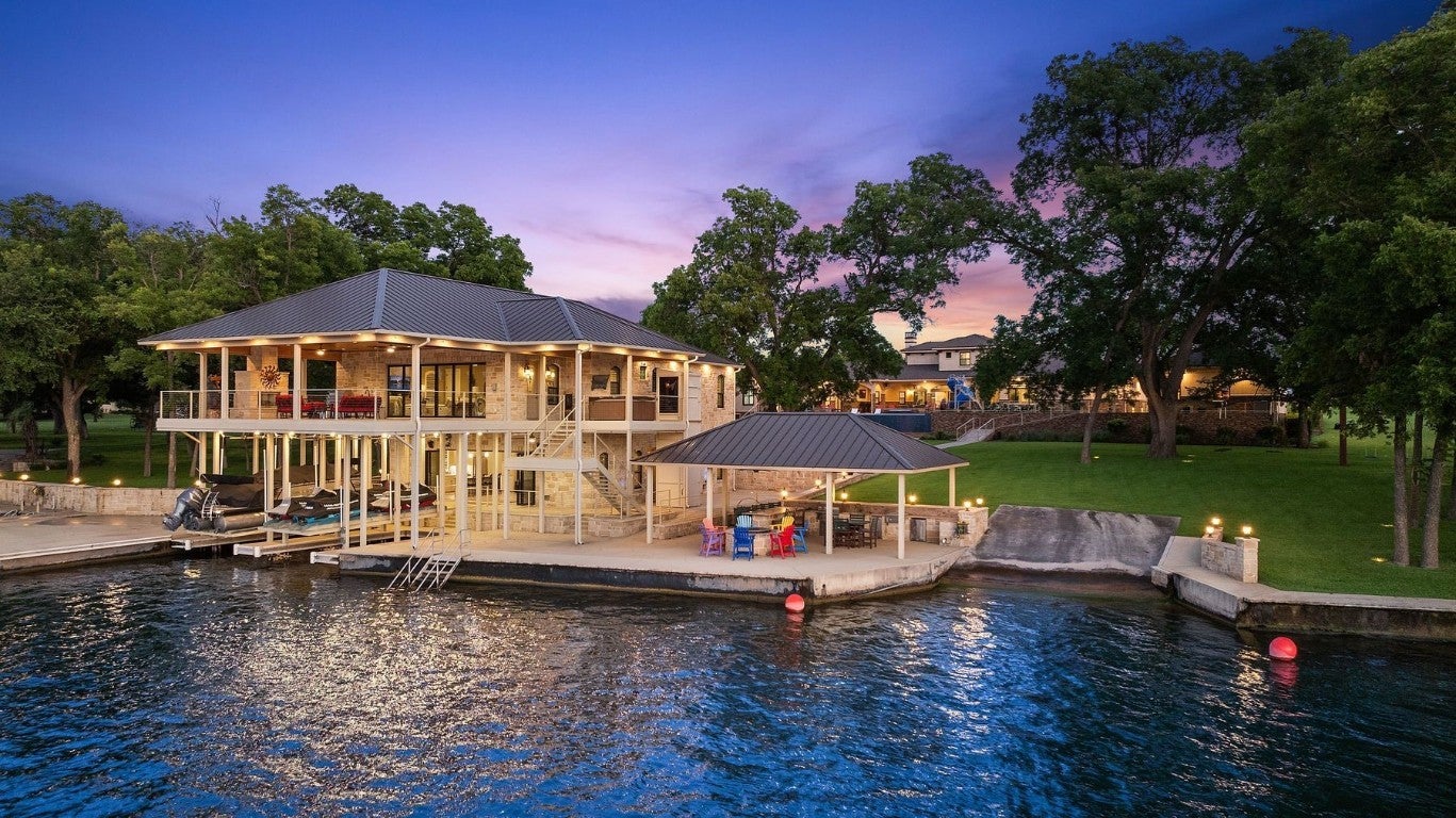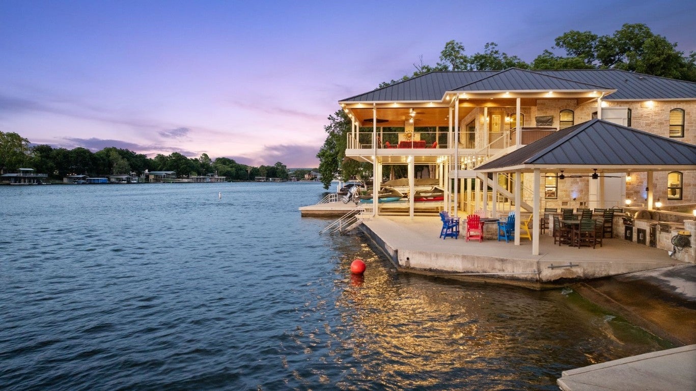 911 Legends Parkway — the ultimate expression of Lake LBJ waterfront luxury, where breathtaking beauty meets effortless sophistication on a rare 3.3-acre estate within the exclusive, gated golf and waterfront enclave of The Legends. Imagine owning 250 feet of pristine, open-waterfront — panoramic views that stretch endlessly across the shimmering lake, perfect for sunrise coffee and golden-hour toasts. At the heart of this resort-style paradise sits a jaw-dropping blue negative-edge infinity pool, cascading seamlessly into the horizon, complete with a luxurious spa and thrilling waterslide — the kind of centerpiece that turns every day into a vacation. Step inside the expansive covered patio or retreat to the extraordinary man cave — a true showstopper featuring a full bar, professional pool table, and even a dedicated ice cream station. Pure indulgence for game nights, watch parties, or quiet evenings with friends. And yes, it looks every bit as epic as it sounds: Designed for multi-generational living and grand-scale entertaining, the 9,788 sq ft masterpiece (built in 2020) boasts eight luxurious bedrooms, nine full baths, two half baths, a soaring open-concept main living area, a chef's dream gourmet kitchen, private theater room, spa-like primary suite with workout space, and multiple guest suites — all flowing effortlessly together. Outside, the beautifully landscaped grounds guide you to lakeside entertaining havens, including a fully equipped summer kitchen with BBQ and roaring fire pit — ideal for sunset dinners and starry nights. Take in this perfect lakeside outdoor escape: A magnificent boathouse with integrated living quarters and premium amenities — your private gateway to endless days on the water. Offered fully furnished, complete with watercraft, and featuring a five-car garage for your collection — this is more than a home. It's a legacy. Live the extraordinary life you've always dreamed of on Lake LBJ.