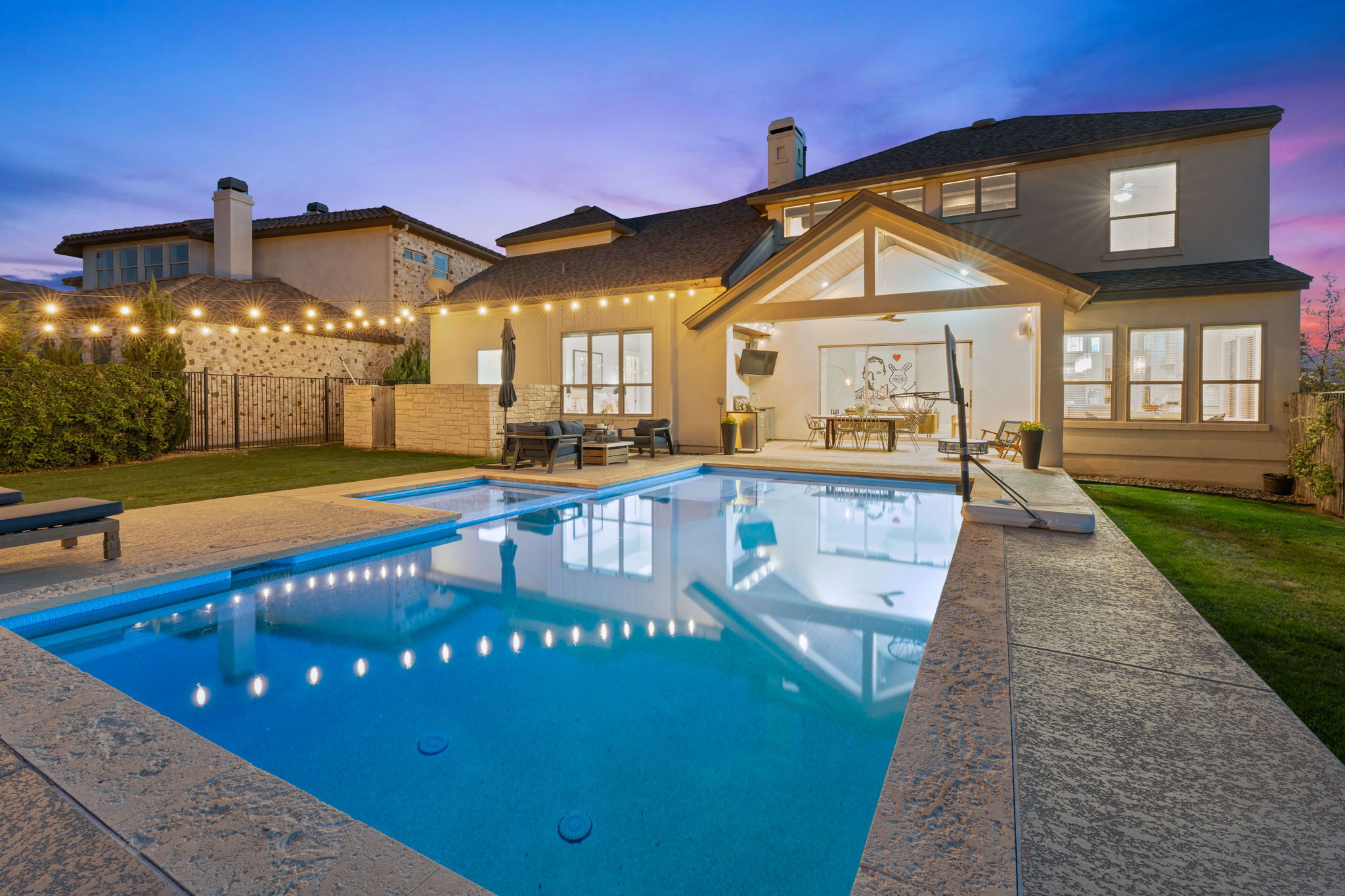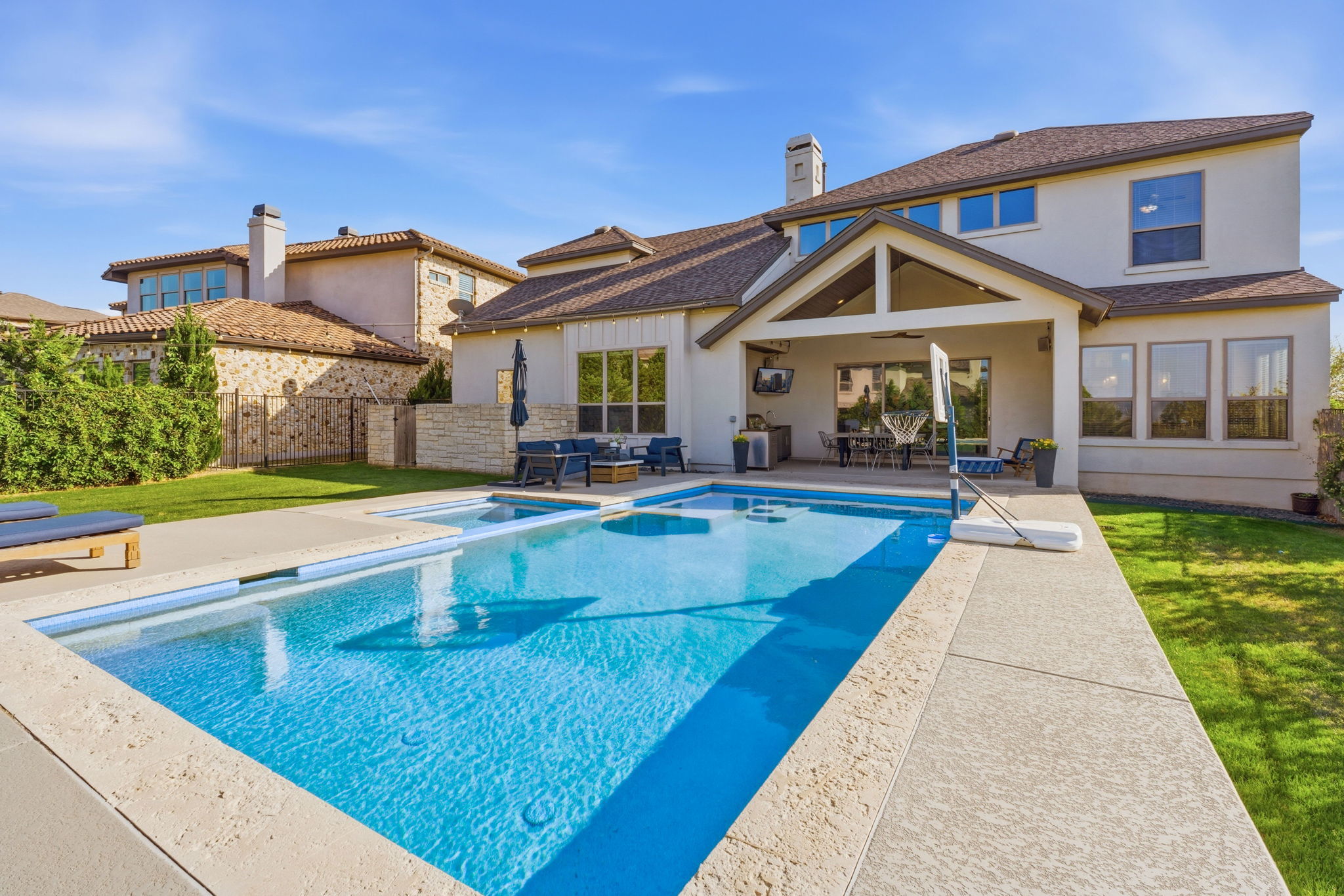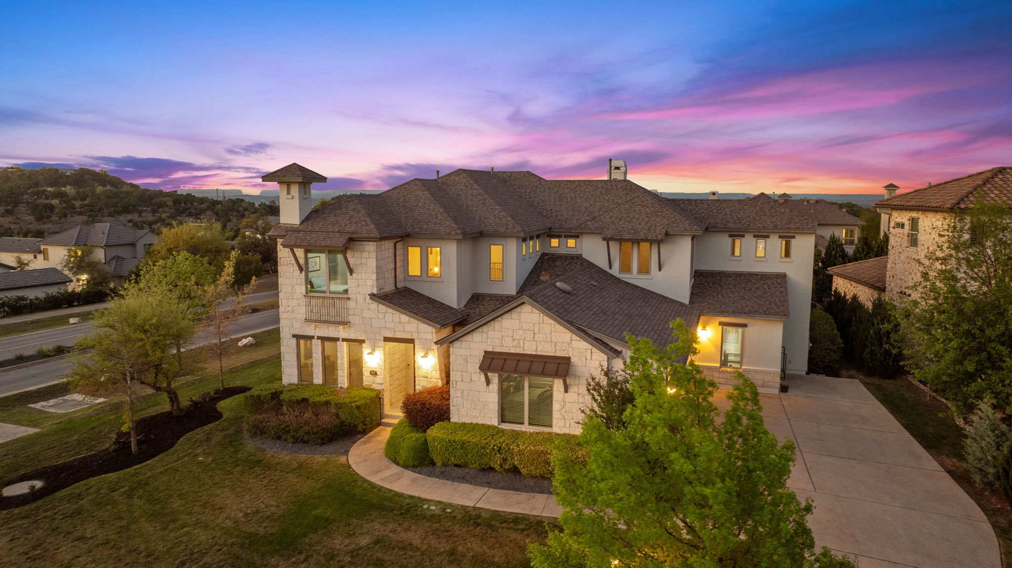 Located in the highly sought-after Serene Hills community within the acclaimed Lake Travis ISD, this beautifully designed residence offers 4 bedrooms and 4.5 baths seamlessly blending luxury, comfort, and thoughtful functionality. Designed with the move-up buyer in mind, every space invites you to live and entertain with ease. Host memorable dinners in the formal dining room, complete with a built-in bar, or retreat to the private study with coffered ceilings an ideal setting for focused work or quiet moments. At the heart of the home, the chef-inspired kitchen features premium kitchenaid pro built-in fridge, dble ovens, 6-burner gas stove, & elevated finishes, opening effortlessly to the main living areas and creating a natural gathering place for family and friends. The main level is anchored by a serene primary suite w/ walk-in shower & soaking tub, along w a private guest bedroom that offers flexibility for visitors or multigenerational living. Upstairs, two light-filled bedrooms & full bathrooms, are complemented by a spacious game/play room and a fully equipped media room, offering the perfect setting for both lively gatherings and relaxed evenings at home. Thoughtful upgrades by the current owners enhance both form and function, including high-end designer Juliska lighting, custom built-ins with leathered quartzite countertops in the living room, and a fully customized primary closet that elevates everyday living. Set on an expansive .33-acre lot, the outdoor experience is equally inviting. Spend your days lounging by the sparkling pool, unwind in the oversized spa, or host unforgettable evenings under the covered patio. Lush landscaping and full irrigation create a private, resort-like setting, 3-car garage w electric charging offers ample space for storage & flexibility. This is more than a home, its a place where everyday living feels elevated, and every space is designed to be enjoyed. Mins to Shops and dining @ Galleria, Whole Foods & Trader Joes