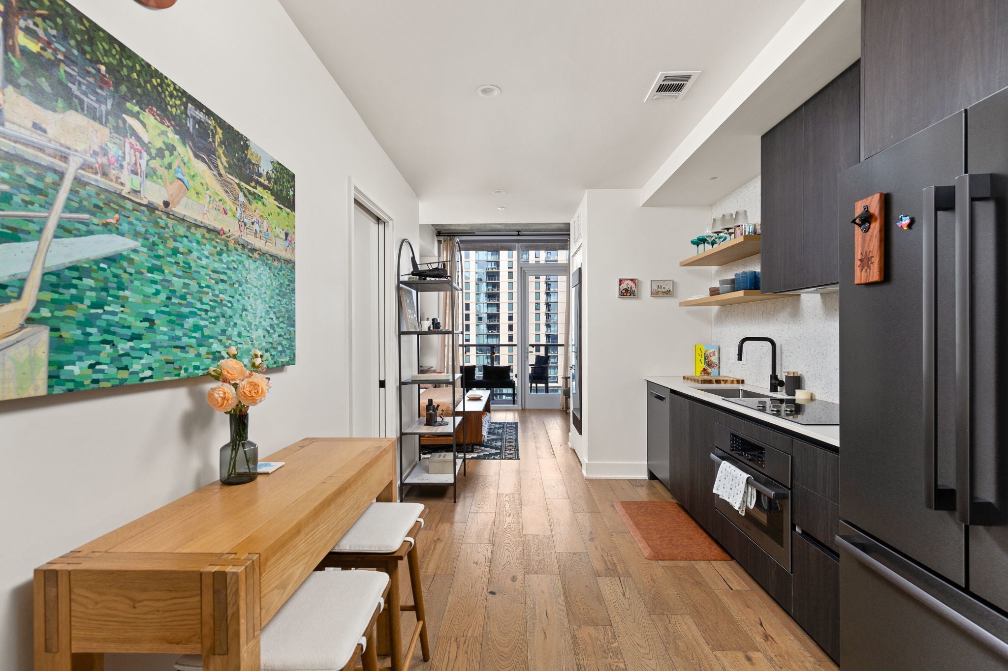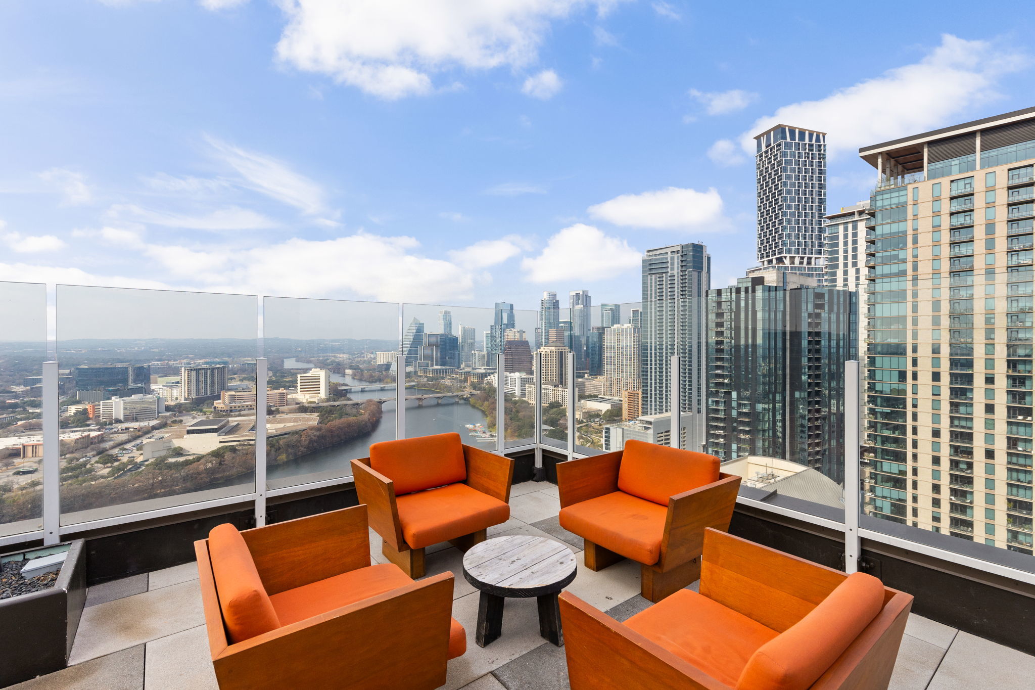 Experience luxury condo living at Natiivo Austin with this studio residence, one of the most uniquely styled units in the building. Fully furnished and turnkey, this property is STR-friendly and averages approximately $70,000 per year in rental income, making it ideal for both personal use and investment. Enjoy beautiful water views of Lady Bird Lake, sweeping city skyline views, and iconic views of the South Congress bat bridge. Located in the heart of the Rainey Street District, just steps from renowned dining, nightlife, and entertainment, this residence offers one of the most desirable locations in Downtown Austin. The studio is thoughtfully designed and furnished by West Elm, Crate & Barrel, and Four Hands, all of which convey with the sale. Features include a large OLED flat-screen TV, a high-end mattress, and premium linens and furniture, delivering a refined, hotel-quality experience. Natiivo Austin offers a unique ownership model that blends luxury services and amenities with the flexibility to list on any home-sharing platform. Two valet car badges and a small storage space are included. With consistently high occupancy, this property presents an exceptional opportunity as a short-term rental, long-term investment, or personal urban retreat in the heart of Austin.