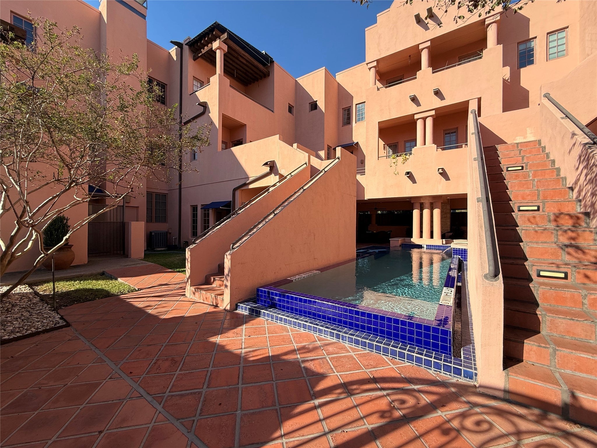 Introducing Your Dream Condo! Step into this stunningly renovated 2-bedroom, 2-bathroom condo nestled in the desirable Escorial Condominiums in coveted Clarksville area! With an abundance of natural light, this home is designed for modern living. It has a very inviting open floor-plan! The spacious living-dining-kitchen area is perfect for both relaxation and entertainment, featuring a cozy gas fireplace and a stylish new chandelier. Cook up a storm in the gourmet kitchen equipped with a copper double sink, ensuring both functionality and elegance. The private outdoor oasis is a showstopper! Enjoy your morning coffee or evening gatherings on your charming private side patio, or take a stroll to the beautifully landscaped gated courtyard and refreshing swimming pool. This condo also includes a coveted single-car garage plus an additional assigned partially covered parking space for your convenience. Don’t miss out on this incredible opportunity! Schedule your visit today and experience the perfect blend of comfort and style!