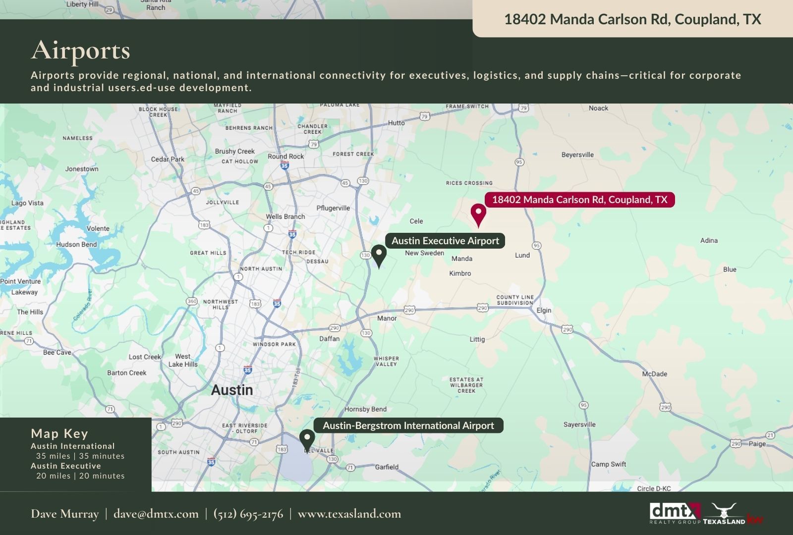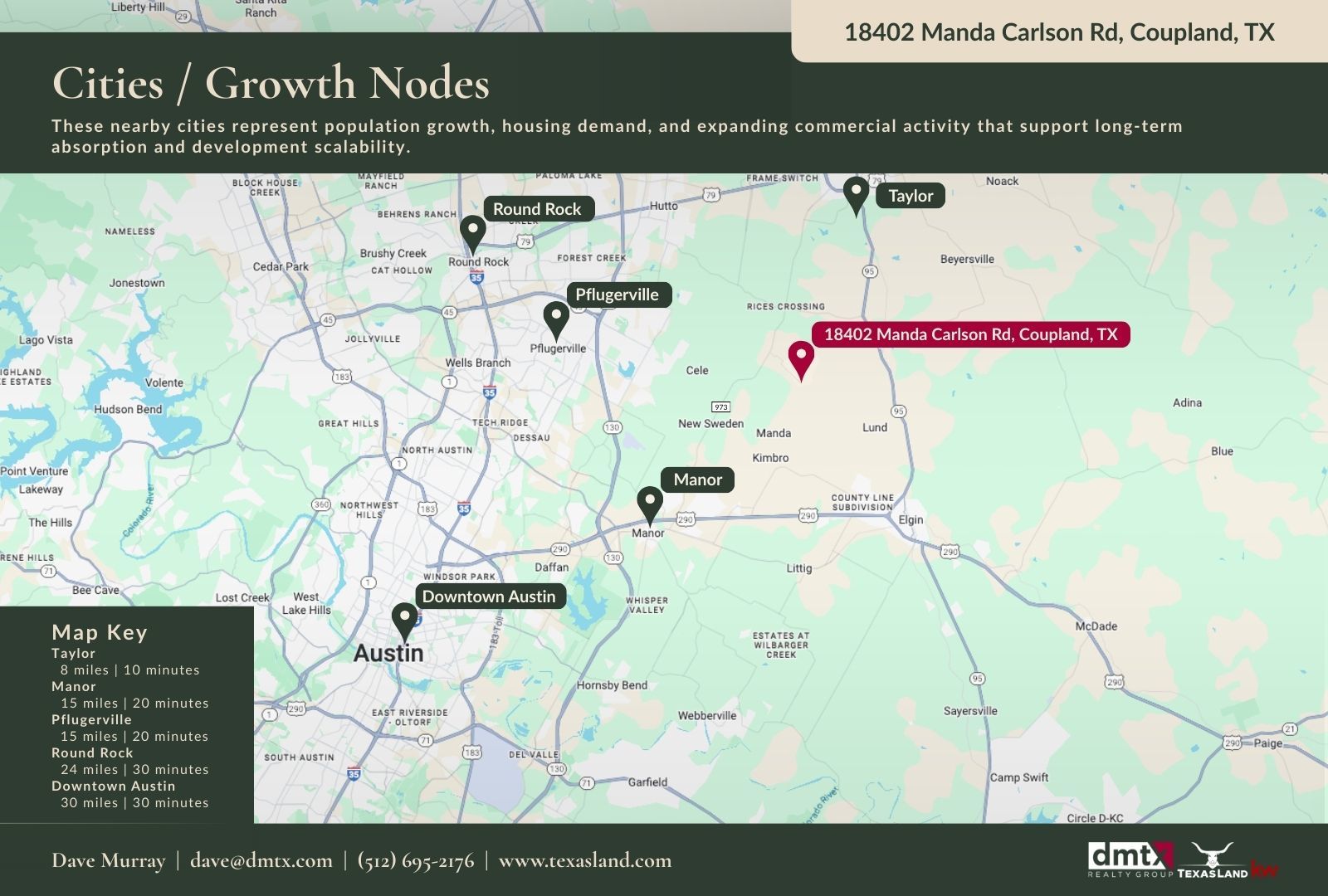 Set on 116+/- acres with direct access off FM 973 via Felder Lane, this exceptional tract is located in an area experiencing explosive growth and is surrounded by active and planned development. The property lies within the Pflugerville ETJ and is served by Elgin ISD, offering a strategic position along one of Central Texas’s fastest-expanding corridors. A water line is available at the property through Aqua Water, adding valuable infrastructure for future development. The land features level topography, no FEMA floodplain, and no known restrictions, providing maximum flexibility for a wide range of uses. Its location is highly advantageous—offering excellent access to Samsung, Tesla, and Austin-Bergstrom International Airport via the 130 Toll Road. With its size, accessibility, and placement amid major infrastructure and employment hubs, this property represents a compelling opportunity for development, investment, or long-term land hold in the direct path of Austin’s eastern expansion.