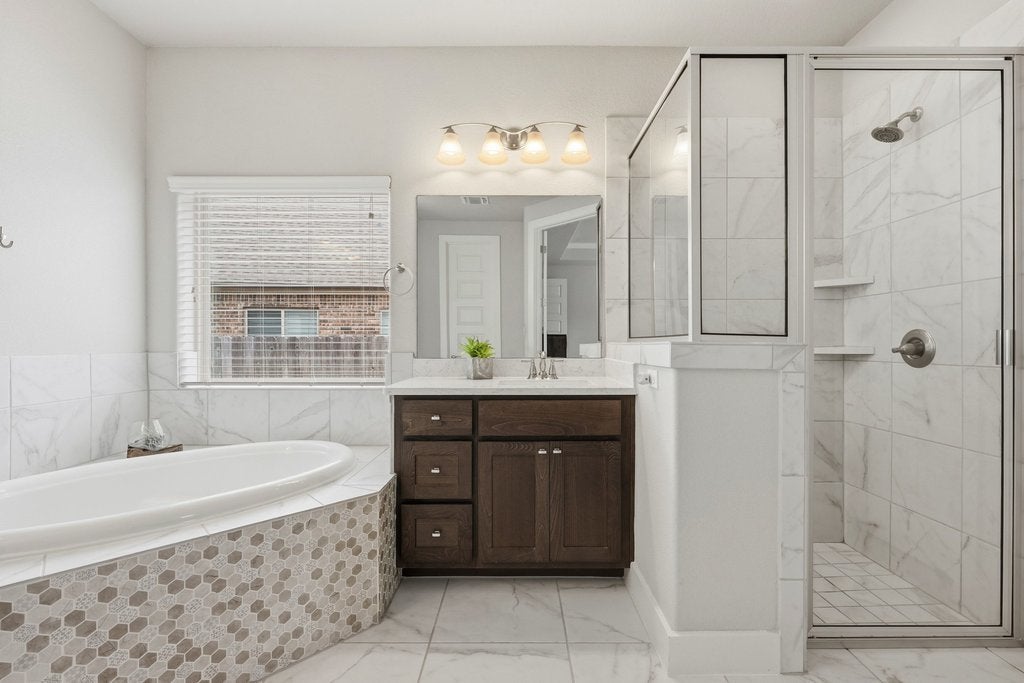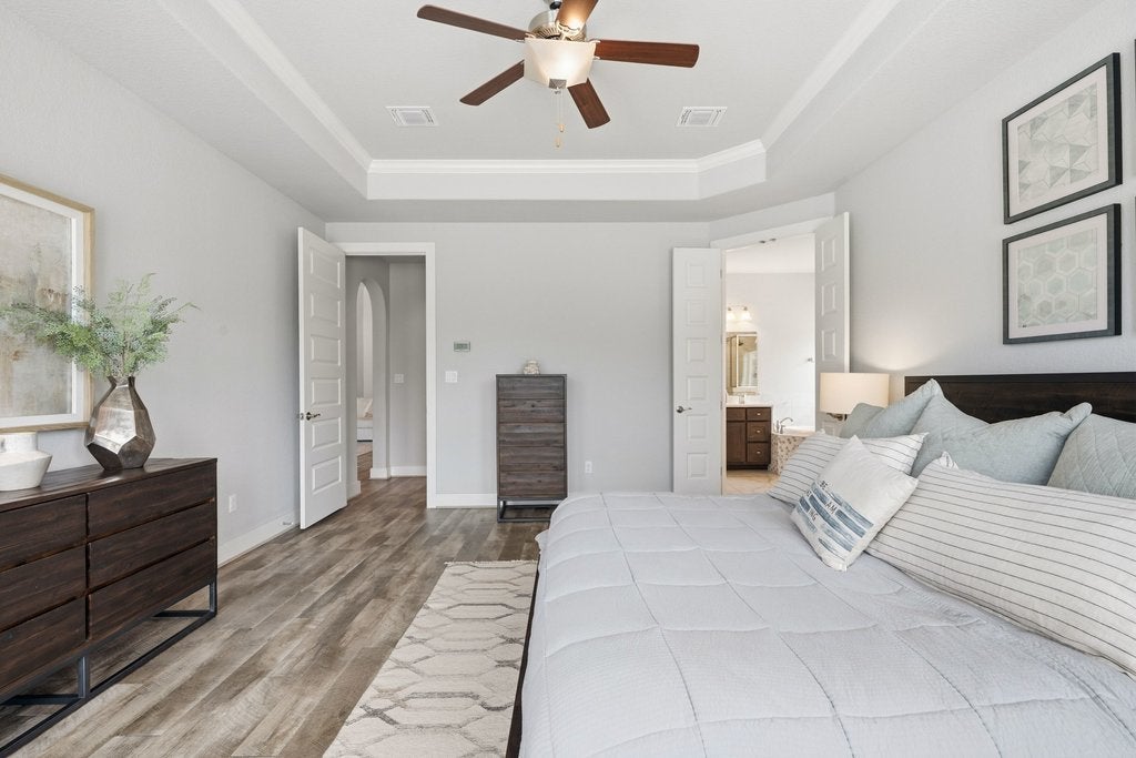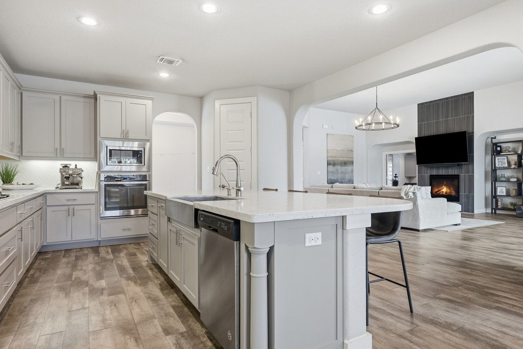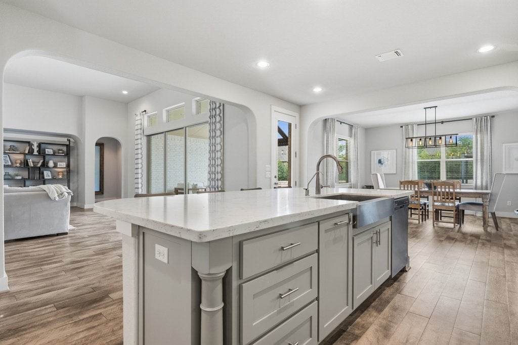 Welcome to 191 Tabago Court, a stunning single-story home tucked away on a quiet cul-de-sac in the highly sought-after Belterra community. Built in 2018 by Scott Felder Homes and thoughtfully upgraded throughout, this expansive residence offers over 3,500 square feet of flexible, light-filled living space designed for both everyday comfort and elevated entertaining. Step inside to an open-concept floorplan featuring upgraded wood-look tile flooring, soaring ceilings, and designer touches at every turn including a striking herringbone subway tile backsplash that anchors the beautifully appointed kitchen. With 4 bedrooms plus two dedicated offices (or option for 5 bedrooms and one office), this home effortlessly adapts to your lifestyle, whether you're working from home, hosting guests, or growing into your next chapter. Enjoy not one, but two dining areas, perfect for everything from casual breakfasts to holiday gatherings. The seamless indoor-outdoor flow leads you to a covered outdoor entertaining space overlooking a private backyard oasis complete with a sparkling pool and relaxing hot tub, ideal for soaking up those warm Central Texas evenings. Situated on a premium cul-de-sac lot, this home offers both privacy and community, all within minutes of top-rated schools, scenic trails, and the best of Belterra living.