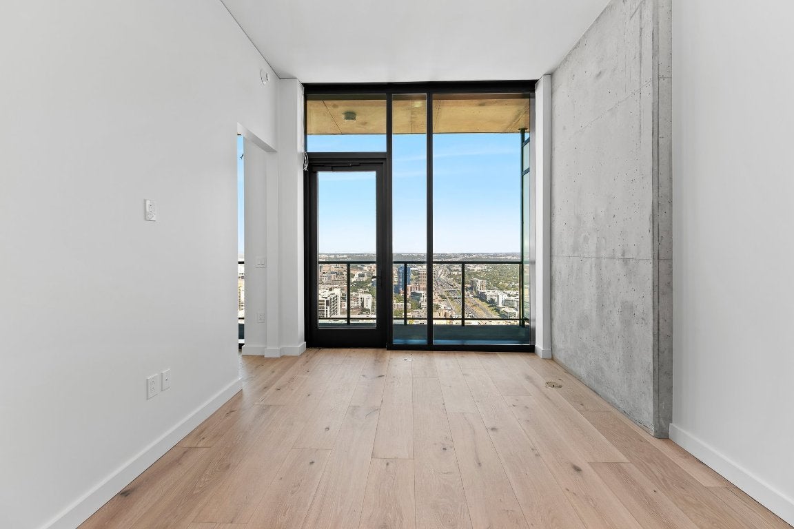 Experience elevated downtown living at The Modern Austin Residences. This brand-new 1-bed, 1-bath home offers 662 sq ft of sleek, contemporary design with floor-to-ceiling windows showcasing stunning city views. The open kitchen features high-end finishes, modern cabinetry, and a large island perfect for entertaining. The spacious primary suite includes a walk-in shower, double vanity, and ample counter space. Wood and tile floors flow throughout for a clean, upscale feel. Enjoy world-class amenities including a resort-style pool and spa, state-of-the-art fitness center, dog runs with a wash room, and a sophisticated residents’ lounge—all in the heart of downtown Austin.
