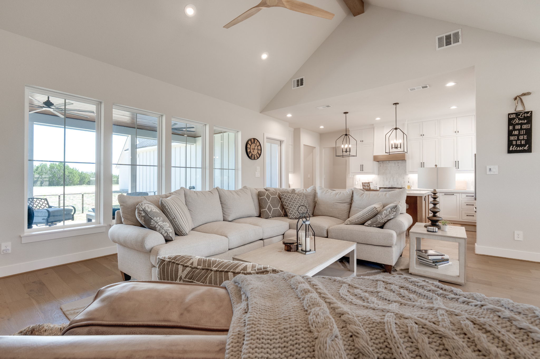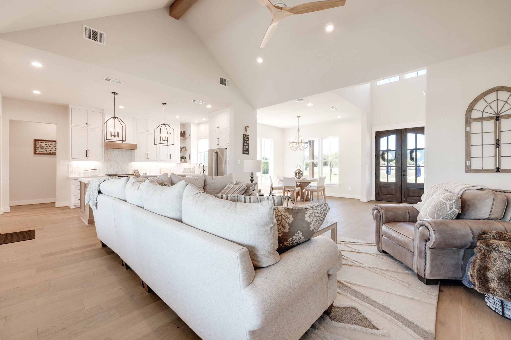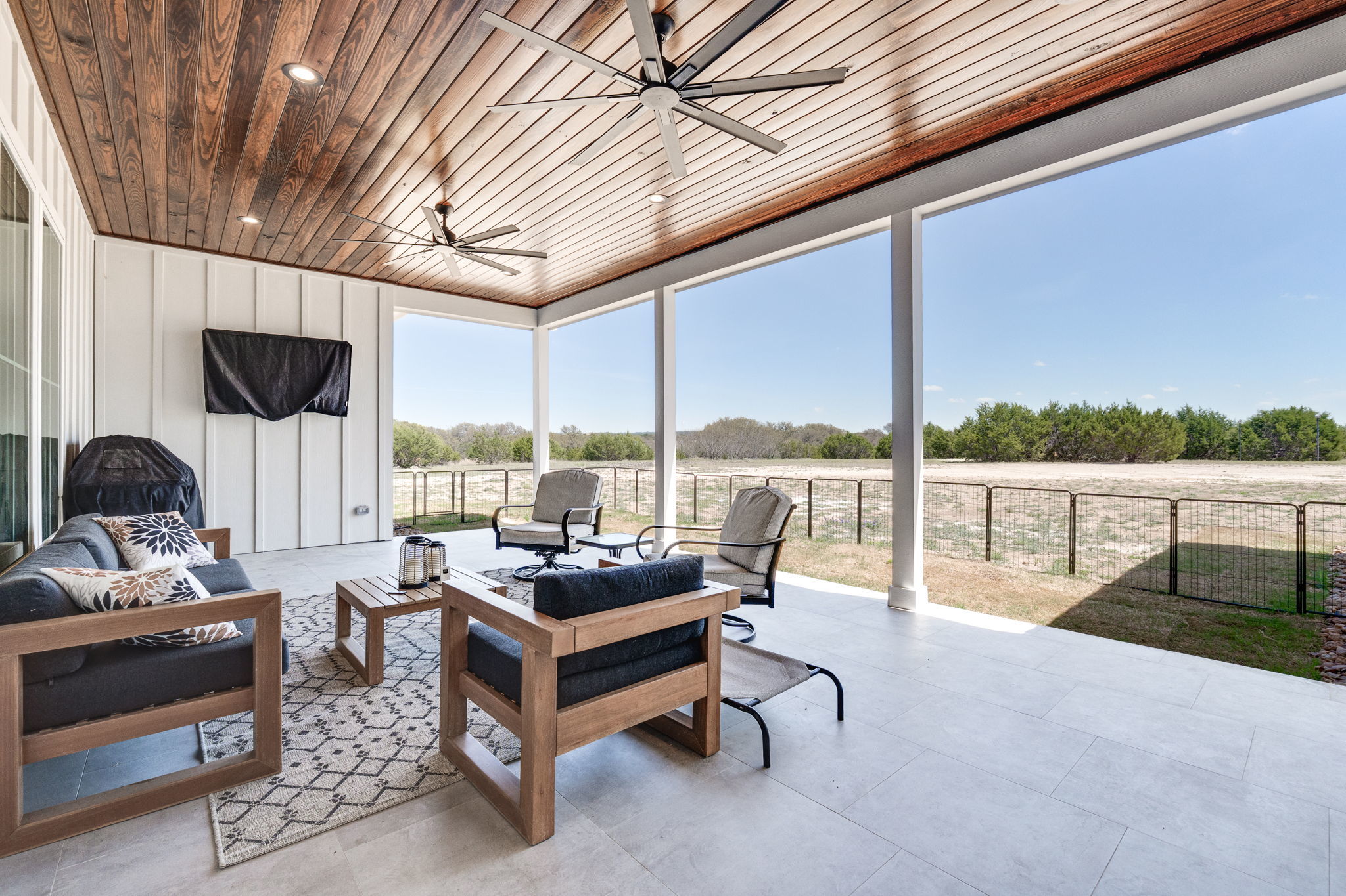 This stunning 4-bedroom, 3-bath home, built in 2024, blends modern luxury with peaceful country living on 15.250 acres. Step inside to soaring 17-foot ceilings and an open, light-filled layout anchored by a cozy gas log fireplace and elegant built-ins throughout. The chef’s kitchen is designed to impress, featuring quartz countertops, large center island with bar seating, high-end finishes, and a spacious walk-in pantry—perfect for both everyday living and entertaining. Rich hardwood floors flow through the main living areas, while a large utility room and mudroom add both convenience and functionality. No features have been left out. From the stylish ceiling fans throughout the house, built in closet cabinets, coffee bar and feature walls. The gorgeous primary suite offers a private retreat with ample space and thoughtful design. Every detail in this home has been carefully considered, including structured wiring and an energy-efficient tankless water heater. Outside, enjoy a lovely back patio finished with ceramic tile—ideal for relaxing or hosting guests. The property also includes a 900-square-foot detached shop with 1/2 bath, with an attached 22 x 30 carport, providing plenty of space for projects, storage, or equipment. Fresh new sod surrounds the home, while the expansive acreage offers privacy, beauty, and a seasonal creek that enhances the natural landscape. With a wildlife exemption in place for low taxes, this property is as practical as it is picturesque. This property is the whole package!