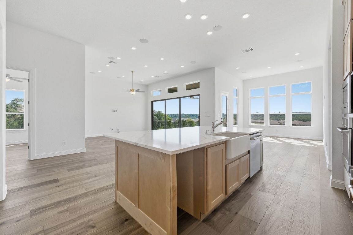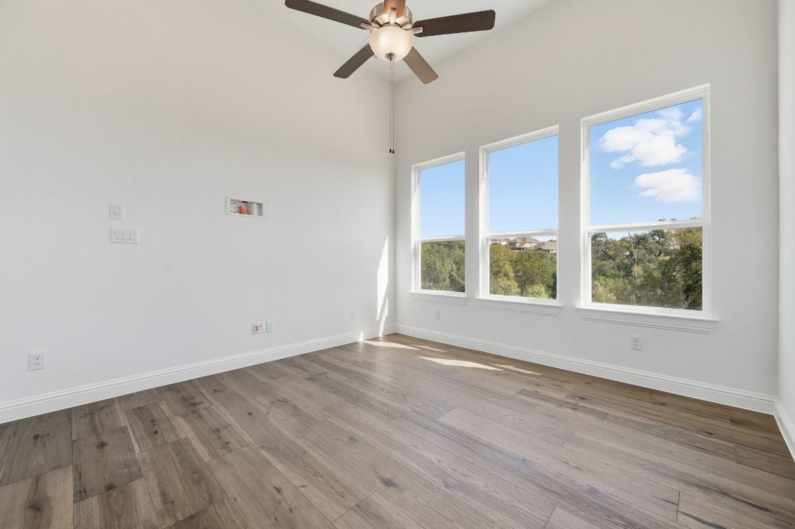 Ready for Move-in! From GFO Home’s grand Presidential Series, this stunning 2,830 sf One-Story new construction home is our striking Johnson Floor Plan offering 4 Bedrooms, 3 Bathrooms, Private Study, and a spacious 3-car Garage. Located on a quiet cul-de-sac with hill country views, this home is a tech lovers dream with Open Concept Family Room with soaring 12' ft Ceilings and a Built-in Sound System with in-ceiling speakers in Living areas, an upgraded Gourmet Chef’s Kitchen with large Center Island, soft close cabinetry, Upgraded Cafe Venthood, high end Calacatta Laza countertops, Walk-in Pantry, and attached extended Breakfast Room, and elegant glass slider doors leading to a spacious extended Covered Patio and Private Backyard. The extended Primary Suite features a Spa-Inspired Primary Bathroom with a designer Free-Standing Tub, separate Walk-In Shower, and Oversized Walk-In Closet with an additional door directly to the Utility Room.. Discover additional functionality with a mudroom off the garage entrance. Extended 3-car garage with pre-plumb for water softener. Experience high-end living at its finest with the Johnson floor plan in beautiful & scenic Georgetown, TX. Enjoy a scenic neighborhood conveniently located off Hwy 29, with Playgrounds, Sport Courts, and a new Amenity Center & Pool now open! Just minutes West of Wolf Ranch Town Center with a Brand New HEB, restaurants, and shopping. Also nearby is Georgetown Regional Trail, and Historic Downtown Georgetown, known as “The Most Beautiful Town Square in Texas.”