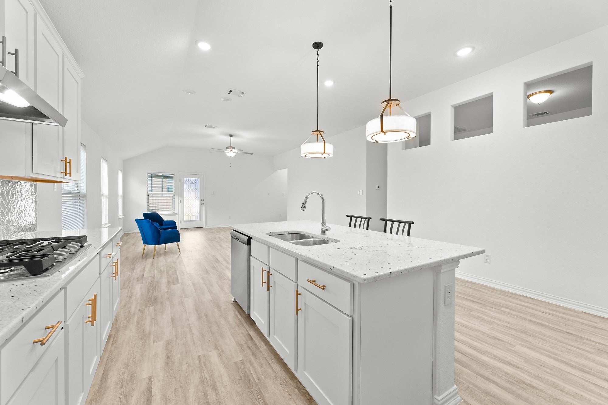 - Double Oven, Dryer, Gas Cooktop, Washer, Free-Standing Refrigerator
