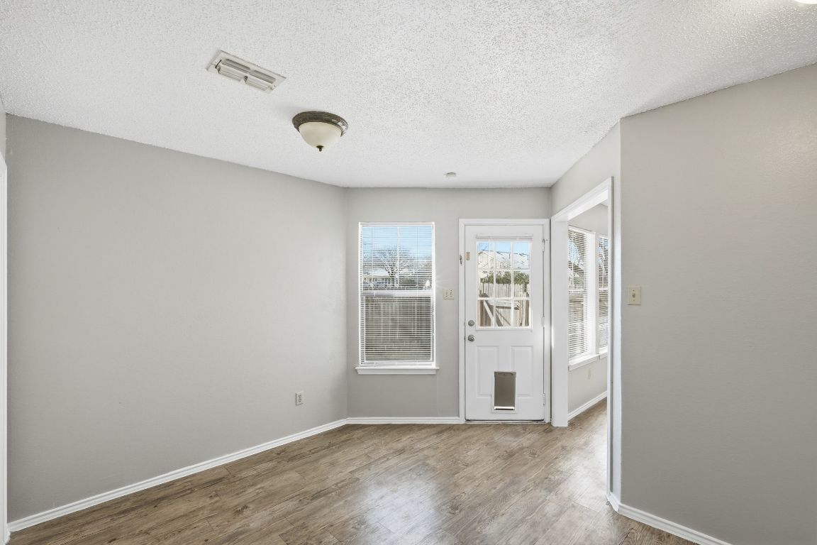 Welcome to this thoughtfully designed 2-bedroom, 2-bath residential unit in Round Rock, featuring a functional single-story layout with smart use of space. The primary bedroom offers generous room and a walk-in closet. A second full bath is located off the central hallway, easily accessible from the secondary bedroom and common areas—ideal for guests or roommates. The open living and dining area flows into the kitchen, creating a comfortable space for everyday living and entertaining. A dedicated laundry area adds practicality and convenience. Enjoy both a covered front porch and a covered rear patio, perfect for relaxing outdoors. With a smart floor plan, ample storage, and low-maintenance living, this unit offers comfort and versatility in a desirable Round Rock location close to shopping, dining, and major commuter routes.
