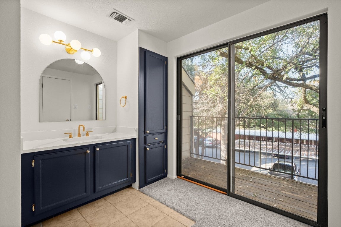 Live your best life in one of Austin’s hottest zip codes in this beautifully updated two story Zilker condo. This home is perfectly located in the middle of the city but still surrounded by nature. You can walk to Zilker Park and Town Lake among many of Austin’s other treasures. Don’t miss this rare opportunity to purchase an updated corner ground floor unit without upstairs neighbors for under 400k! Natural light radiates through the home with two story ceilings outfitted with two brand new skylights. The kitchen has been beautifully updated with designer paint, stone countertops, tile backsplash, and stainless steel appliances. The first floor includes kitchen, laundry area with washer and dryer, an updated half bath, breakfast area with built-in bookshelf and living space. Upstairs is a loft bedroom with updated primary bathroom and large walk in closet. Enjoy peek-a-boo views of the Austin skyline set behind a beautiful large live oak tree while sipping coffee on the large first floor gated patio. This home has not one but two outdoor spaces! There is a large second floor balcony accessible from the primary bedroom. Storage closet for outdoor items attached to the first floor patio. Take dips in the community pool on those hot Austin days.