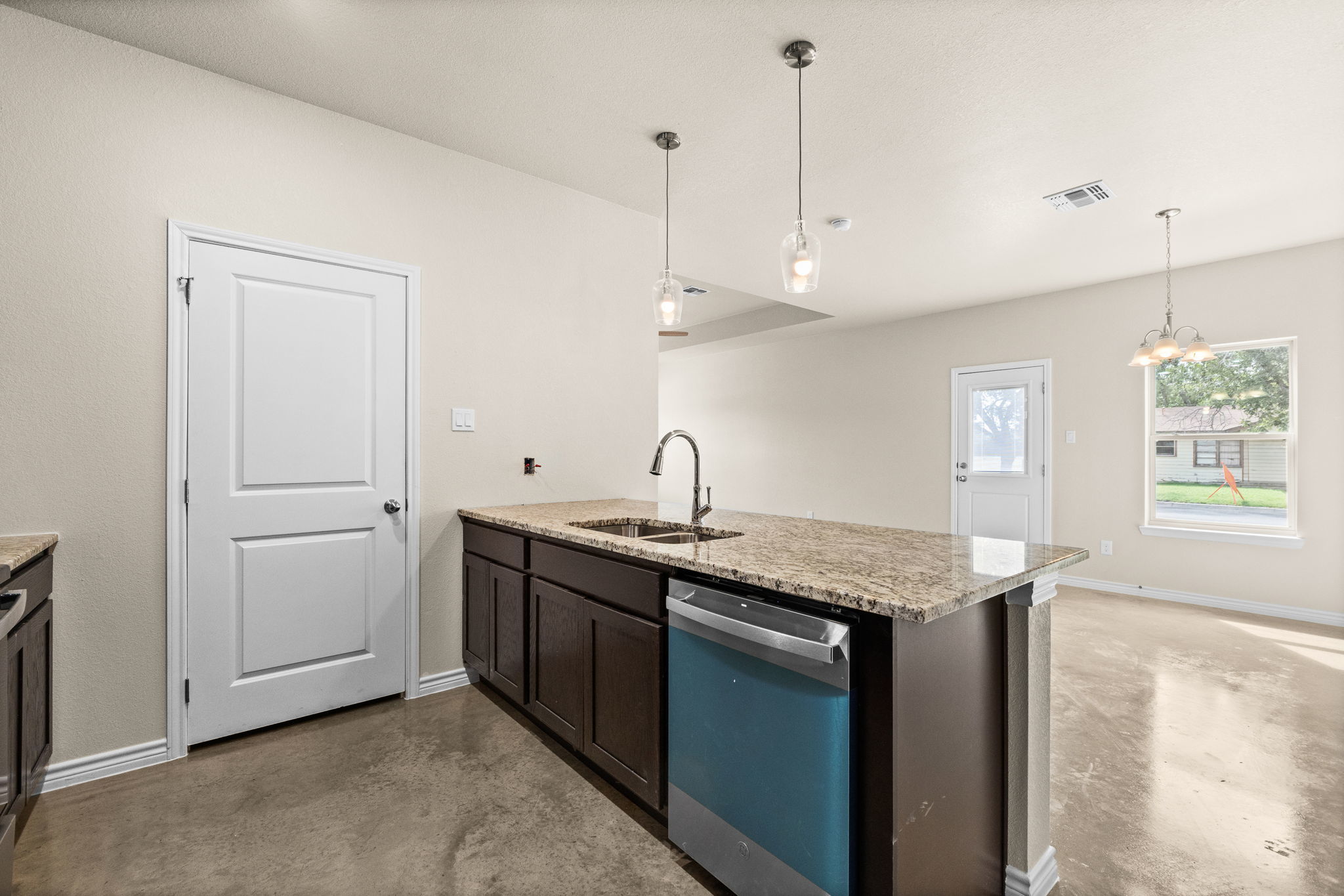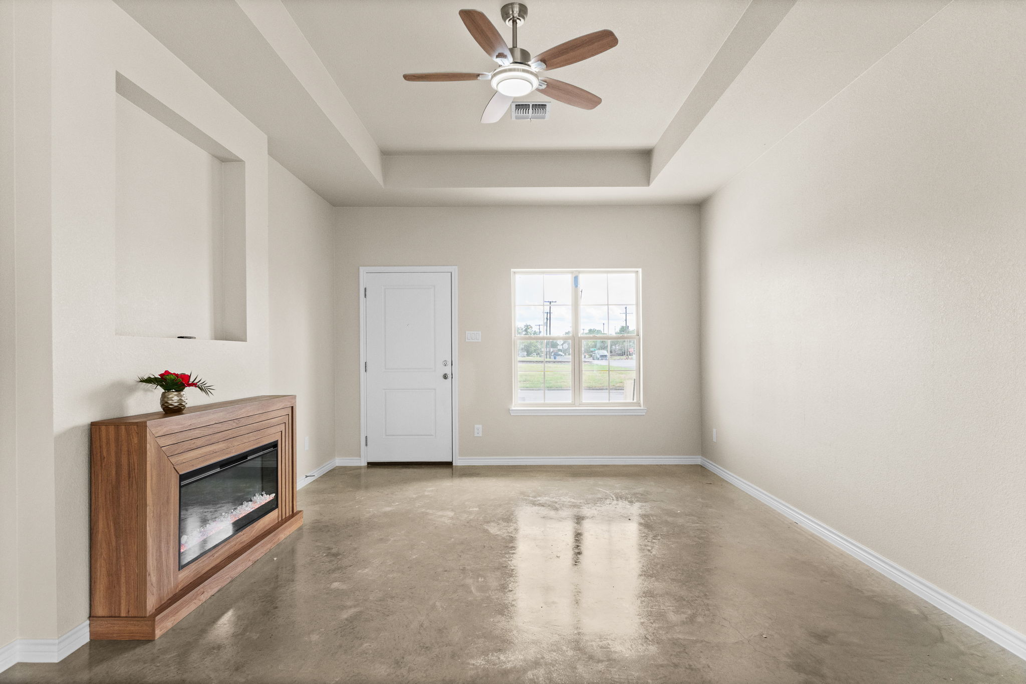 3-bedroom, 2-bath NEW construction on a corner lot in the heart of Copperas Cove! This beautifully designed home features concrete flooring throughout for durability and modern appeal. The living room and primary bedroom showcase inset ceilings, adding architectural interest. The home offers an open floor plan with seamless views between the living room, kitchen, and dining area, creating an inviting space for everyday living and entertaining. The living room features a sleek, space-saving fireplace that adds warmth and character without overwhelming the room. The kitchen is equipped with granite countertops, a breakfast bar, and stainless steel appliances, making it both functional and stylish. The primary bedroom and en suite bathroom include a walk-in closet, double vanity, and a large walk-in shower designed for comfort and convenience. Conveniently located close to schools, shopping, and restaurants, and just minutes from Fort Hood, with a short drive to Austin. Schedule your showing today! *Applicants must verify breed and number of pets BEFORE applying. Applications are to be submitted through Joint.ly - see supplements Renters must provide proof of renters insurance of a minimum of 100K.