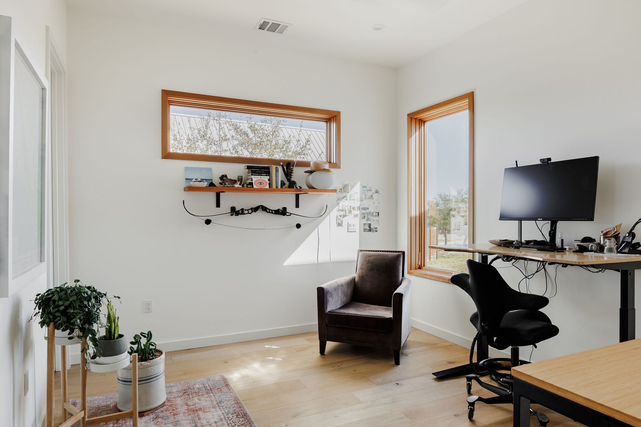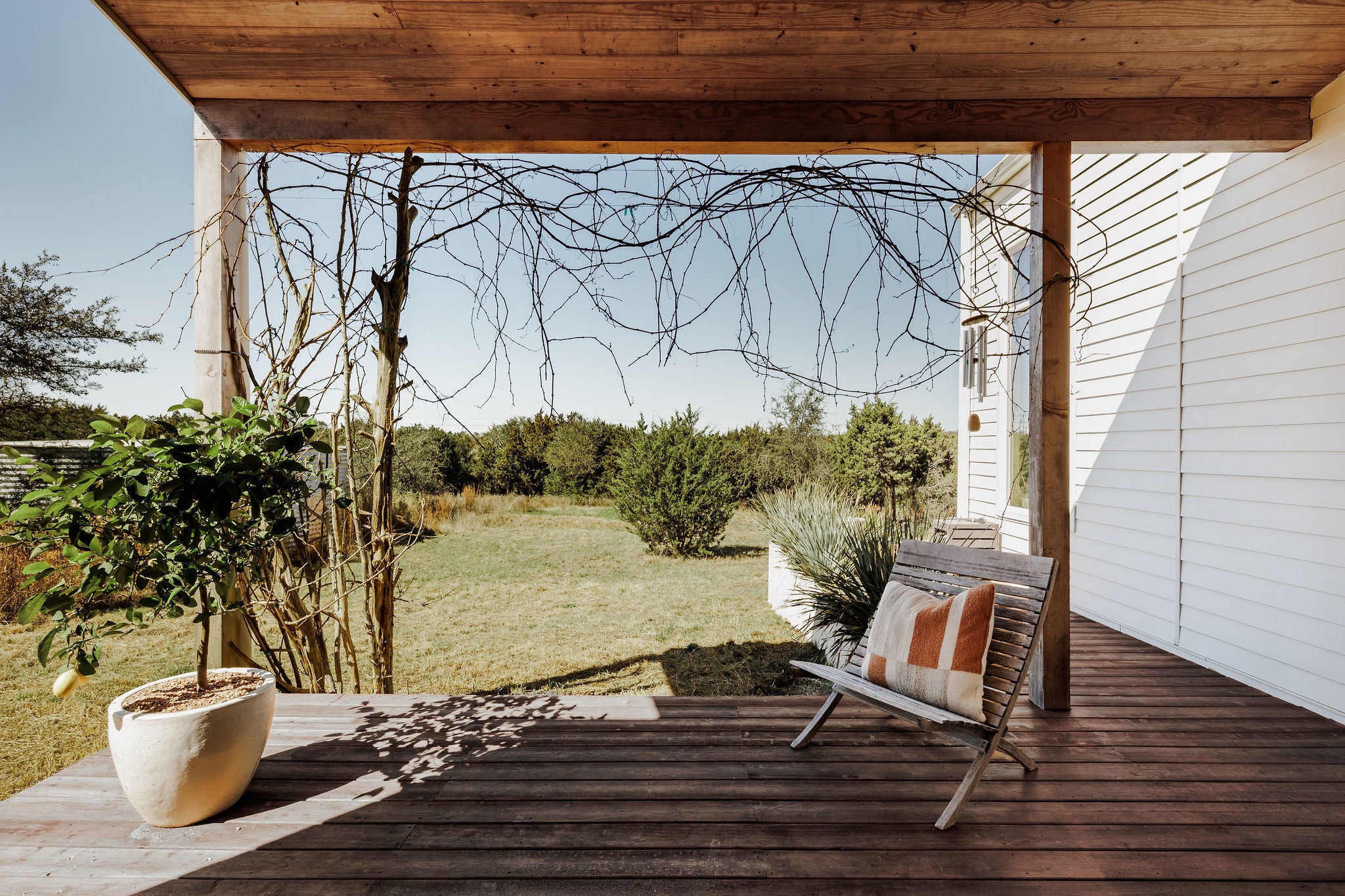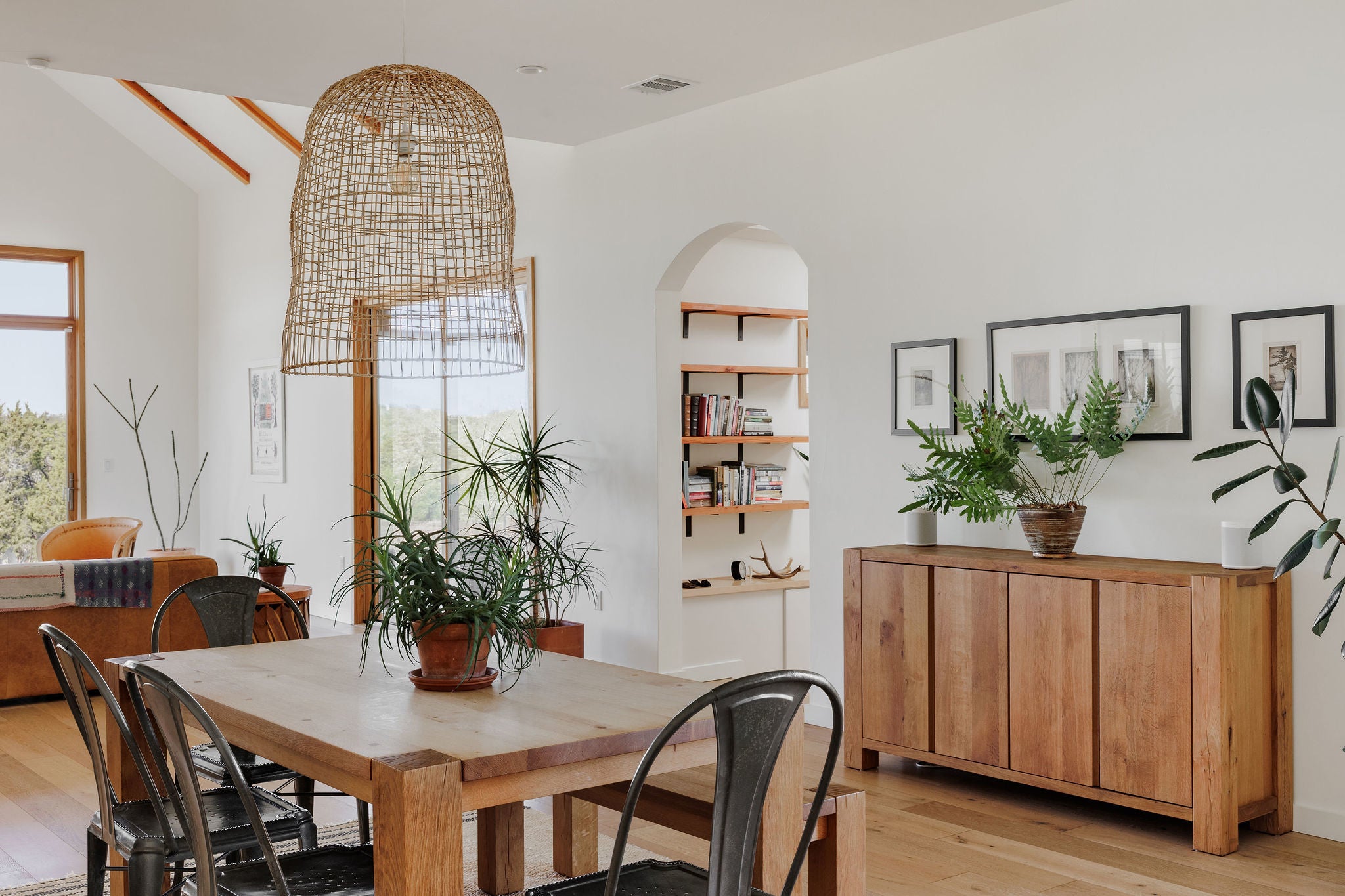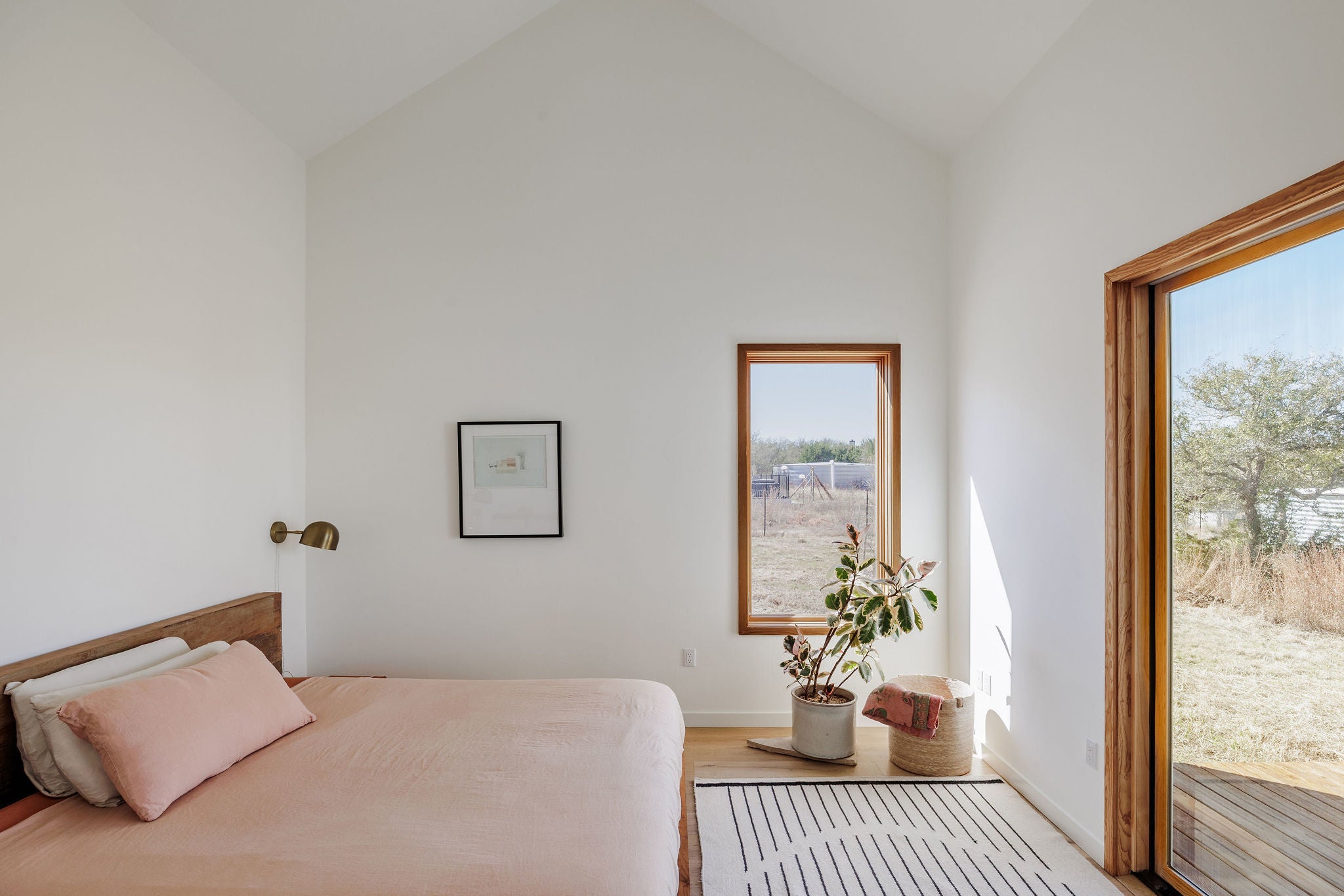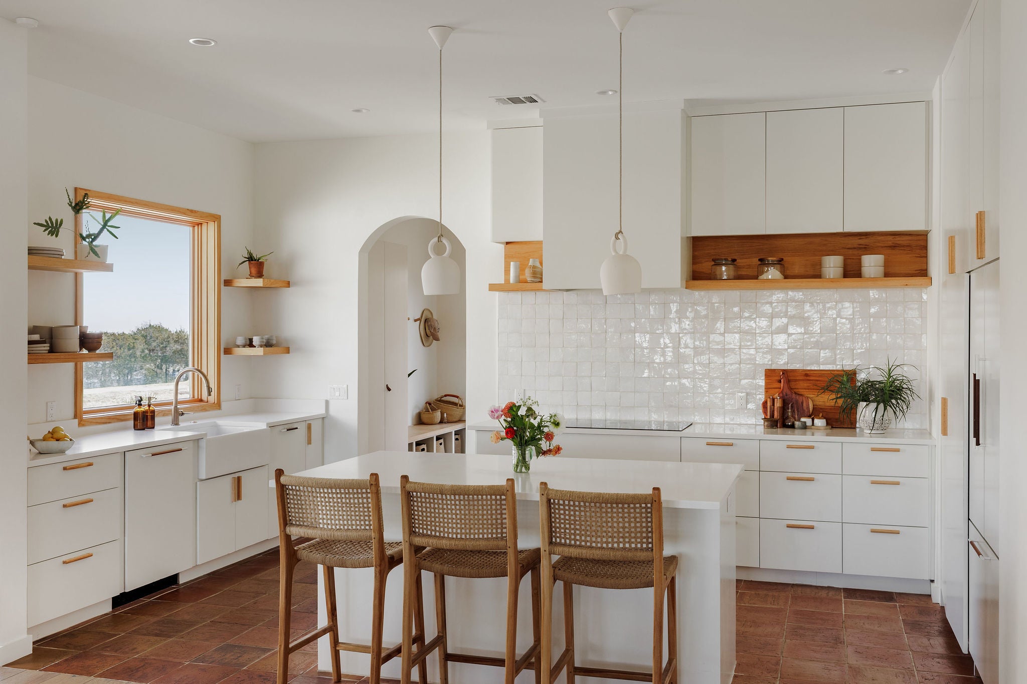 Set within the Terra Scena community in Dripping Springs, 201 Terra Scena Trail is a home that unfolds. Designed by Tim Brown Architects and built by SRD Builder, it blends Scandinavian modern simplicity with the warmth of Marfa and Mexico City, with details that feel natural. From the street, the architecture is understated. White stucco and soft arches create depth, and inside the home opens up. Soaring ceilings with exposed wood beams, expansive windows, and skylights pull light through the space. The main living area is open and well lit. Oversized glass doors connect seamlessly to the outdoors, while wood floors and natural materials keep everything grounded. The kitchen sits at the center. Clean-lined cabinetry, a farmhouse sink, open shelving, and a generous island make it both functional and refined. The primary suite is set apart and feels like a true retreat. Large picture windows bring in soft light, and the bath features a double vanity, soaking tub, and timeless finishes.Three additional bedrooms and two full baths offer flexibility for guests or work. What sets this home apart is how it sits on the property. The one acre lot has been restored to tall grass prairie, surrounded by native, drought resistant landscaping that shifts with the seasons. There is a sense of space and privacy, along with access to a shared 10 acre open space and private hiking trail. Sustainability is fully integrated. Cement board exterior, standing seam metal roof, double pane windows, and a rainwater collection system with approximately 32,000 gallon capacity. Infrastructure is in place for solar and EV. Terra Scena is a small, design focused community built around low impact living and thoughtful land stewardship. It attracts those who value architecture, privacy, and a more intentional way of living, all within minutes of wineries, parks, and downtown Dripping Springs, with easy access to Austin. Within Dripping Springs ISD, it offers both lifestyle and long term value.