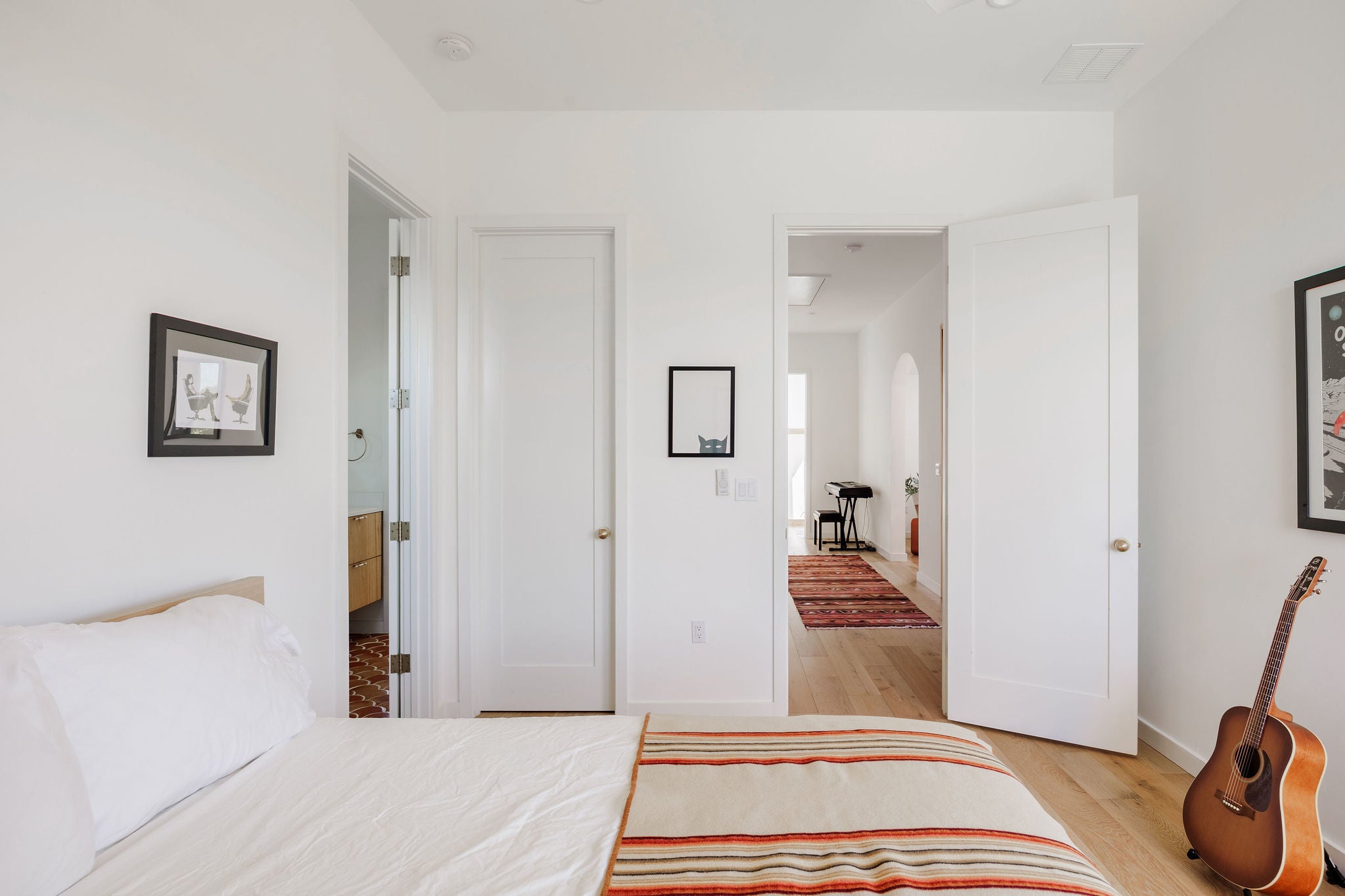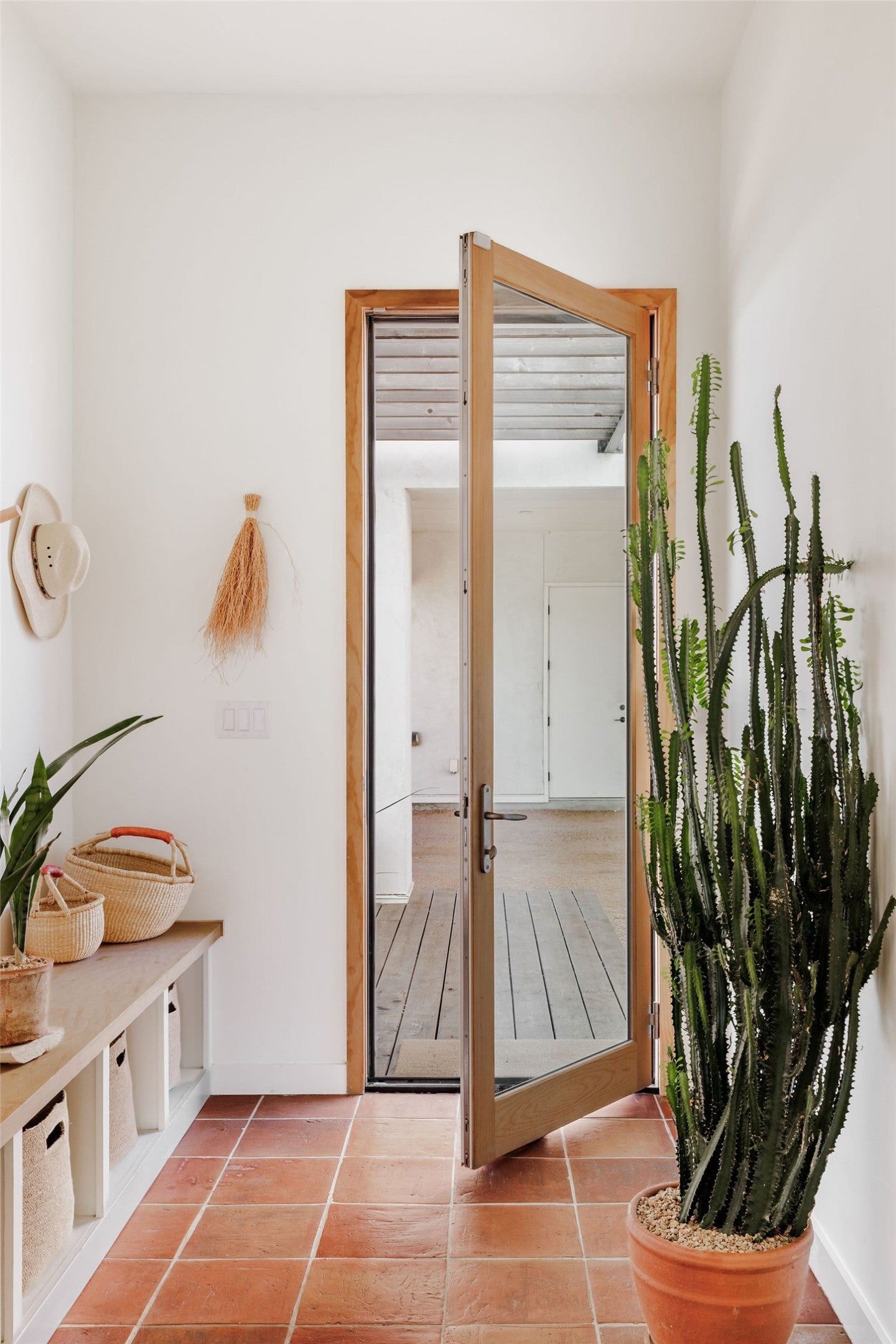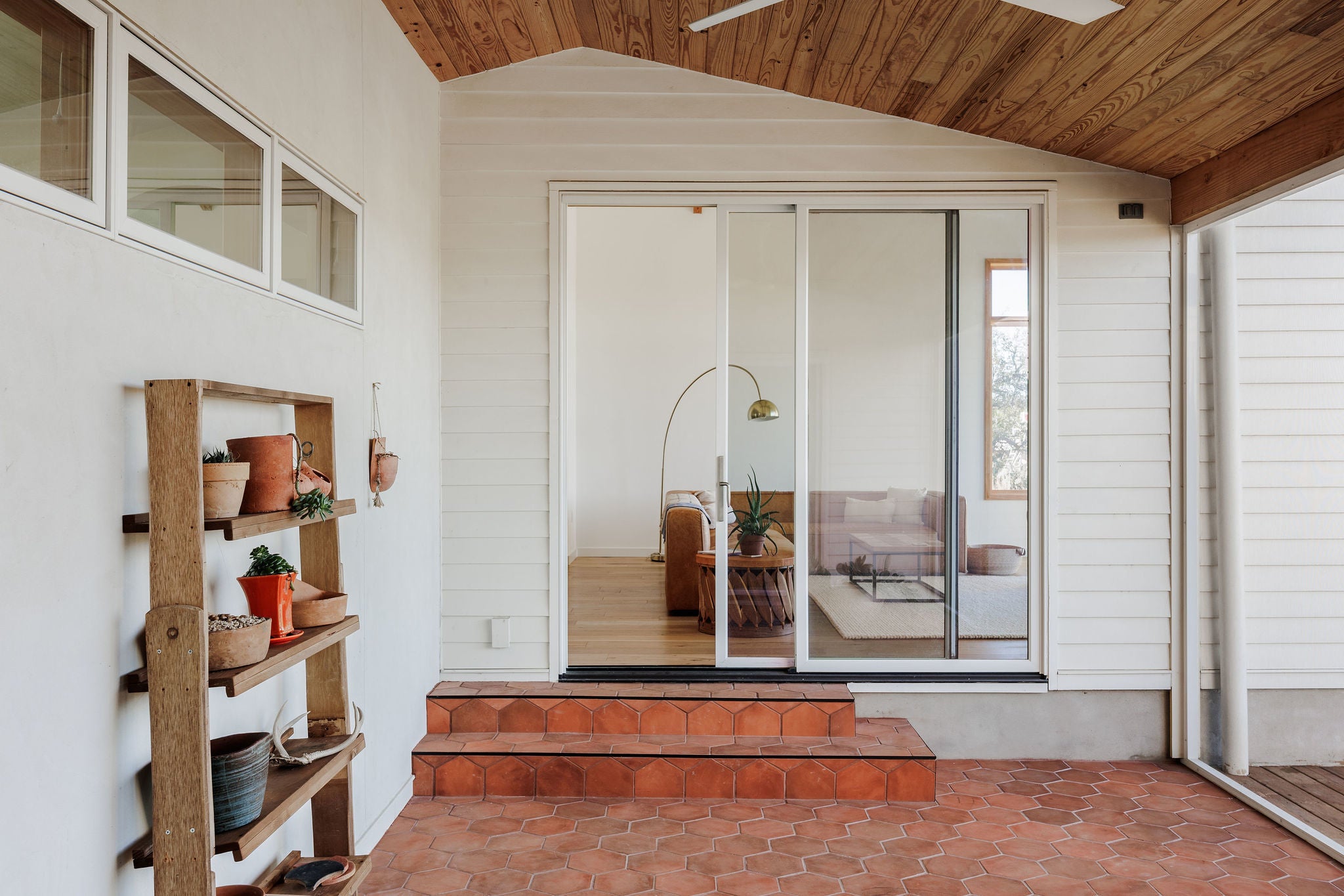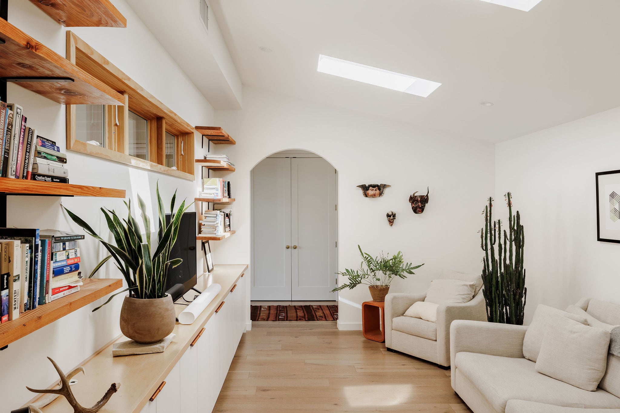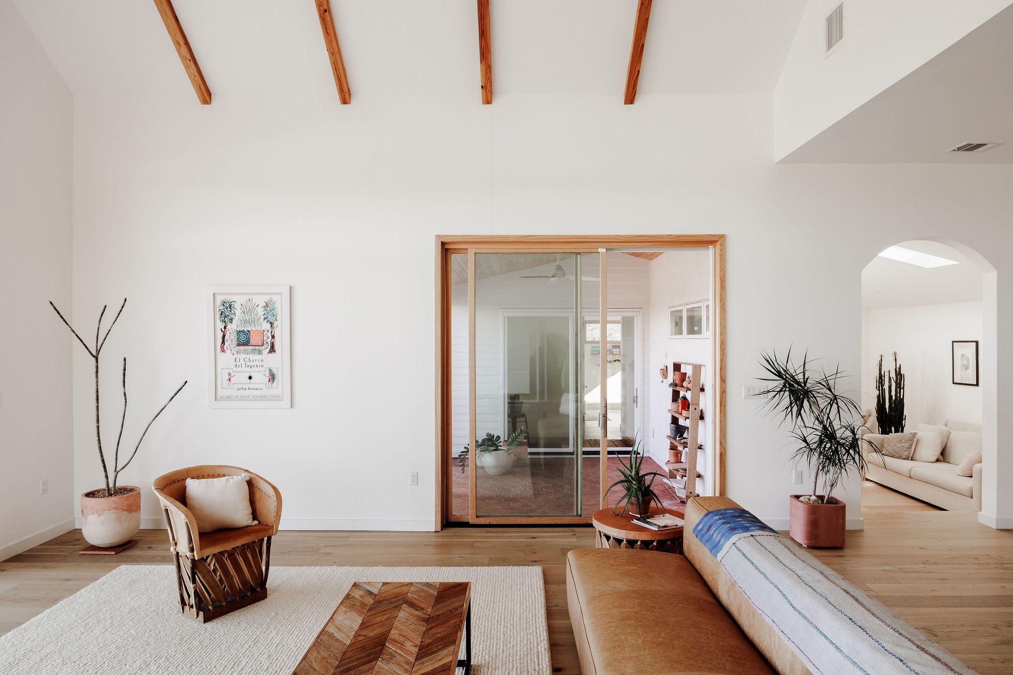 Set within the Terra Scena community in Dripping Springs, 201 Terra Scena Trail is a home that unfolds. Designed by Tim Brown Architects and built by SRD Builder, it blends Scandinavian modern simplicity with the warmth of Marfa and Mexico City, with details that feel natural. From the street, the architecture is understated. White stucco and soft arches create depth, and inside the home opens up. Soaring ceilings with exposed wood beams, expansive windows, and skylights pull light through the space. The main living area is open and well lit. Oversized glass doors connect seamlessly to the outdoors, while wood floors and natural materials keep everything grounded. The kitchen sits at the center. Clean-lined cabinetry, a farmhouse sink, open shelving, and a generous island make it both functional and refined. The primary suite is set apart and feels like a true retreat. Large picture windows bring in soft light, and the bath features a double vanity, soaking tub, and timeless finishes.Three additional bedrooms and two full baths offer flexibility for guests or work. What sets this home apart is how it sits on the property. The one acre lot has been restored to tall grass prairie, surrounded by native, drought resistant landscaping that shifts with the seasons. There is a sense of space and privacy, along with access to a shared 10 acre open space and private hiking trail. Sustainability is fully integrated. Cement board exterior, standing seam metal roof, double pane windows, and a rainwater collection system with approximately 32,000 gallon capacity. Infrastructure is in place for solar and EV. Terra Scena is a small, design focused community built around low impact living and thoughtful land stewardship. It attracts those who value architecture, privacy, and a more intentional way of living, all within minutes of wineries, parks, and downtown Dripping Springs, with easy access to Austin. Within Dripping Springs ISD, it offers both lifestyle and long term value.