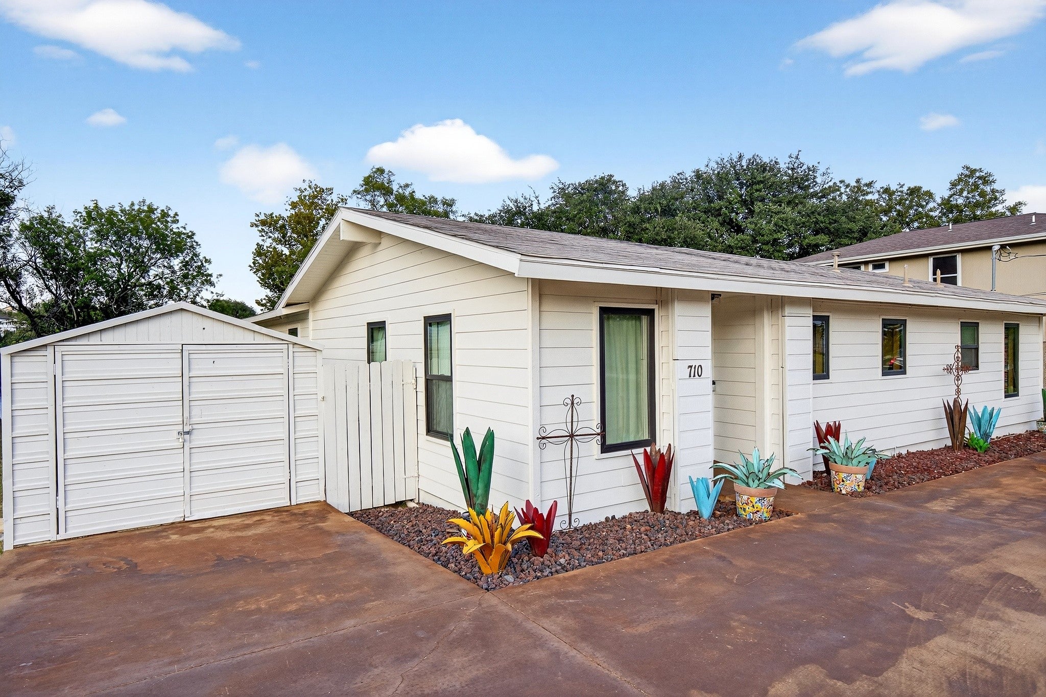 Welcome to 710 Sandy Harbor Drive, a charming retreat tucked away in the tranquil neighborhood of Sandy Harbor on Lake LBJ. Known for its peaceful setting and easy lake access, this area is perfect for boating, fishing, kayaking, paddleboarding, or simply soaking in the natural beauty. This adorable home has been thoughtfully updated with fresh interior and exterior paint, all new windows, improvements to the primary bedroom which overlooks the large backyard, a new back patio, and driveway. Outside you'll find a large covered back porch, the new patio, and a sitting area down at the water next to the boat slip and 2 personal watercraft slips. Located just minutes from both Horseshoe Bay amenities and Kingsland, you'll enjoy the best of lakeside living with nearby convenience. (Membership required to enjoy full Horseshoe Bay Resort amenities. No STR allowed).