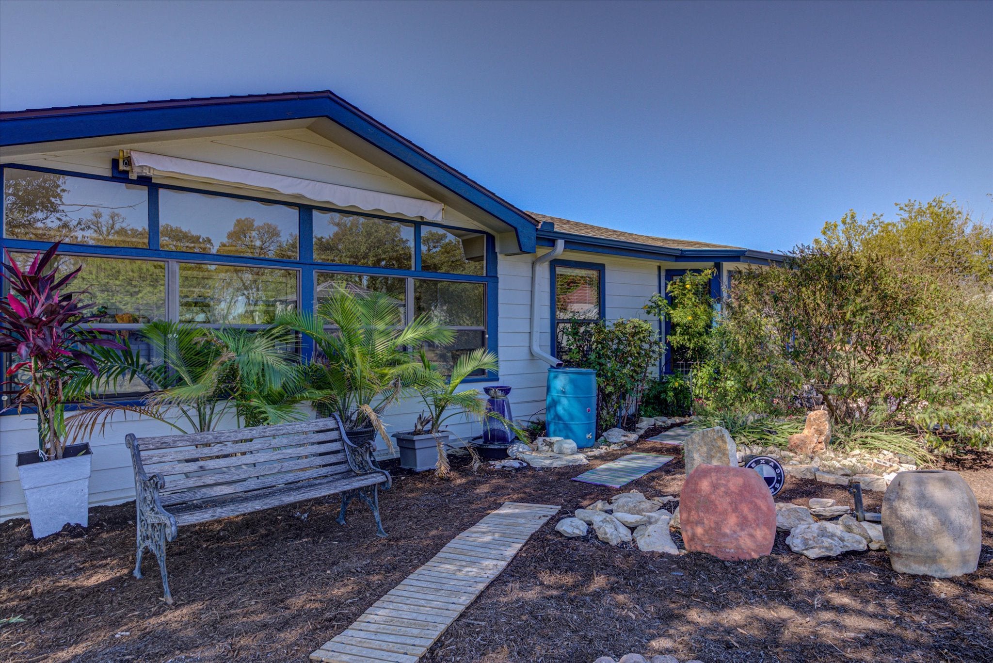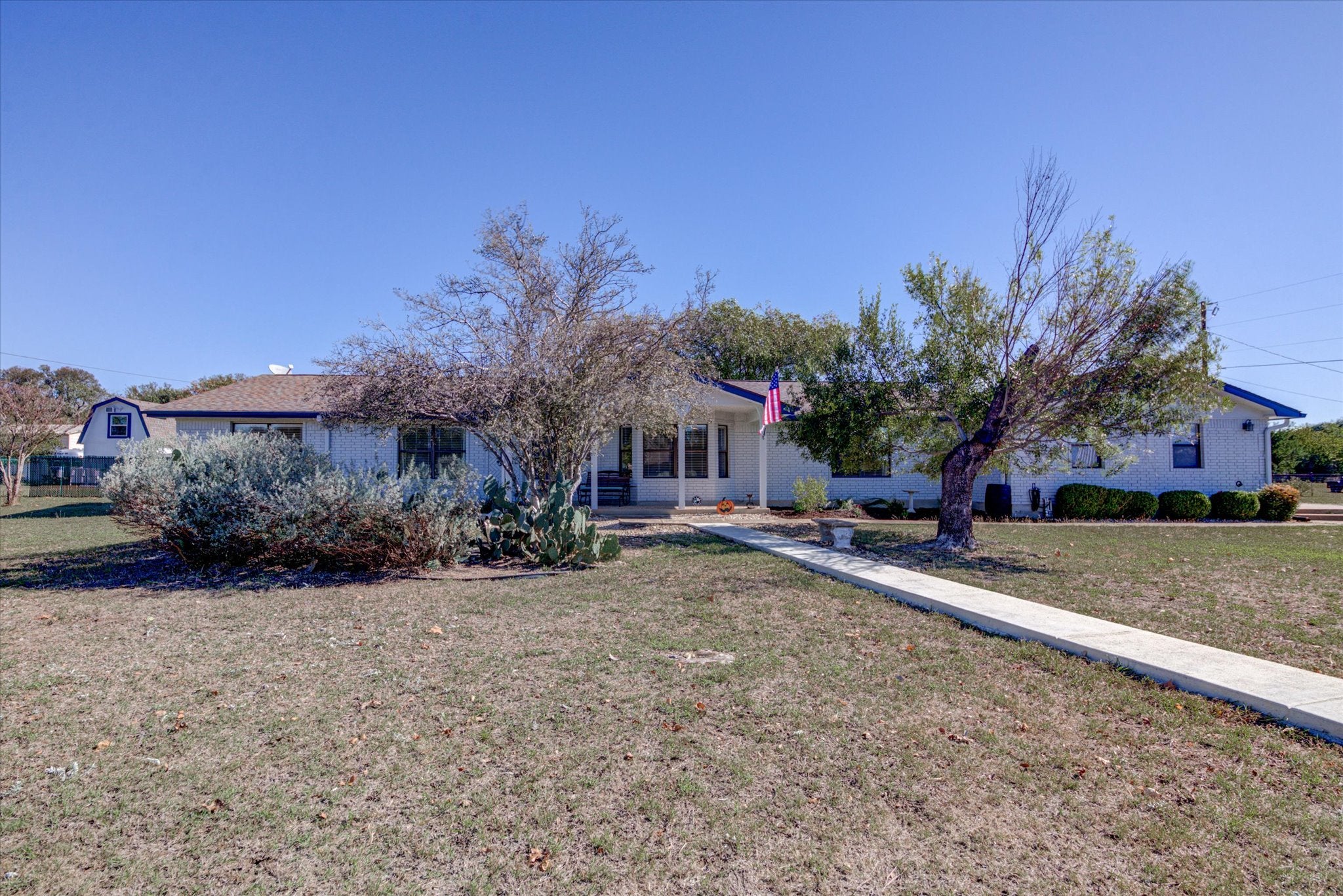 Welcome to peaceful country living in this beautifully updated 3-bedroom, 2 bath home with flex room is situated on 1.21-acres. Main house is 2,616 square feet, single-story that offers an open layout with high ceilings, spacious living room with 2-sided (Livingroom/kitchen) wood burning fireplace, formal dining and separate eat in kitchen area. The kitchen features granite countertops, a stone backsplash and stainless-steel appliances. The spacious primary suite includes a flexible sitting area or home office, dual vanities and walk in shower. Large walk-in closet with 2 additional smaller closets. Separate pantry/storage room and laundry room and all-weather room overlooking your private backyard retreat with a sparkling in-ground pool and covered cabana for entertaining or quiet evenings under the stars. 2 car side-entry garage with covered carport for 1 additional parking space. 12 x 30 (360sf) detached shop/garage insulated and wired for 220V with 2 window a/c units. 12 x 10 (120sf) detached building with 2 loft storage areas and 8 x 10 metal shed for storing lawn equipment etc. A separate detached 552 sq ft. fully furnished guest house. Previously successfully rented out for extra income on AirBnB. Guest house includes kitchenette with porcelain tile countertops, loft bedroom with queen sized bed, Lazyboy recliner and sleeper sofa with queen size pull out, dining area and smart tv. Bathroom has shower and washer/dryer combo. Private fenced back patio. Exterior freshly painted in 2025, new A/C 2024 and new roof on home, guest house and workshop in 2022. Voluntary HOA. Septic system is in the process of being replaced so you will have a brand new larger septic system. Conveniently located off of Williams Drive, this home is minutes from Lake Georgetown and historic downtown Georgetown with ample shopping, dining and entertainment options! Quick access to I-35 and Highway 29 for a quick commute to the surrounding Austin area.