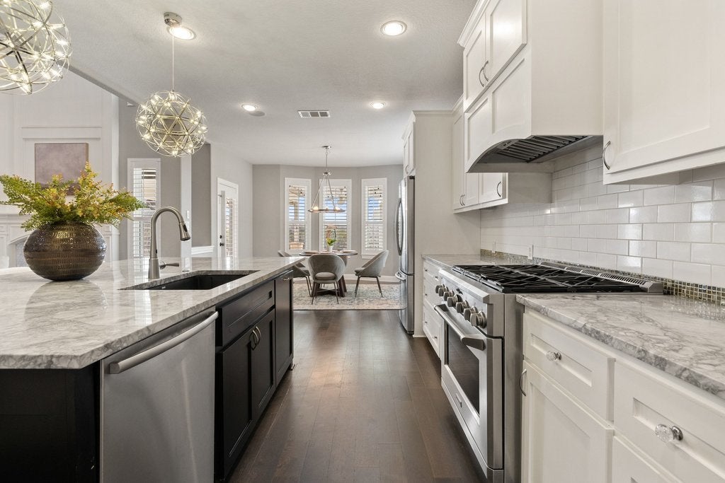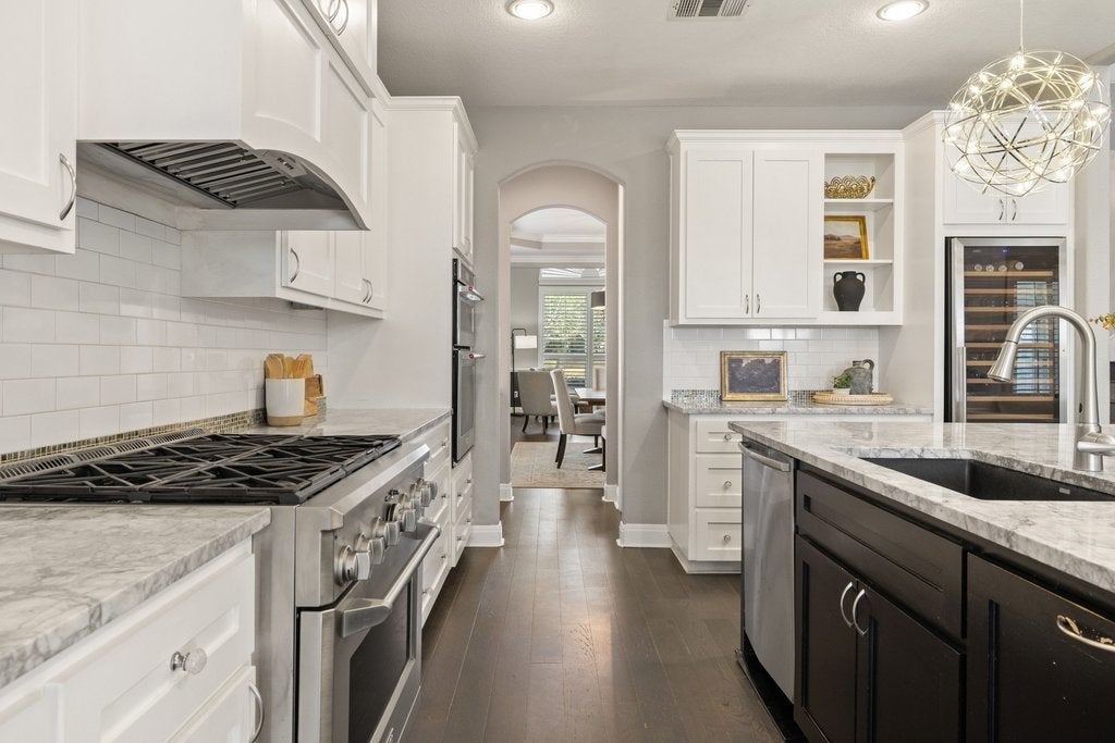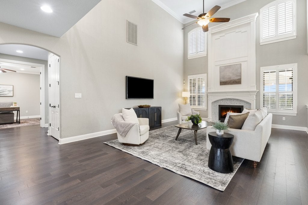 Experience refined luxury in this exceptional residence, ideally set on an oversized, private lot backing to a tranquil greenbelt with sweeping views of the Balcones Canyonland Preserve. Designed for elevated living and effortless entertaining, the resort-style backyard features a sparkling pool, spa, fire feature, and expansive covered patio. The fully equipped outdoor kitchen includes a built-in grill, beverage refrigerator, and shaded pergola—perfect for year-round enjoyment. Inside, the beautifully remodeled chef’s kitchen anchors the home with crisp white cabinetry, granite countertops, a commercial-grade range, and an impressive 150-bottle wine refrigerator. A well-appointed butler’s pantry with beverage center adds both style and convenience, while rich wood flooring flows throughout. The thoughtful floor plan also offers a spacious upstairs living area ideal for a game room, lounge, or private retreat plus a separate media room. The luxurious primary suite embraces indoor-outdoor living with direct access to the covered patio and serene greenbelt views. Custom closet systems enhance organization throughout the home, while plantation shutters add timeless elegance. Additional features integrated indoor and outdoor speakers, misters for the Texas heat and smart home technology. Located within the gated community of The Ridge at Alta Vista, residents enjoy resort-style amenities including tennis and pickleball court, a basketball court, pool, and splash pad—conveniently close to shopping, dining, and top-rated Lake Travis schools.