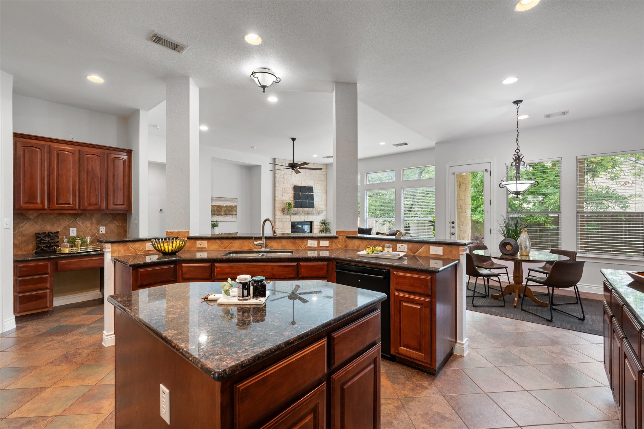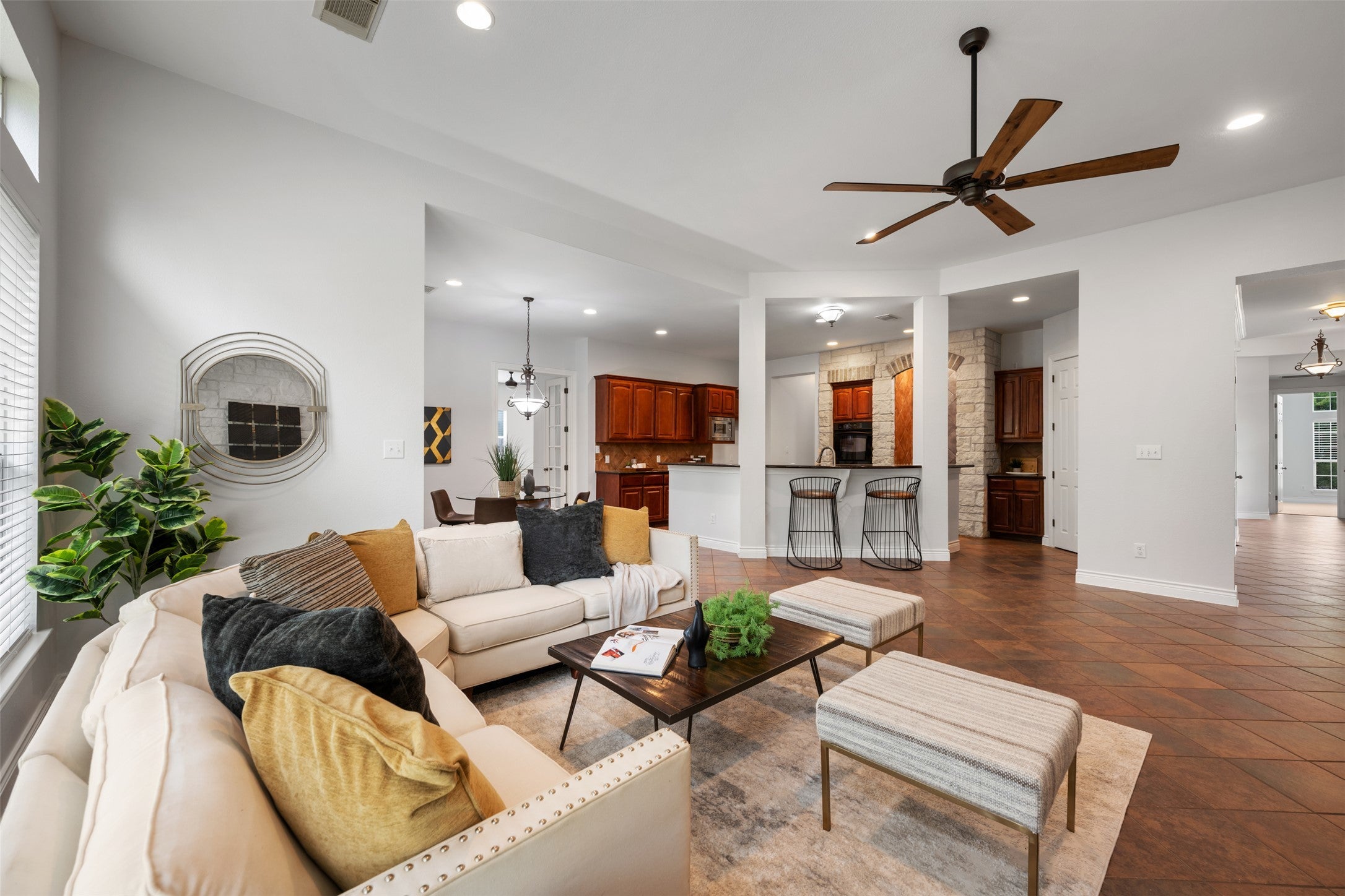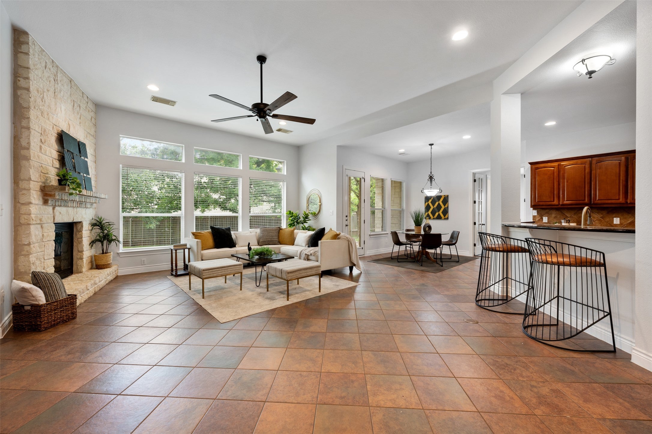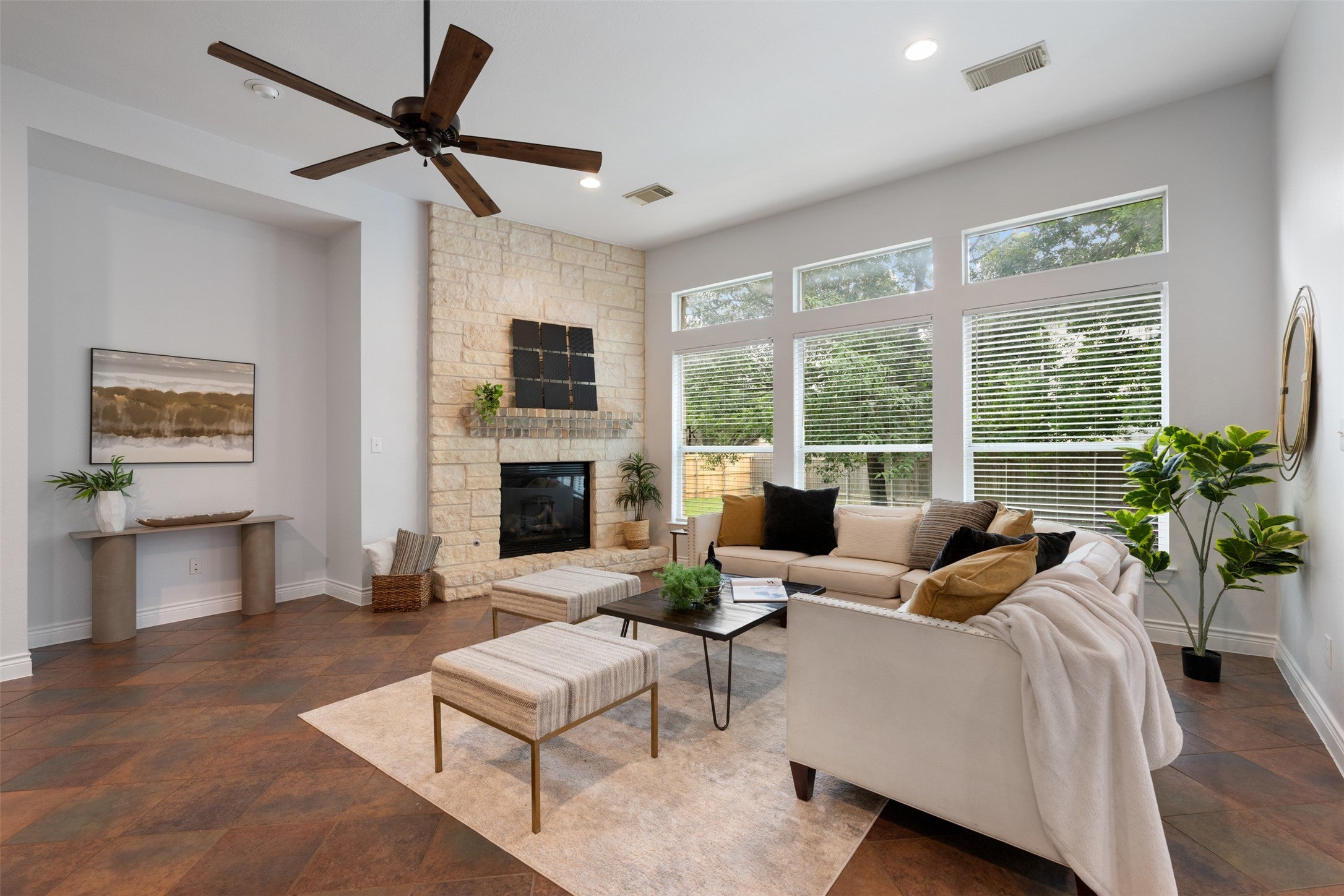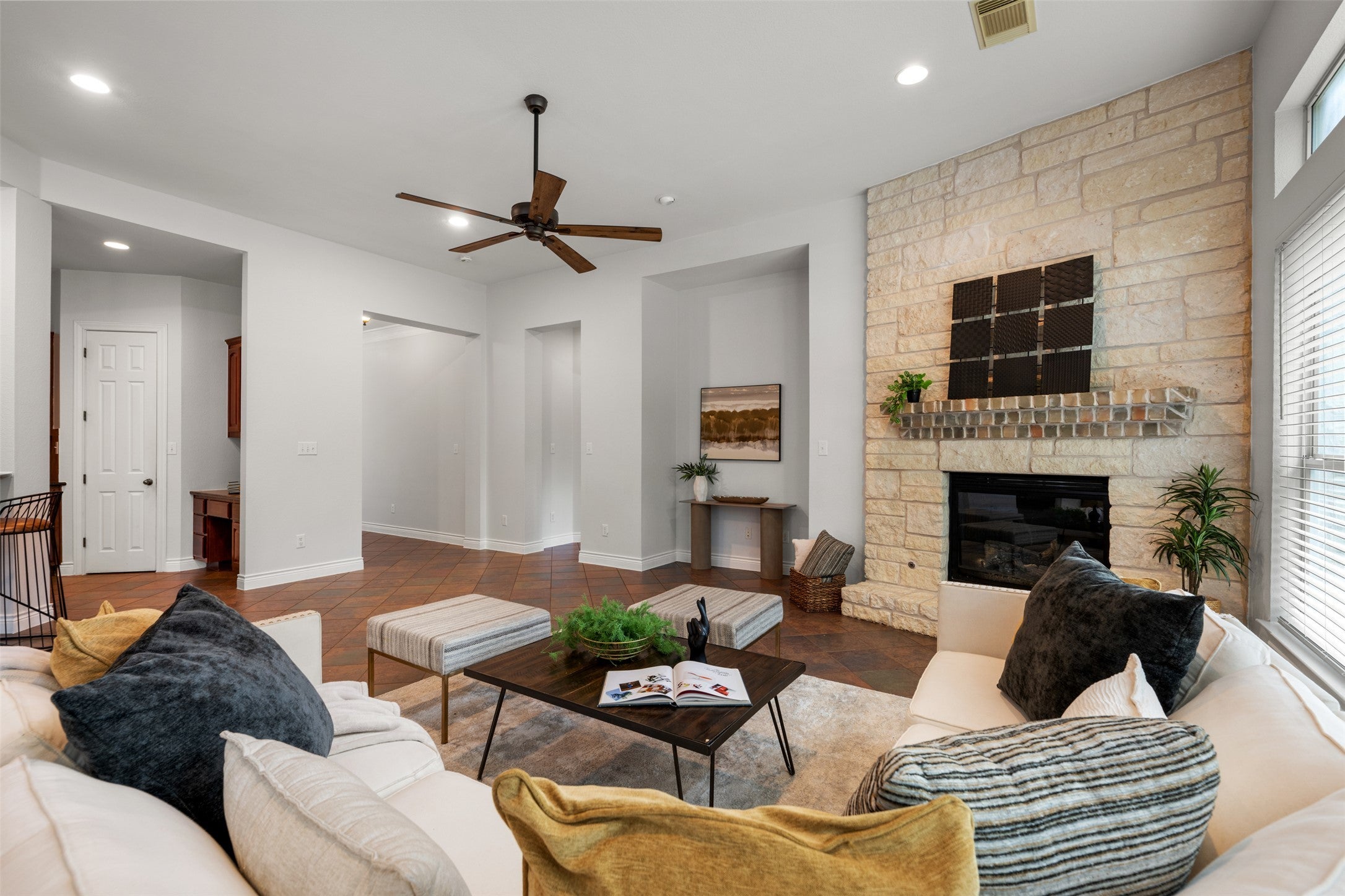 Welcome to 11101 Pairnoy Lane, an exceptional executive residence gracefully situated on a premier corner lot in the exclusive Hielscher enclave of Circle C Ranch. Showcasing a striking white Texas limestone façade, this home makes an immediate statement of timeless sophistication and refined Hill Country elegance. Thoughtfully designed for both grand entertaining and everyday comfort, the expansive floor plan offers 4 generously sized bedrooms along with a versatile flex space—perfectly suited as a private study, fitness room, or media lounge. Every detail reflects quality craftsmanship and intentional design. At the heart of the home, the chef’s kitchen is both functional and impressive, featuring rich granite countertops, a substantial center island, double ovens, and abundant custom cabinetry. Seamlessly connected to the main living areas, it creates an effortless flow ideal for hosting and gathering. The main-level primary suite is a true sanctuary, offering a serene retreat with a spa-inspired bath complete with a Jacuzzi soaking tub, oversized walk-in shower, and elegant finishes designed for relaxation and rejuvenation. Outdoors, a beautifully crafted limestone-covered patio invites year-round enjoyment, overlooking the expansive yard and offering the perfect backdrop for alfresco dining or quiet evenings under the Texas sky. The oversized three-car garage adds both convenience and distinction. Ideally located just moments from highly acclaimed Clayton Elementary and the exceptional amenities of Circle C—including resort-style pools, parks, and scenic trails—this home offers a rare combination of privacy, prestige, and community. A refined offering in one of Southwest Austin’s most coveted neighborhoods, 11101 Pairnoy Lane delivers an elevated lifestyle of comfort, elegance, and enduring value.