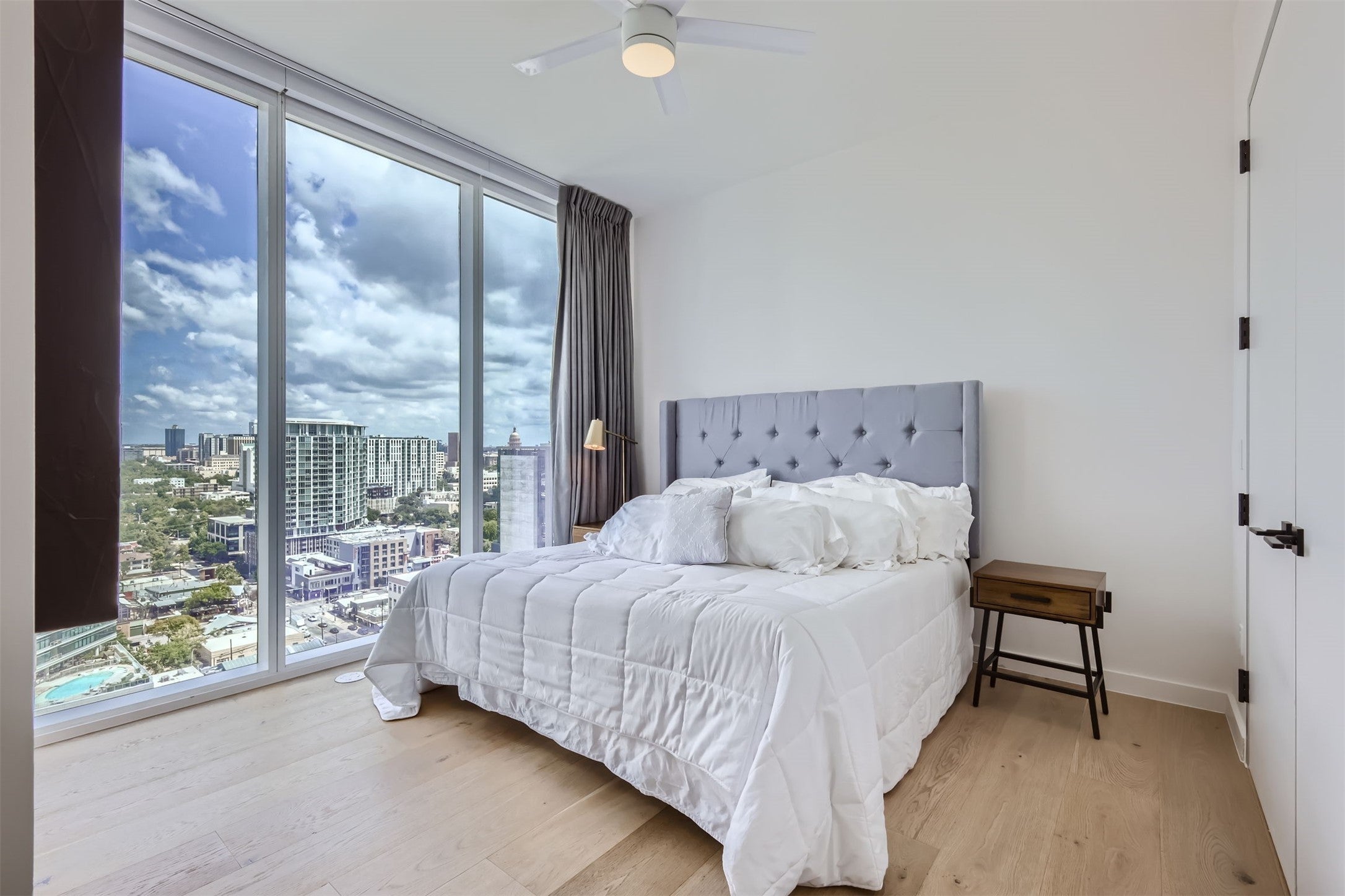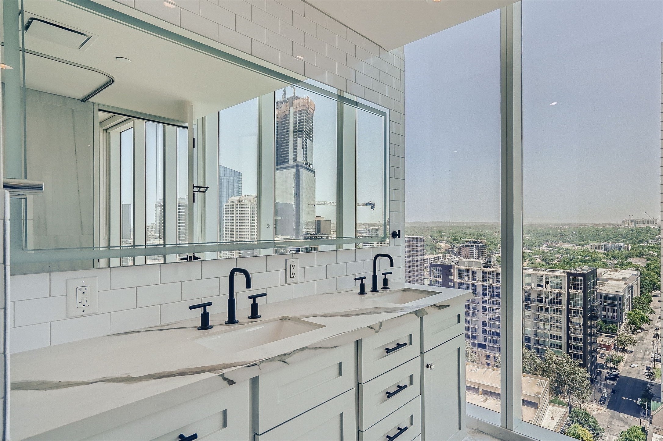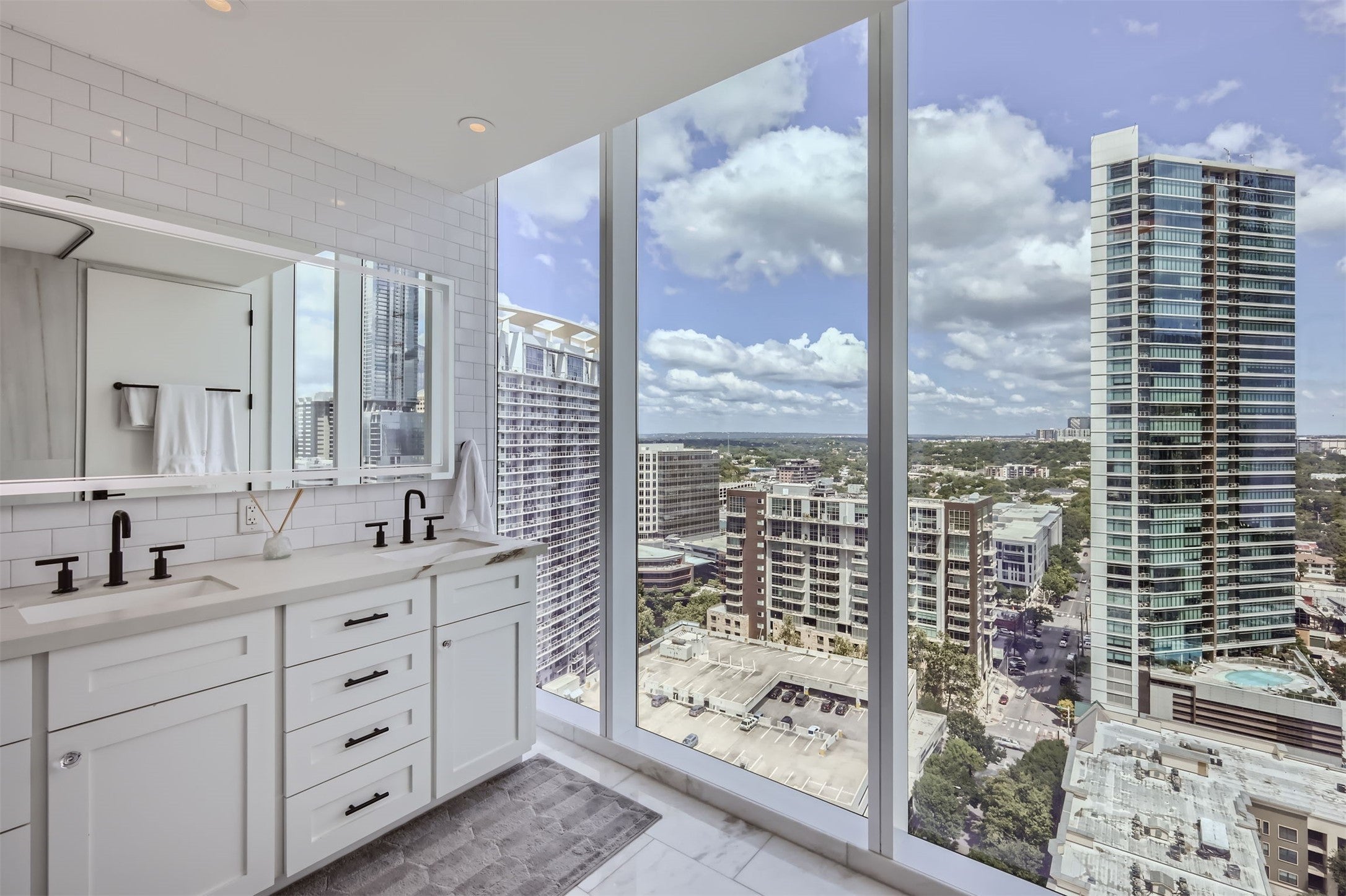 Remodeled 2BD/2BA residence on the 21st floor of The Independent—Austin’s iconic downtown tower in the heart of the Seaholm District. Unit #2101 offers a thoughtfully updated interior with elevated finishes, modern lighting, and a clean, contemporary design that complements expansive city views. The open-concept layout features a bright living and dining space with floor-to-ceiling windows, creating natural light throughout. The remodeled kitchen includes upgraded cabinetry, sleek countertops, and stainless appliances—ideal for entertaining or everyday living. The spacious primary suite offers a spa-inspired bath and generous closet space, while the secondary bedroom and full bath provide flexibility for guests or a home office. Enjoy resort-style amenities including a 24-hour concierge, heated pool, state-of-the-art fitness center, owner’s lounge, conference rooms, dog park, and multiple outdoor gathering spaces with panoramic skyline views. Located steps from Lady Bird Lake, Trader Joe’s, Whole Foods, restaurants, and downtown nightlife—this is luxury urban living at its best.
