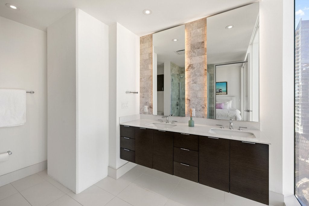 Set on a coveted west-facing corner, this residence offers a front row view of iconic Austin scenery, overlooking Lady Bird Lake and extending to the Texas State Capitol. A highly sought after open concept floorplan creates an easy, natural flow throughout the home. Designed for entertaining, the kitchen opens directly into the living area and out to the balcony. The primary suite provides a calm retreat with custom California Closets and a spa inspired bath. A separate study functions well as a guest room or second sleeping space, while two full bathrooms and two reserved parking spaces add everyday ease. Residents enjoy direct access to the trail and lake, along with a thoughtfully curated collection of amenities including a 24 hour concierge, heated pool, fitness and yoga studio, private theater, dog park, additional guest rooms, and inviting indoor and outdoor gathering spaces all just minutes from the best of Austin.