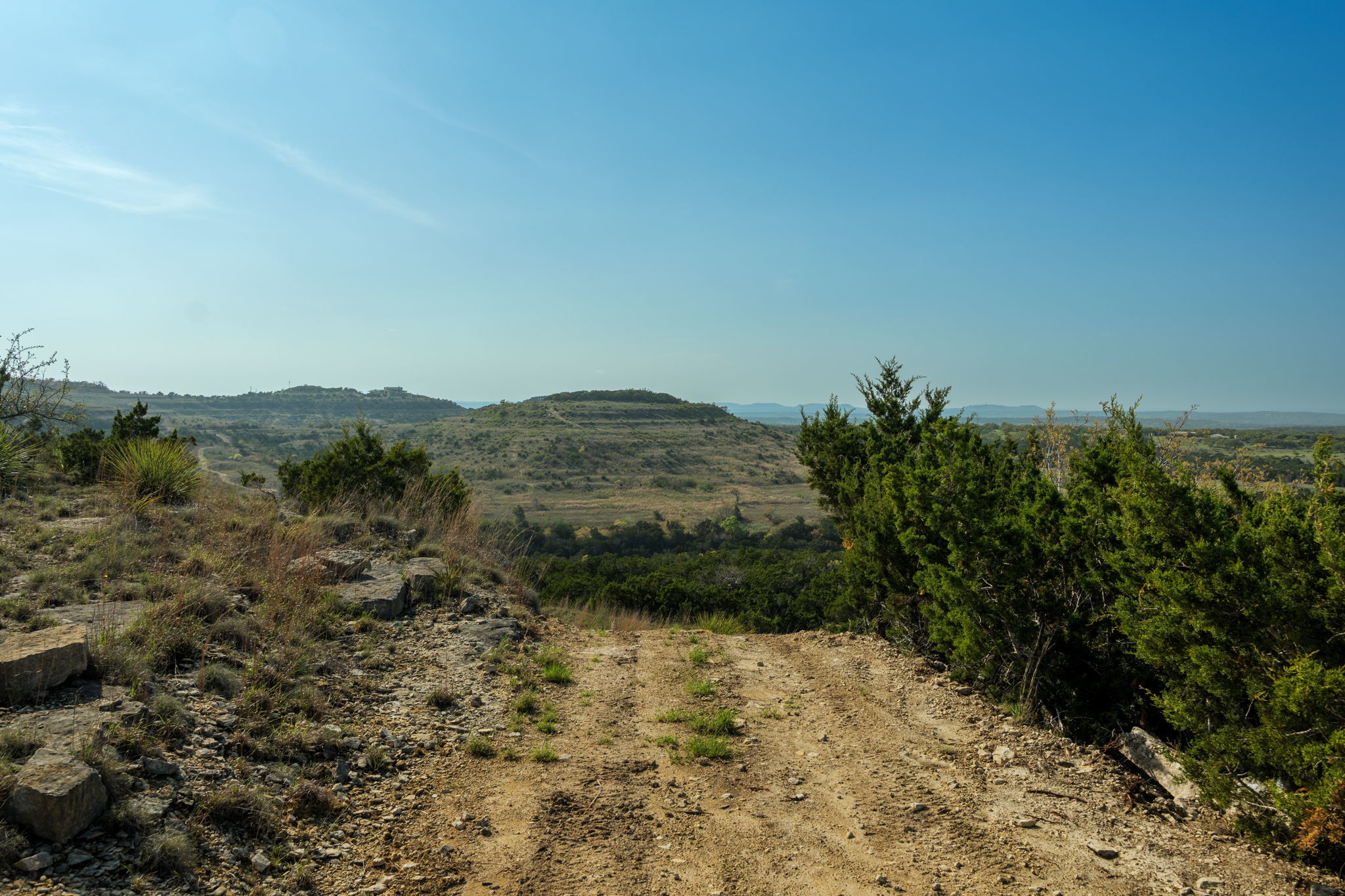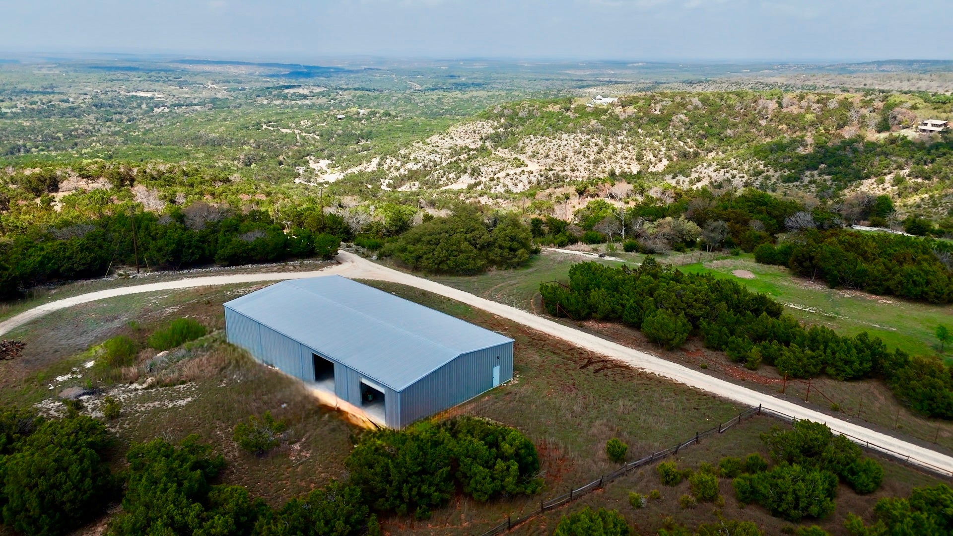 Welcome to Lonesome Dove Hill Country Ranch, a 38-acre stretch of Texas Hill Country where the skies go on forever, the views are unforgettable, and the land feels like something out of a storybook. Perched above an elevation of 1,400 ft, this property offers multiple build sites, each more stunning than the last. A seasonal creek cuts through the land, forming peaceful grottos and shaded rock ledges that make it feel like your own private park. It’s quiet here, the kind of quiet that lets you hear the wind move through the trees and the wildlife going about its day. With a current wildlife exemption, you get to enjoy the beauty of nature and benefit from low property taxes. Daily sightings of whitetail deer, turkey, and other native game are common here, and if you enjoy hunting, the land offers the privacy and habitat to support it. You can explore the many trails on foot or by UTV, whether hiking to a favorite lookout, watching wildlife, or cruising at sunset. At the heart of the property is the Lonesome Dove cabin, a 1,520 sq ft Hill Country retreat with big porches, warm wood interiors, and thoughtful finishes that echo the spirit of the land. It’s currently a VRBO, and the cabin easily transitions into a private guest house, temporary quarters while you build, or a weekend escape. Two large metal buildings offer incredible flexibility: a 5,000 sq ft structure with six roll-up doors and concrete floors, plus an additional 1,500 sq ft building. Ideal for storing UTVs, ranch equipment, launching a hobby space, or future expansion into guest quarters or a rec barn. And while the land feels remote, you’re just minutes from the town square in Blanco and an easy drive to Dripping Springs, Johnson City, and Canyon Lake. Austin and San Antonio are both within an hour, giving you access to major airports, healthcare, and dining, without sacrificing peace and privacy. This is where you can unplug, spread out, and build something that lasts