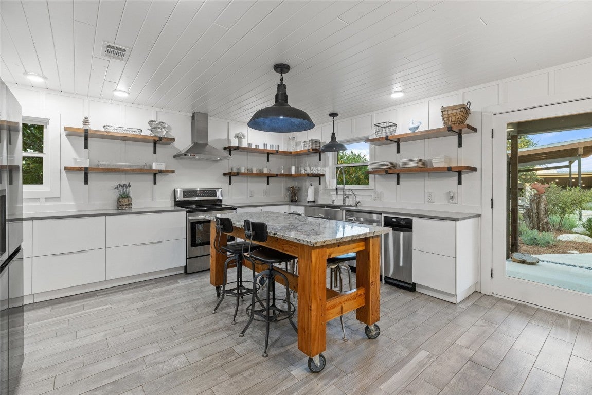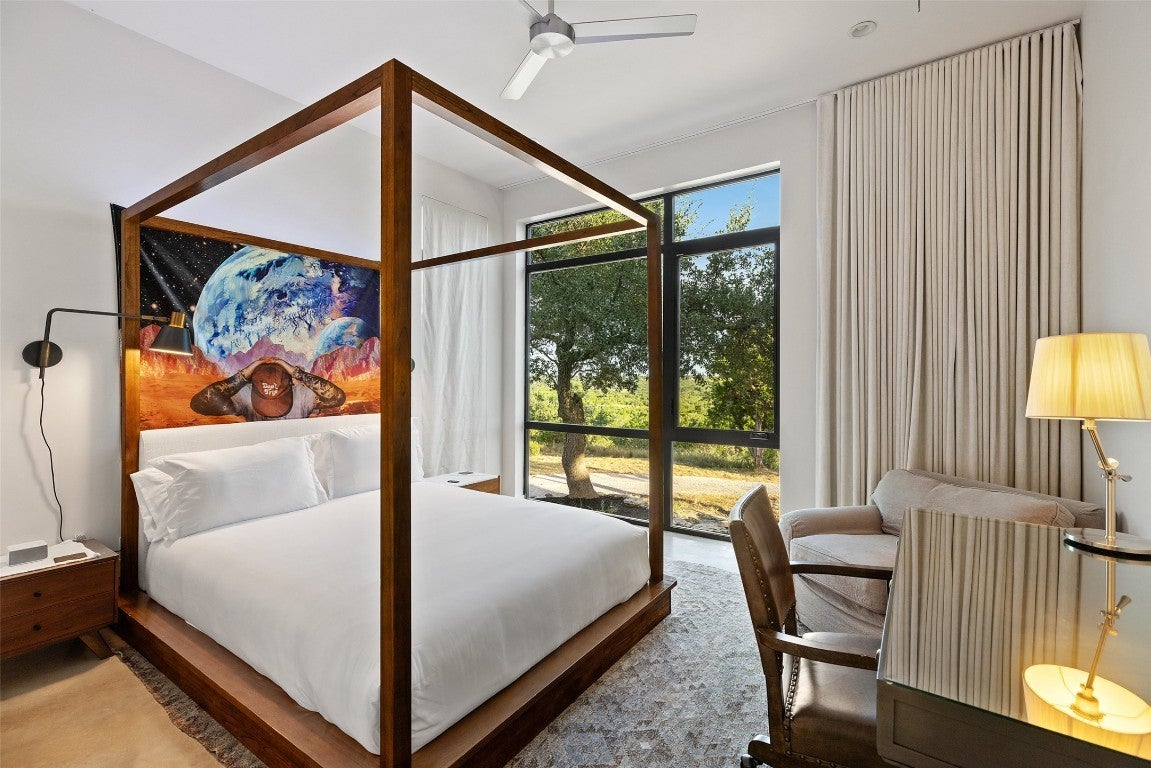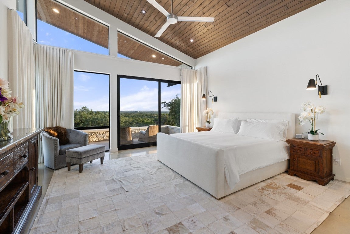El Cosmico, Marfa meets Hotel San Jose. This extraordinary 26.5-acre gated hilltop estate redefines Hill Country luxury with TWO exquisitely appointed residences, horizon-stretching views, and impeccable resort-style amenities—all just minutes from downtown Wimberley. The 2019 custom-built primary residence offers 3,832 square feet with 4 bedrooms, 4.5 baths, expansive windows, vaulted ceilings, beamed details, and multiple fireplaces. A chef’s kitchen anchors the home with quartz countertops, Viking dual-fuel range, Sub-Zero refrigerator, Bosch dishwasher, and an 11-foot island with built-in outlets. The owner’s suite is a retreat unto itself, featuring dual closets, spa-inspired bath with a jetted soaking tub, walk-in rain shower, towel warmer, and a private sunset deck. A secondary 1,792-square-foot residence with 3 bedrooms and 2 baths has been fully updated, offering ideal guest accommodations, multigenerational living, or rental income potential. The property’s centerpiece is a true entertainer’s haven: resort-style pool and spa, cabana, pergola, outdoor kitchen, bocce ball court, and firepit. Additional features include a private well, 30,000-gallon rainwater collection tank, three EV charging stations, and two RV hookups. Once part of the esteemed Gold Family ranch, this private retreat balances modern luxury with Texas heritage. Perfectly positioned less than 15 minutes from downtown Wimberley, 201 Gold Nugget Road delivers an unparalleled blend of natural beauty, refined finishes, and modern amenities. Whether as a family compound, private retreat, or full-time residence, it embodies the very best of Hill Country living. Wildlife Management application in process for substantial property tax savings in 2027.**Property is also an AirBNB the more lead time on showings the better. Over $96,000 in Airbnb revenue already booked. Great corporate property or second home. Own a beautiful second home compound and have Airbnb pay your taxes and expenses!