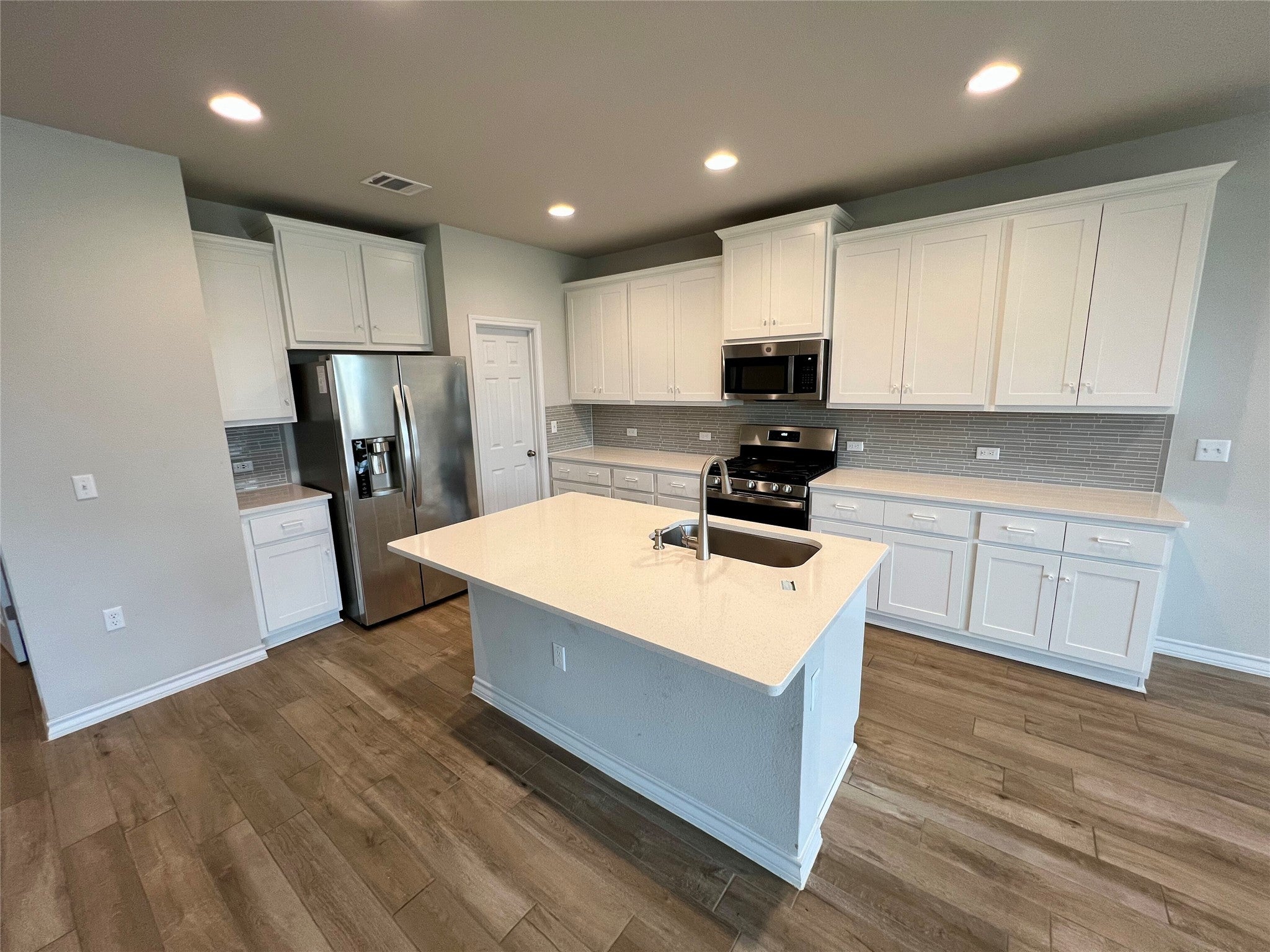 - Dishwasher, Free-Standing Gas Range, Disposal, Gas Oven, Microwave, Refrigerator, Stainless Steel Appliance(s), Vented Exhaust Fan