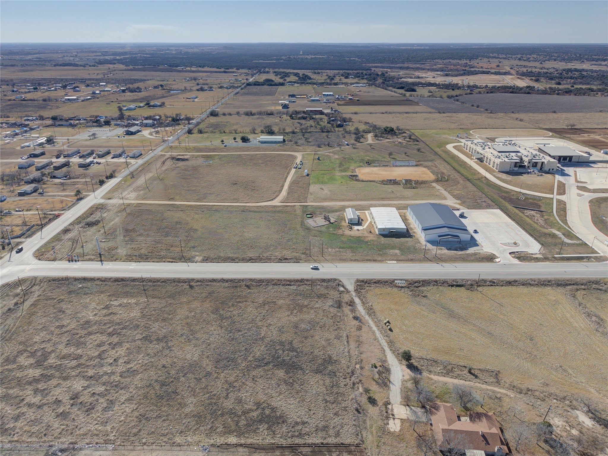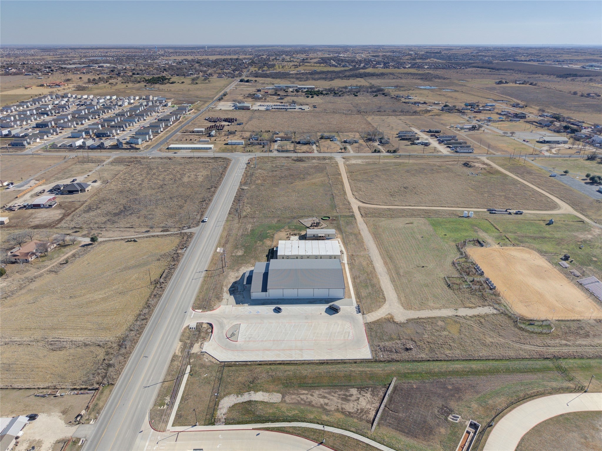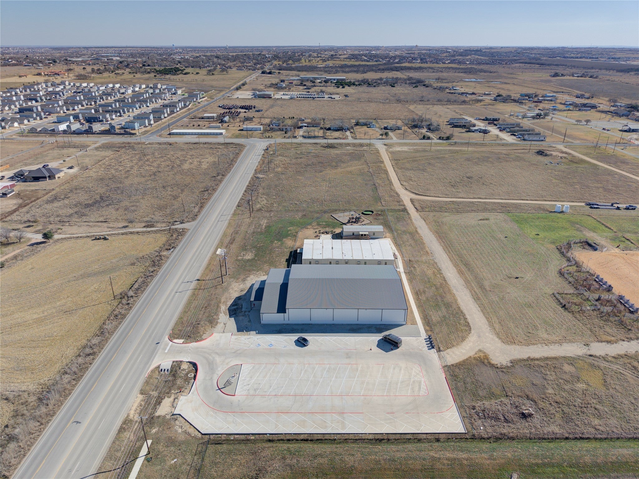 Bring your vision to life in this brand-new 16,000 square foot commercial shell, ready to be tailored to your next business venture. Originally designed as a private school with an indoor gym, this versatile facility offers the option to complete the original plan (blueprints are available) or reimagine the space to fit a wide range of business concepts. Inside, you’ll find an impressive 3,000 square foot entry foyer, already plumbed for men’s and women’s restrooms, leading into a massive 100' by 130' clear-span space —ideal for manufacturing, sports training, fitness, events, entertainment, or multi-use operations. Beyond the building, the additional acreage provides room for future expansion. Strategically located next to the new Double Creek Jarrell Elementary School, serving 600 to 700+ students, and surrounded by rapidly growing residential developments, this property sits in a high-demand corridor poised for growth. Endless possibilities await—schedule your private tour today.
