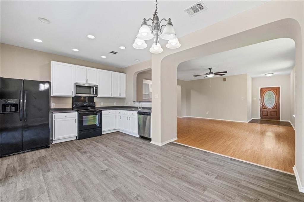 - Dishwasher, Electric Range, Free-Standing Range, Disposal, Microwave, Refrigerator