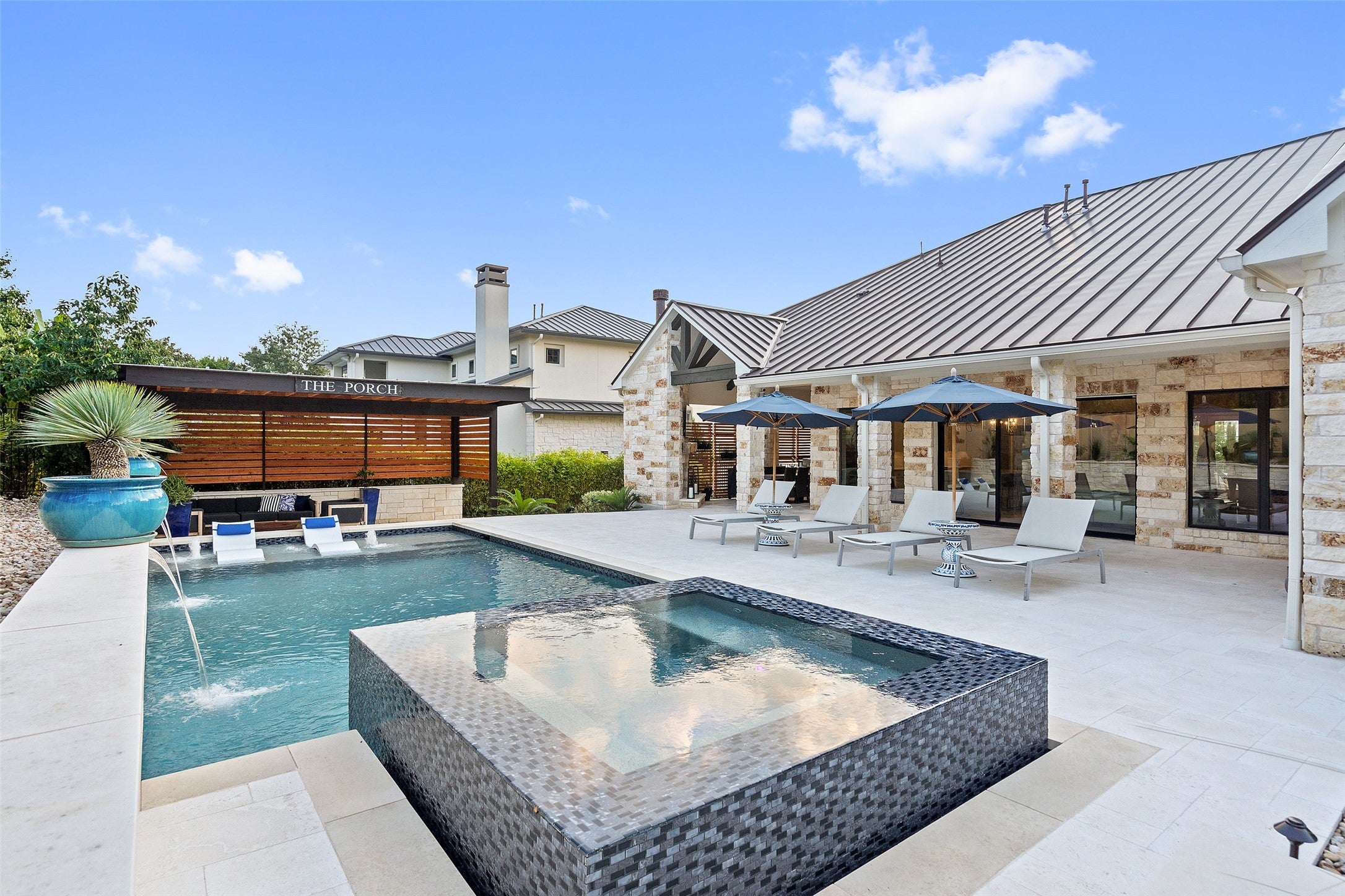 Welcome to 107 Bisset Ct, a stunning luxury home in the prestigious Rough Hollow community of Lakeway, Texas. Built in 2019 by award-winning Westin Homes, this meticulously crafted 4,494 sq ft residence offers the perfect blend of elegance, comfort, and functionality. With 4 spacious bedrooms, 3.5 bathrooms, a private office, media room, and high-end finishes throughout, this home is an entertainer’s dream in one of Lake Travis’ most desirable neighborhoods. Step into a gourmet kitchen outfitted with a Sub-Zero refrigerator, Wolf 5-burner gas cooktop, and custom cabinetry—ideal for home chefs and entertainers. The open-concept living and dining areas feature soaring coffered ceilings, herringbone tile flooring, and oversized windows that flood the space with natural light and showcase your private backyard retreat. The primary suite is a true sanctuary with a spa-style bathroom, soaking tub, glass-enclosed shower, dual vanities, and luxury finishes. Secondary bedrooms offer generous space and walk-in closets, with access to well-appointed bathrooms—perfect for family or guests. Set on a 0.327-acre lot in the heart of Rough Hollow, the backyard features a custom pool and spa with cascading waterfalls, outdoor kitchen, covered cabana with fireplace, and professional landscaping framed by a six-foot privacy wall—ideal for entertaining or relaxing. Additional highlights include a 3-car garage, wet bar, oversized laundry room, and access to Rough Hollow’s resort-style amenities: yacht club and marina, infinity-edge pool, lakeside dining, fitness center, and scenic trails. Located in Lake Travis ISD and minutes from Lake Travis, shopping, dining, and golf, this home offers the ultimate Hill Country lifestyle.