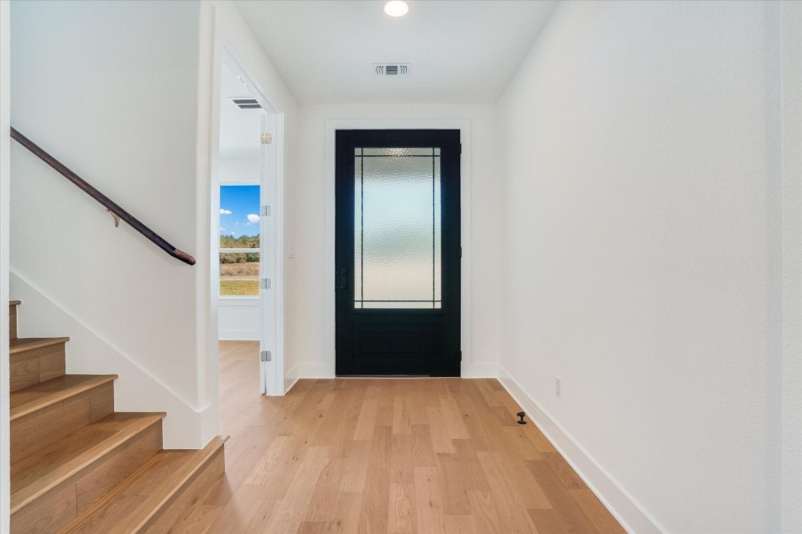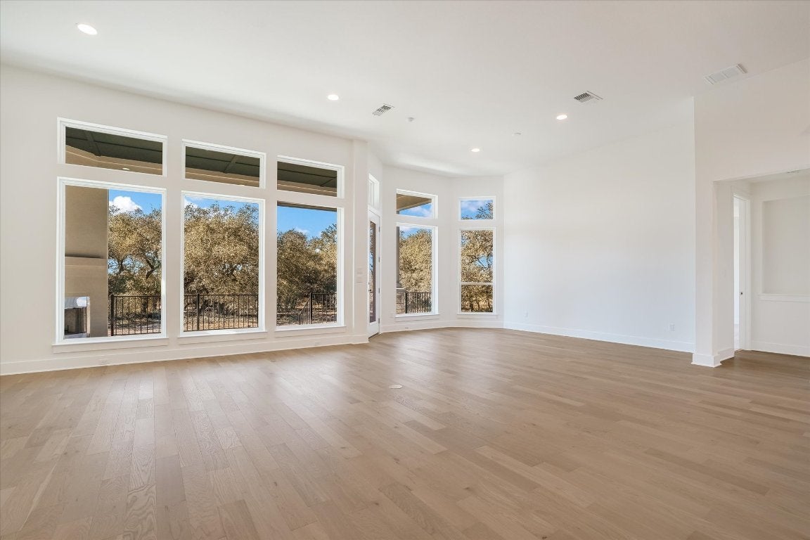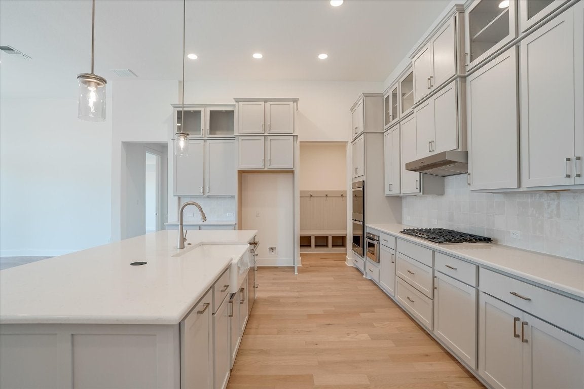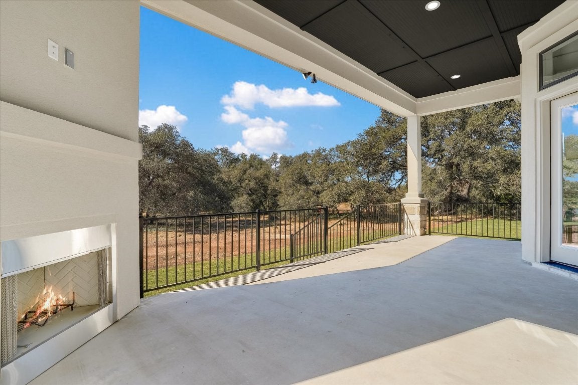 New construction home in Leander Estates. NEW 5% flex incentive to use on 3-2-1 buy down, 2-1 buy down, closing costs or price reduction. You could afford up to $125,000 more home than if you bought a resale—without raising your monthly payment. That means more space, more upgrades, and more of what you love. See Sales Manager for details. 1-acre homesite, 1.5 story 5 bedroom, 4 bath, study, game room, media room, 3-car garage. Vanderpool II floor plan. 4' wide iron front door; family room with 12' ceiling and corner direct vent fireplace with tile surround. Wood flooring in main downstairs living area, quartz-topped kitchen island with farmhouse sink. JennAir double ovens and Sharp microwave drawer. Upper kitchen cabinets to 10' high with glass fronts and puck lighting package. Upstairs bedroom and full bath, game room and media room w/prewire for surround sound. Rear door of the home leads to extended covered patio with outdoor fireplace. Primary bedroom with spa like en-suite bath, freestanding tub and large walk-through shower, quartz-topped double vanities; two walk-in closets. Laundry room with sink and space for freezer.