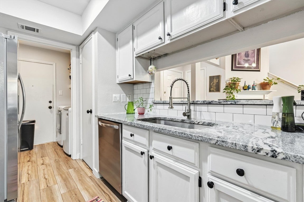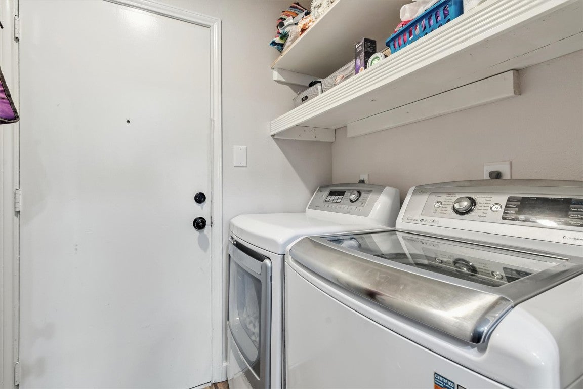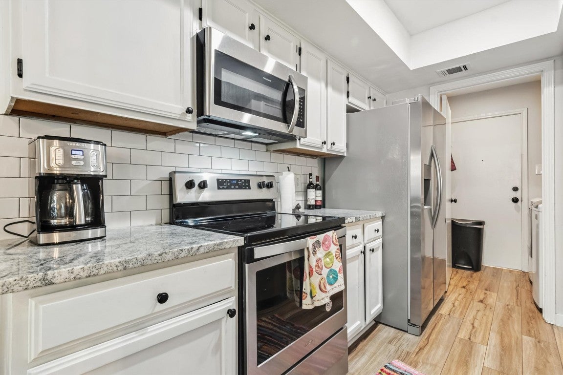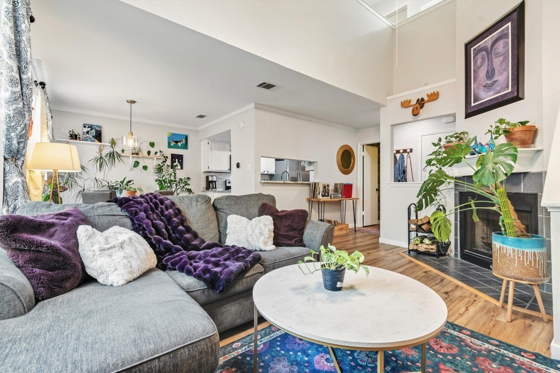 South Austin living has never been more convenient or cozy than at this adorable home off South Congress! Enjoy easy access to downtown, shopping and entertainment destinations with the freedom of a condo that lives like a house. This two-story detached unit in the well-established Sweetbriar Garden Homes community has been updated to offer the next owners comfort and security for years to come: new vinyl plank flooring throughout (no carpet!) and HVAC, windows and all appliances have been replaced in recent years. The lower level flows seamlessly in an open-concept design, with kitchen, dining, laundry and powder room easily accessible from the living room. Vaulted ceilings and a wood-burning fireplace add a touch of elegance. Upstairs, two large bedrooms are connected by a generous full bath, ideal for roommates or a work-from-home setup. A large deck in the back provides a tranquil spot to wake up with a cup of coffee, grill dinner for friends or unwind at the end of a long day. This particular unit offers a few additional perks, including a single-car garage with built-in storage, private driveway, tons of nearby visitor parking and proximity just a few feet from the community pool. Property upkeep is a breeze, with all outdoor maintenance provided by the complex. Whether you’re looking for a place to nest or a lock-and-leave lifestyle, this home is a fantastic opportunity!