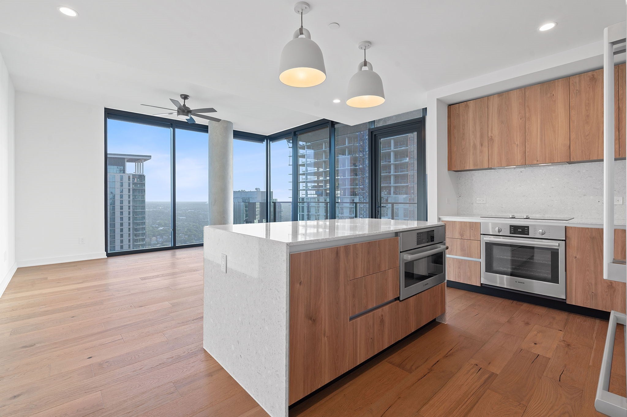 Experience luxury living at its finest in this fabulous corner unit at The Vesper, Austin's newest high-rise. This 2-bedroom, 2-bath residence offers breathtaking views of the Austin skyline and Lady Bird Lake through stunning floor-to-ceiling windows. Enjoy the expansive balcony perfect for entertaining or relaxing while soaking in the panoramic scenery. The unit boasts abundant storage, ensuring ample space for all your needs. The Vesper provides an array of top-tier amenities including a 24-hour concierge, a state-of-the-art gym, a yoga studio, an Echelon fit mirror, and 4 Peloton bikes in their own private rooms. Relax or entertain at the rooftop pool and lounge, or fire up the BBQ pits for a delightful outdoor gathering. Pet amenities including a dog wash station. Beautiful lobby and this unit comes with its own liquor locker for your use. Conveniently located near vibrant Rainey Street, this residence comes with 2 garage spaces, one equipped with an EV charger.