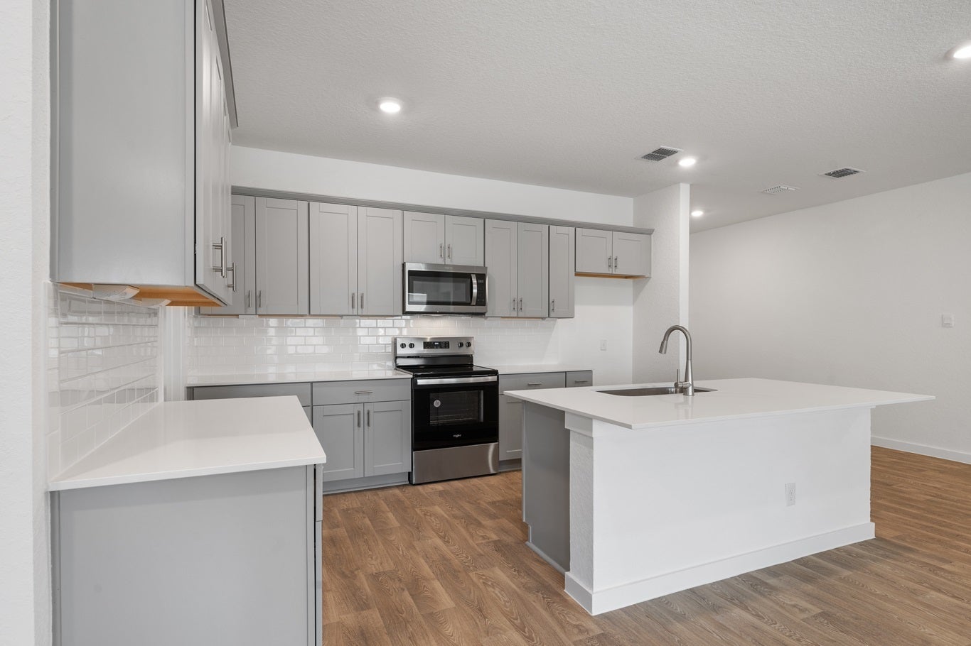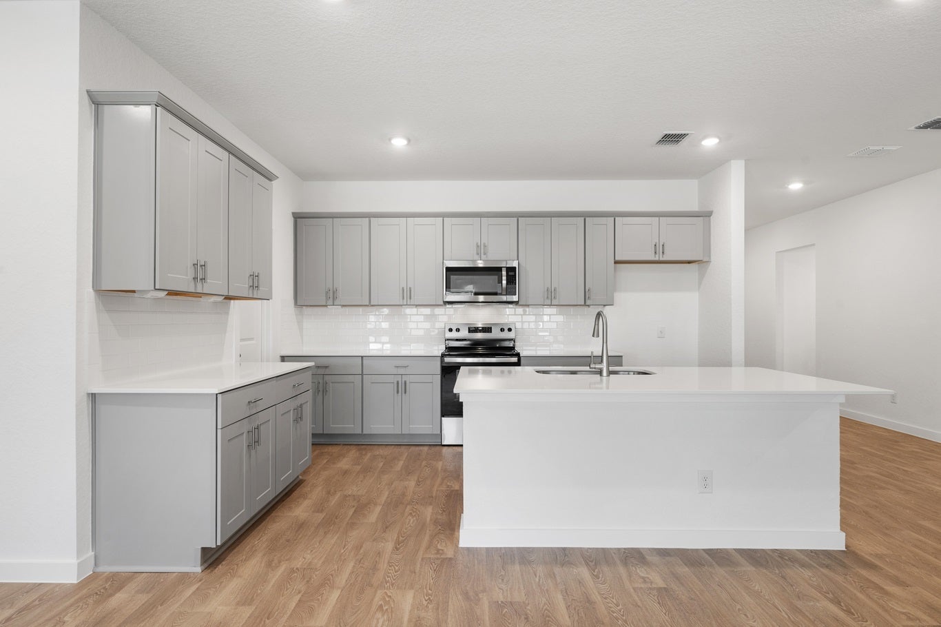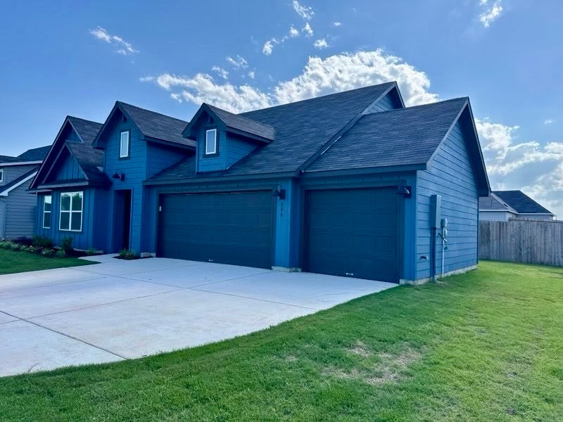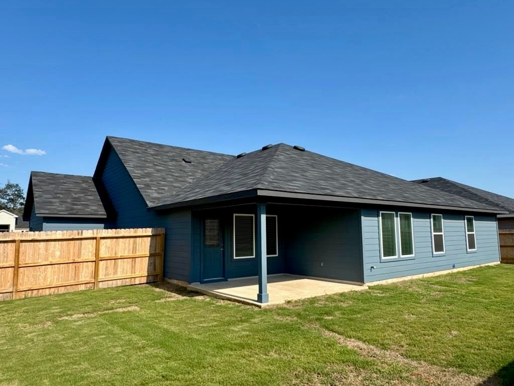 LUXURY LIVING in Fredericksburg! 2,314 SF, Farmhouse style, single-story home with 4 bedrooms + OFFICE, 2 bathrooms and THREE-CAR GARAGE. There are nine-foot ceilings throughout, with luxury vinyl flooring in the living areas, office, bathrooms, and utility room. Standout features include a 3-car garage, 12'x13' covered patio that opens to the backyard, two walk-in closets in the master bedroom, and a walk-in closet in two of the three side bedrooms! Only $35 rental application fee per adult! Entering the foyer, there are three bedrooms, the second bathroom and the utility room on to the left. Continuing down the foyer you will reach the open concept living space. The kitchen has a large island, walk-in pantry and multiple upgrades including quartz countertops, subway tile backsplash, and stainless steel appliances. Attached to the living area is the office/flex space which faces the backyard. The master bedroom is set aside off the living room which looks out to the covered patio. The master bedroom offers plenty of space and 2 large walk-in closets. The master bathroom features a raised dual vanity and a tiled walk-in shower. This home has a fenced-in backyard surrounded by mature trees, with a fully sodded yard and full irrigation system. This home includes our America's Smart Home® base smart home package which includes the Alexa Voice control, Front Video Door Bell, Front Door Deadbolt Lock, Home Hub, Deako® Smart Switch, and Z-Wave Thermostat. Conveniently located of TX HWY 16, Harmony Hills is 3 miles from Fredericksburg’s charming Main Street. Explore the locally owned shops, boutiques, art galleries and restaurants along this National Historic District. Fredericksburg is also home to over 60 wineries and tasting rooms as well as major events and festivals like Oktoberfest, Christmas Nights of Lights, and the Lavender Festival.