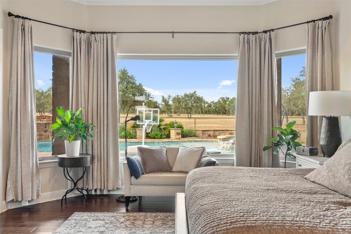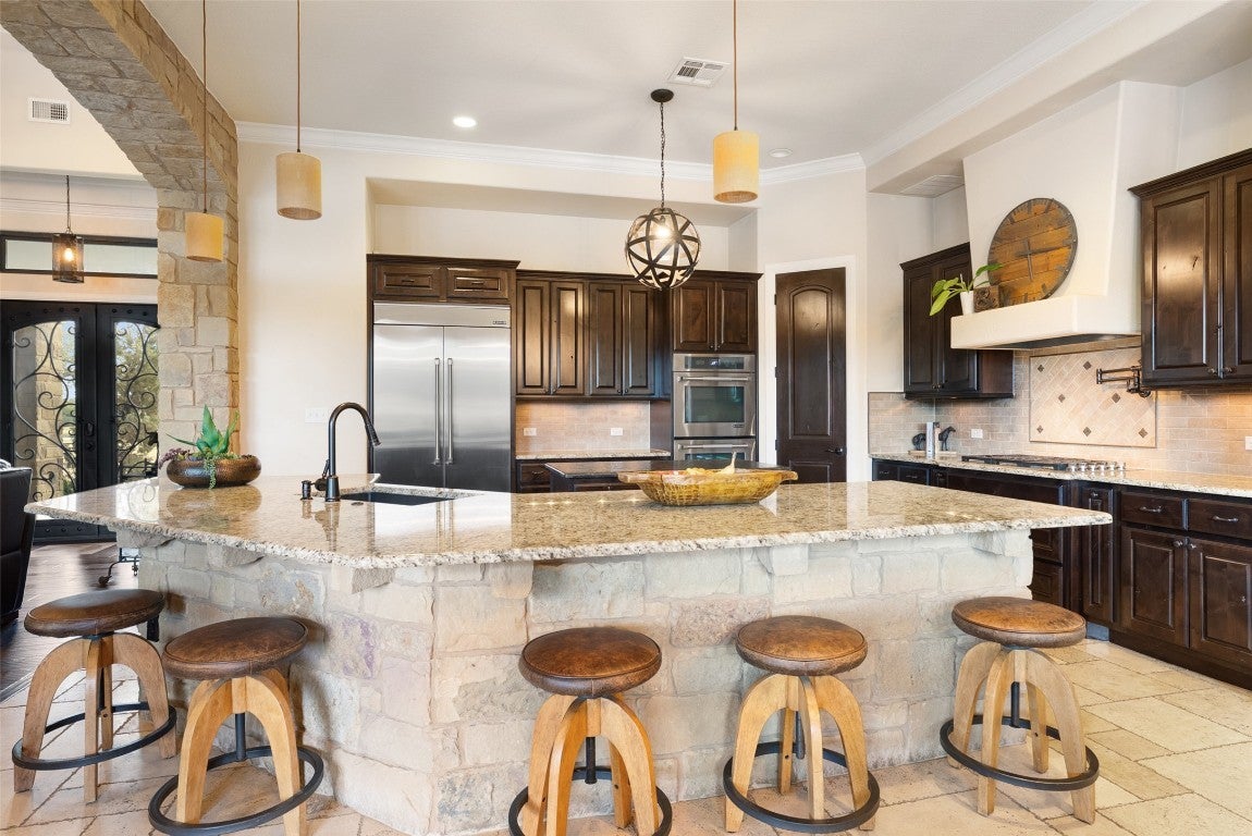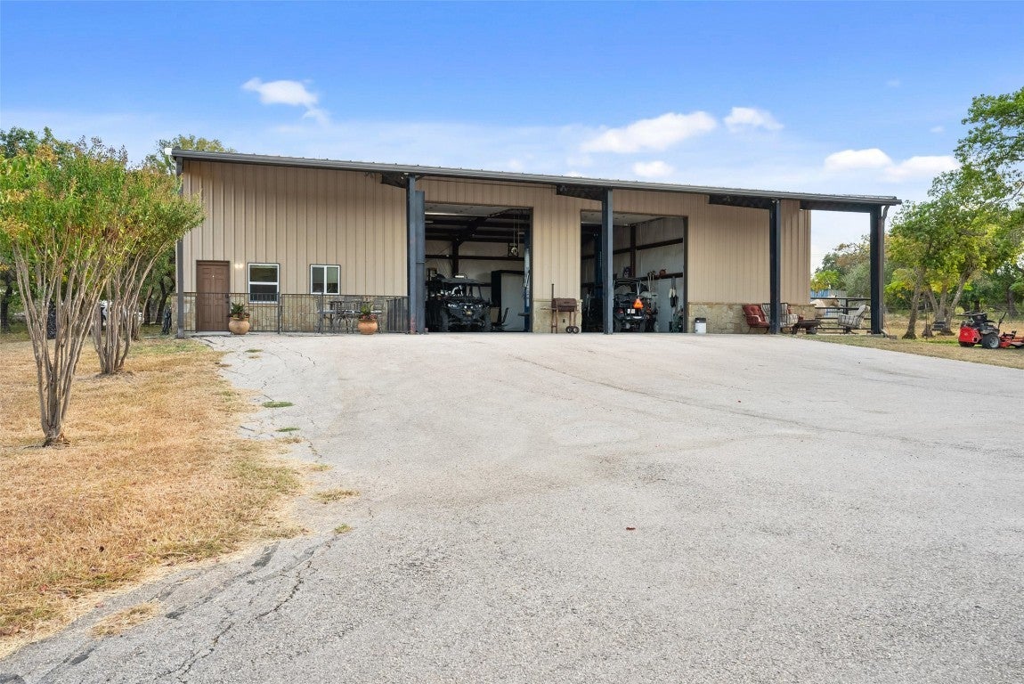Experience the epitome of Hill Country luxury at 2700 County Road 282. A 25.7 acre estate designed with exceptional craftsmanship. This 5,437 sq. ft. custom-built residence showcases exquisite details such as knotty alder doors, upgraded plaster and paint, Anderson Top Class windows, and a 24-gauge C-lock steel roof. The geothermal HVAC system, insulated walls and garage doors, and 100% LED lighting ensure lasting efficiency and comfort. A Savant home automation system controls lighting, audio, and climate throughout, while ambient rope lighting and Philips Hue color features enhance every space. Enjoy effortless living and entertaining with open-concept interiors, a chef’s kitchen, dedicated media room, and walk-in attic access. Outside, the expansive covered patio with outdoor kitchen and fireplace opens to a resort-style pool and spa surrounded by peaceful oak-studded acreage. The property also includes an 800 sq. ft. workshop with full guest quarters featuring two bedrooms, two baths, and a complete kitchen— ideal for extended family, guests, or private office use. With a private well, septic system, and electric gated entry, this fully fenced estate captures the perfect balance of privacy, innovation, and timeless Texas charm—all within Liberty Hill ISD.