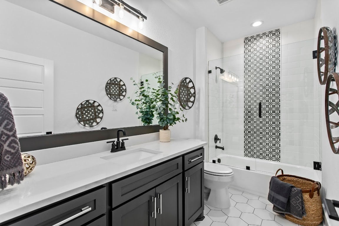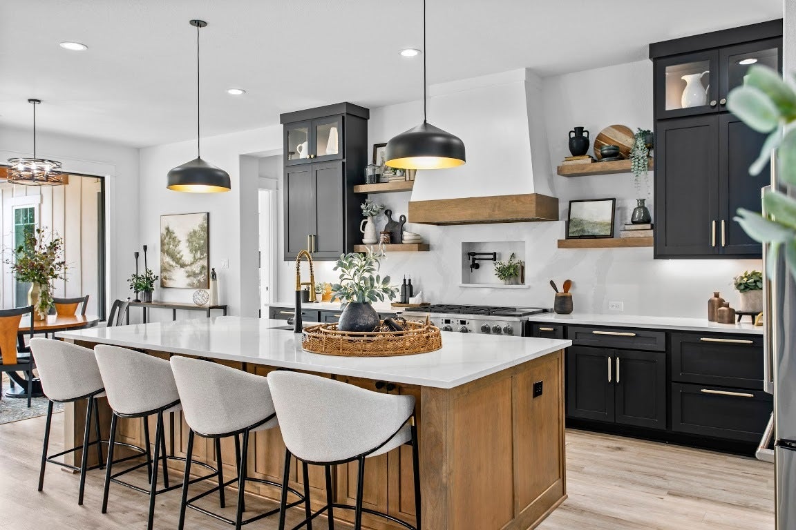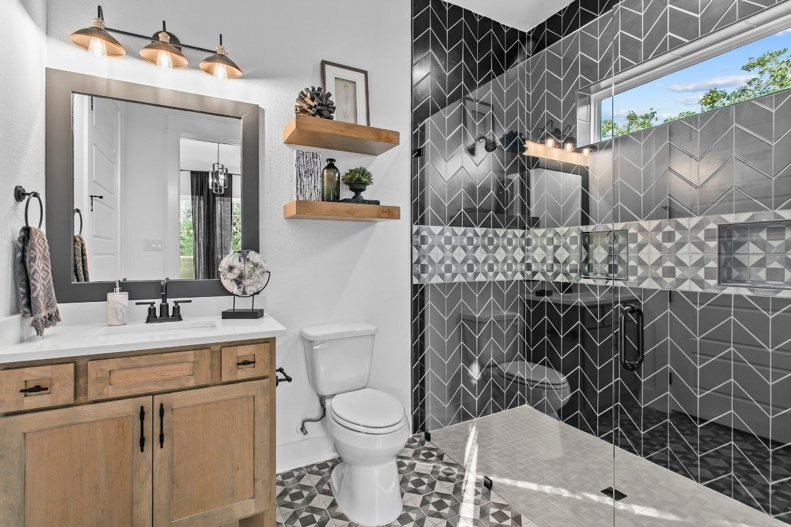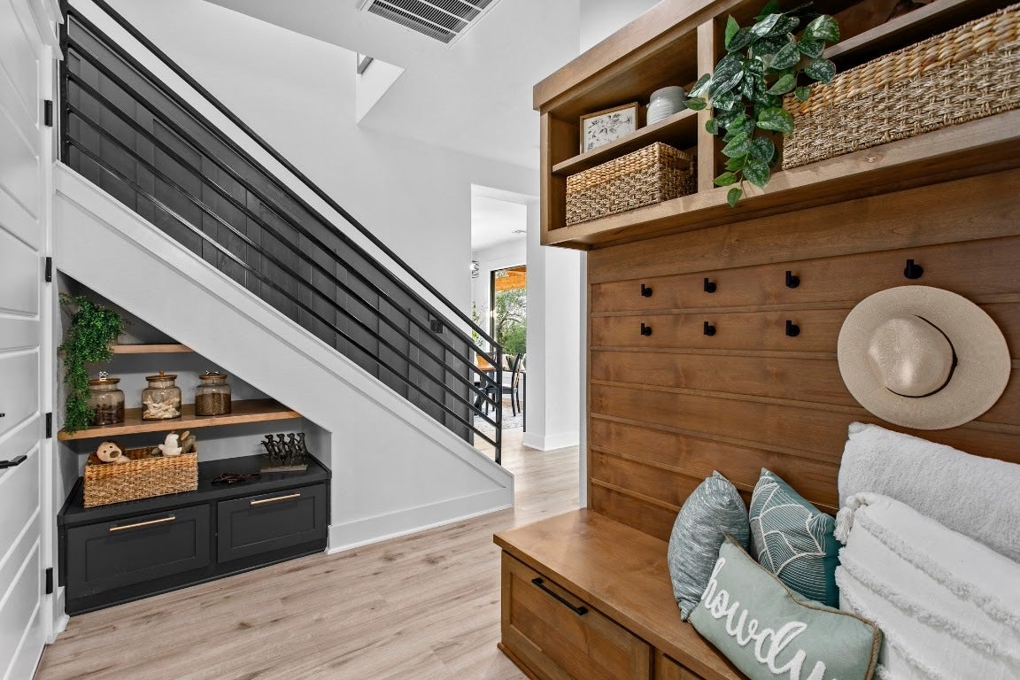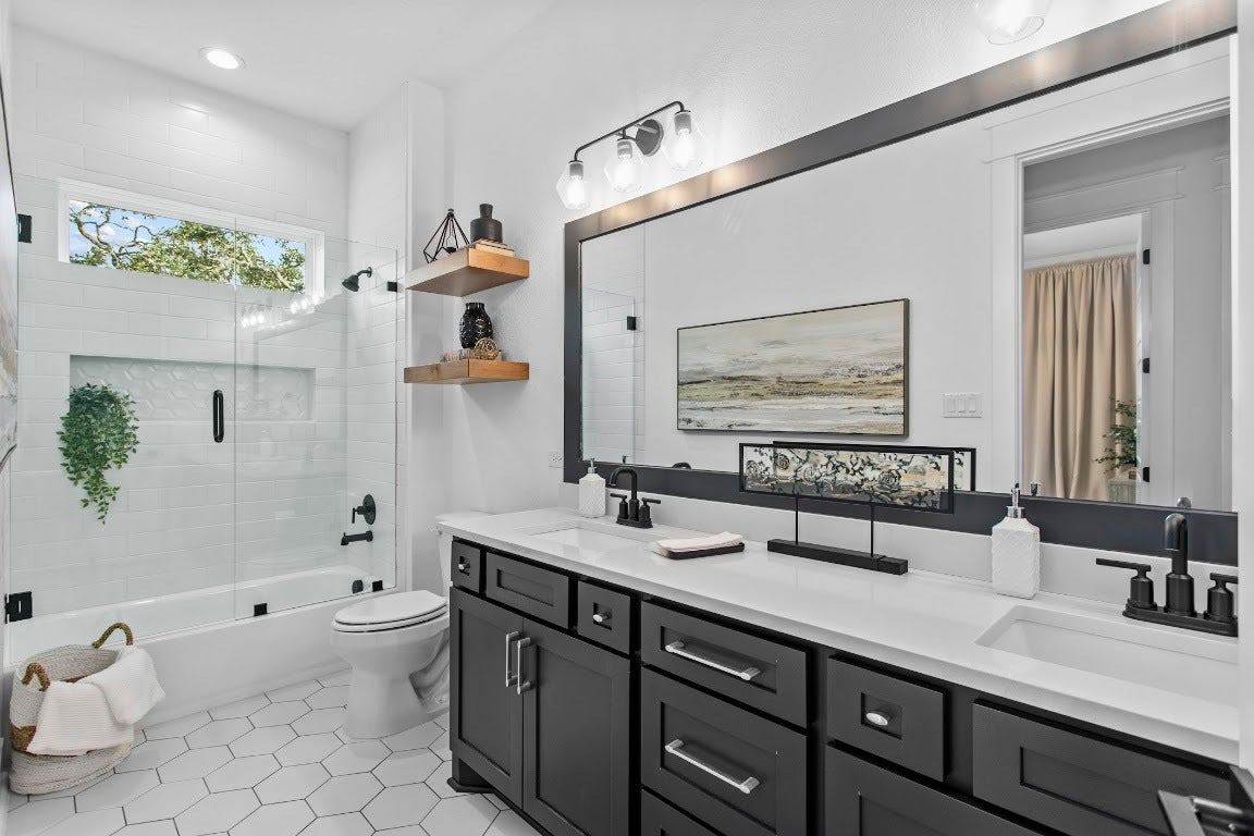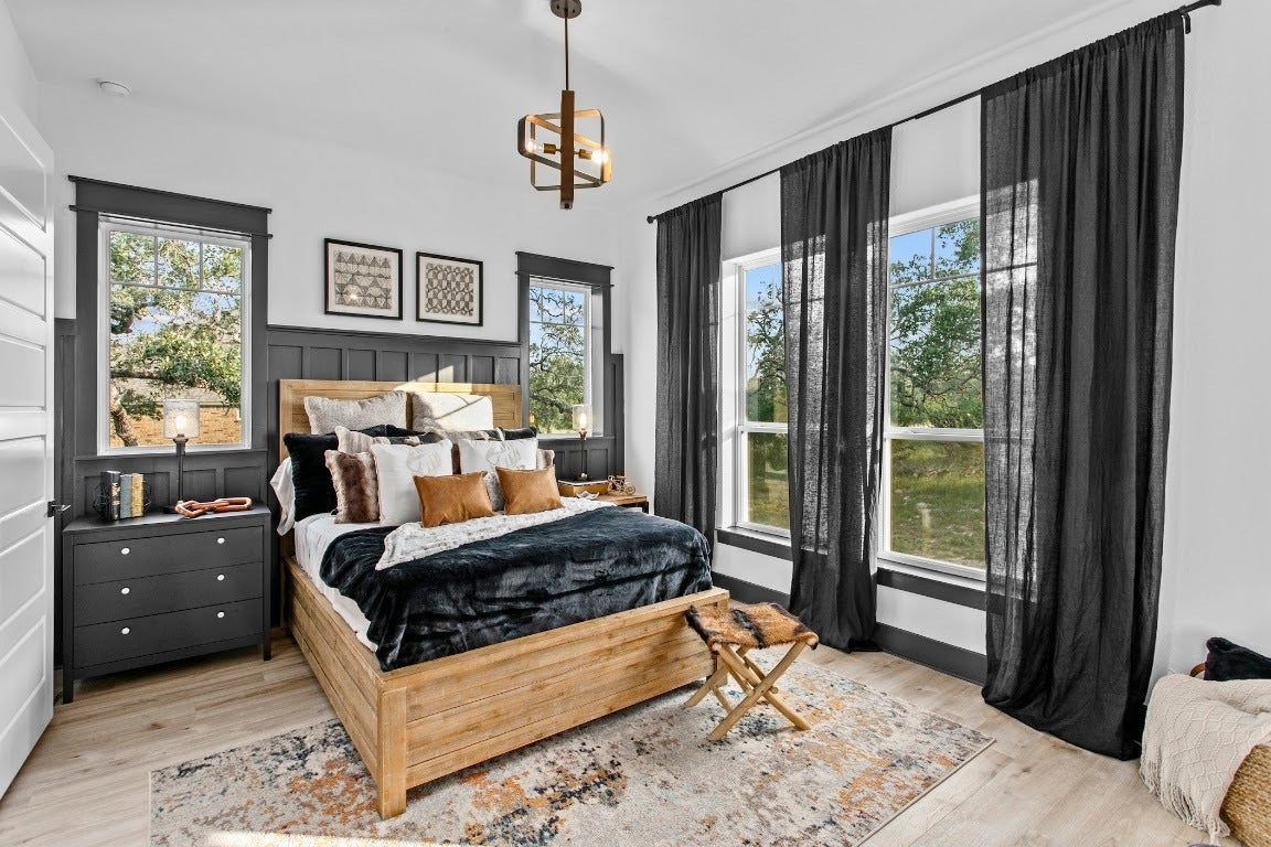 A Rare Opportunity to Own a Custom Model Home by Kurk Homes! From the moment you walk through the double front doors, the two-story foyer with herringbone tongue & groove ceiling sets a welcoming tone. Thoughtful details are found throughout—from unique designer lighting, LVT floors, the private study with sliding doors open and the open concept living room anchored by a striking fireplace and accented with wood beamed ceilings. The kitchen is a true centerpiece, featuring an oversized island, quartz countertops, pot filler, floor-to-ceiling two toned cabinetry, and rich finishes. Large seamless windows showcase views of the spacious covered patio and surrounding landscape. The owner’s suite is tucked away with vaulted ceilings, vertical shiplap, a spa-like bath with a freestanding tub, walk-in shower with tiled archway, and a wrap-around vanity with dedicated sitting space. A custom room sized closet with island connects directly to the utility room for added convenience. Upstairs, a spacious game room and private guest suite offer room to unwind or host. Additional highlights include a mudroom with built-ins, powder bath, charming doggie nook, custom metal stair railing, an exterior of stucco and natural full-dimensional stone, and an oversized three-car garage. Every space was designed with care—this home is truly special.