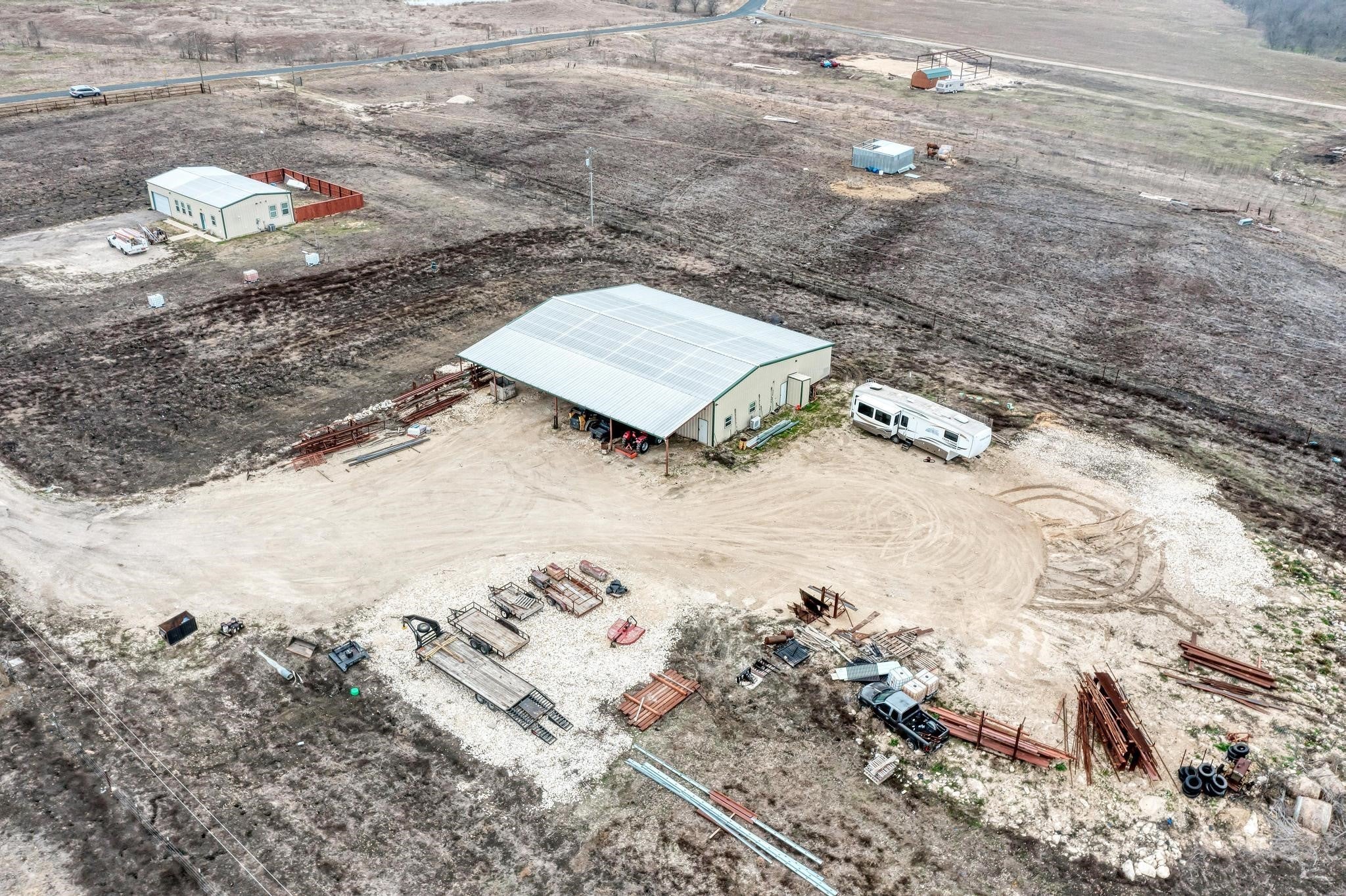 3200 SF foam insulated metal building currently used as a welding workshop but could be used for various other small or large business enterprises. Roll up doors on 3 sides of building. This building has an office space and breakroom for timesheets/refrigerator/microwave and a separate bathroom. It has a 20x20 attached storage area to the rear of the building that is covered under back canopy. It has 1600 SF of canopy space in back and front of shop for parking and storage. RV hookup next to shop currently under a lease.