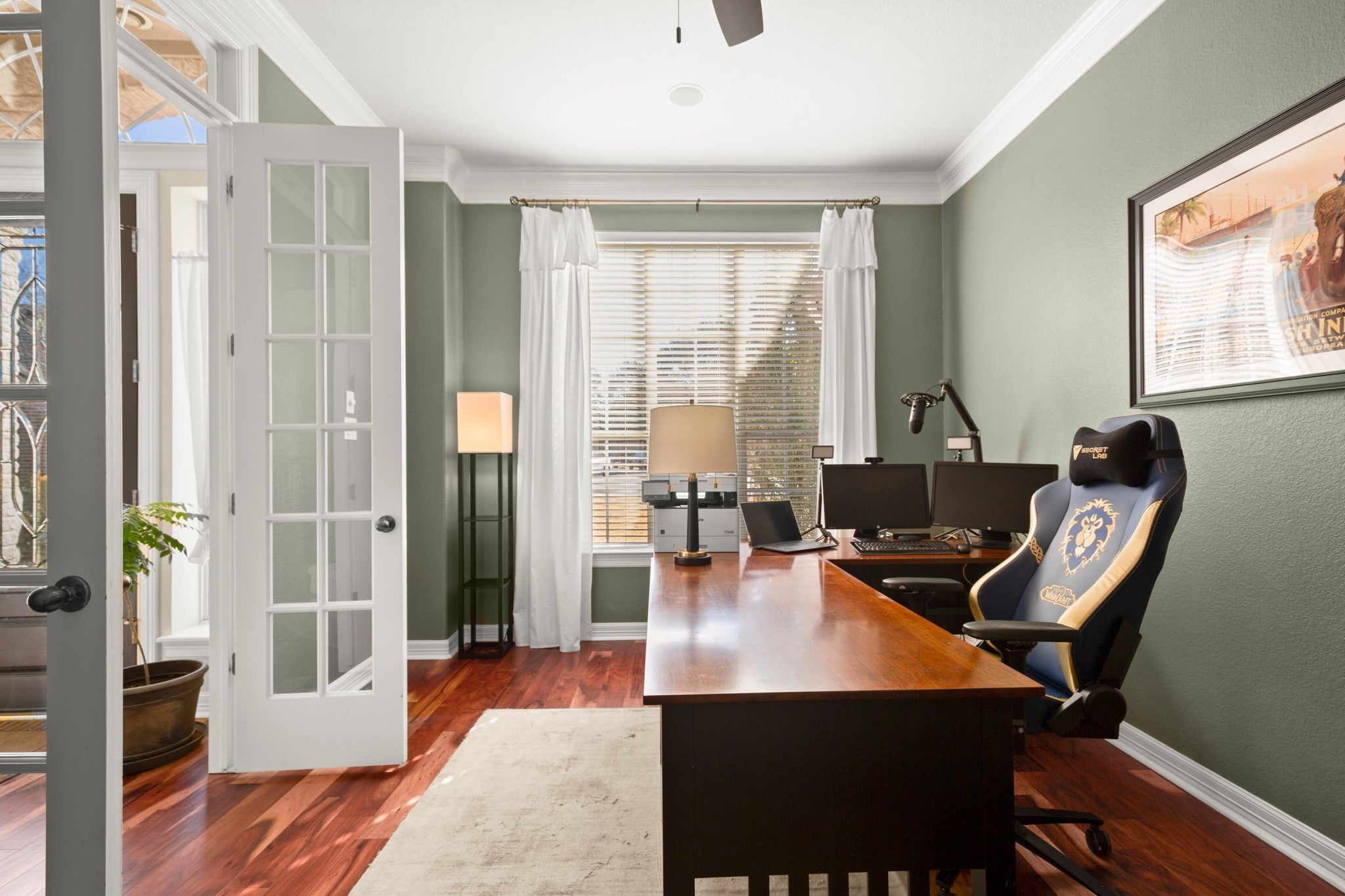 Set within the coveted Forest Creek golf course community, this home presents an exceptional opportunity to enjoy suburban living with everyday convenience. Surrounded by rolling fairways, mature trees, walking trails, and a true sense of neighborhood charm, Forest Creek is one of Round Rock’s most established and desirable communities which also hosts regular optional monthly neighborhood gatherings. Located in the back of a very private and quiet cul de sac, the home is ideally positioned with quick access to top-rated RRISD schools, major employers, shopping, dining, and entertainment, while still offering an easy commute to Central Austin, Austin International Airport and The Domain and just seconds from the Dell Diamond with Round Rock Express baseball team, AAA affiliate of the Texas Rangers. This East facing home is flooded with natural light, has soaring sky high ceilings, a wide open floorplan from the kitchen to the living room and breakfast area with a double island perfect for gathering in the kitchen. The primary bedroom is located on the first floor has a large bump out sitting area or a perfect work from home nook. The home office is located right off the front door entry and is a perfect for a dedicated work from home scenario. Upstairs is large second living room with the 3 secondary bedrooms and bathrooms and a media room/theatre. A generously sized back yard offers ample room for a future pool with a recently added outdoor living space. This private outdoor blank canvas is ready for the next owner to design their own custom retreat and personal oasis. The property footprint is slightly elevated which gives it an expansive view. From the large second floor windows one can enjoy the annually City of Round Rock fireworks in July! Offered as one of the best-priced homes in Forest Creek, opportunities like this are rare. Homes in this community do not come available often!