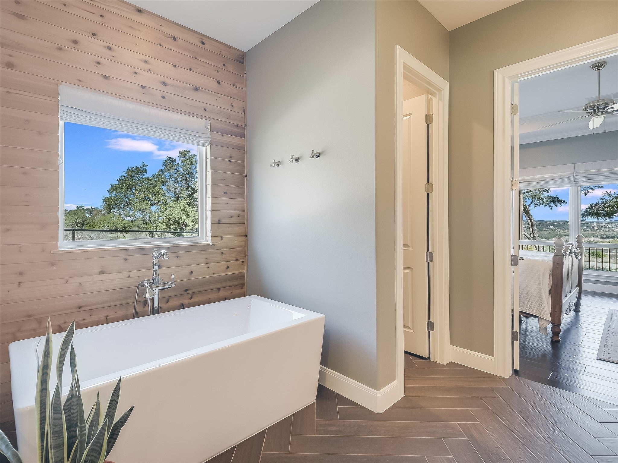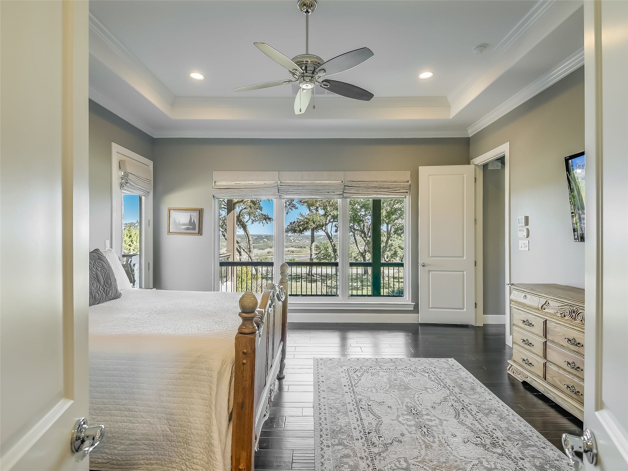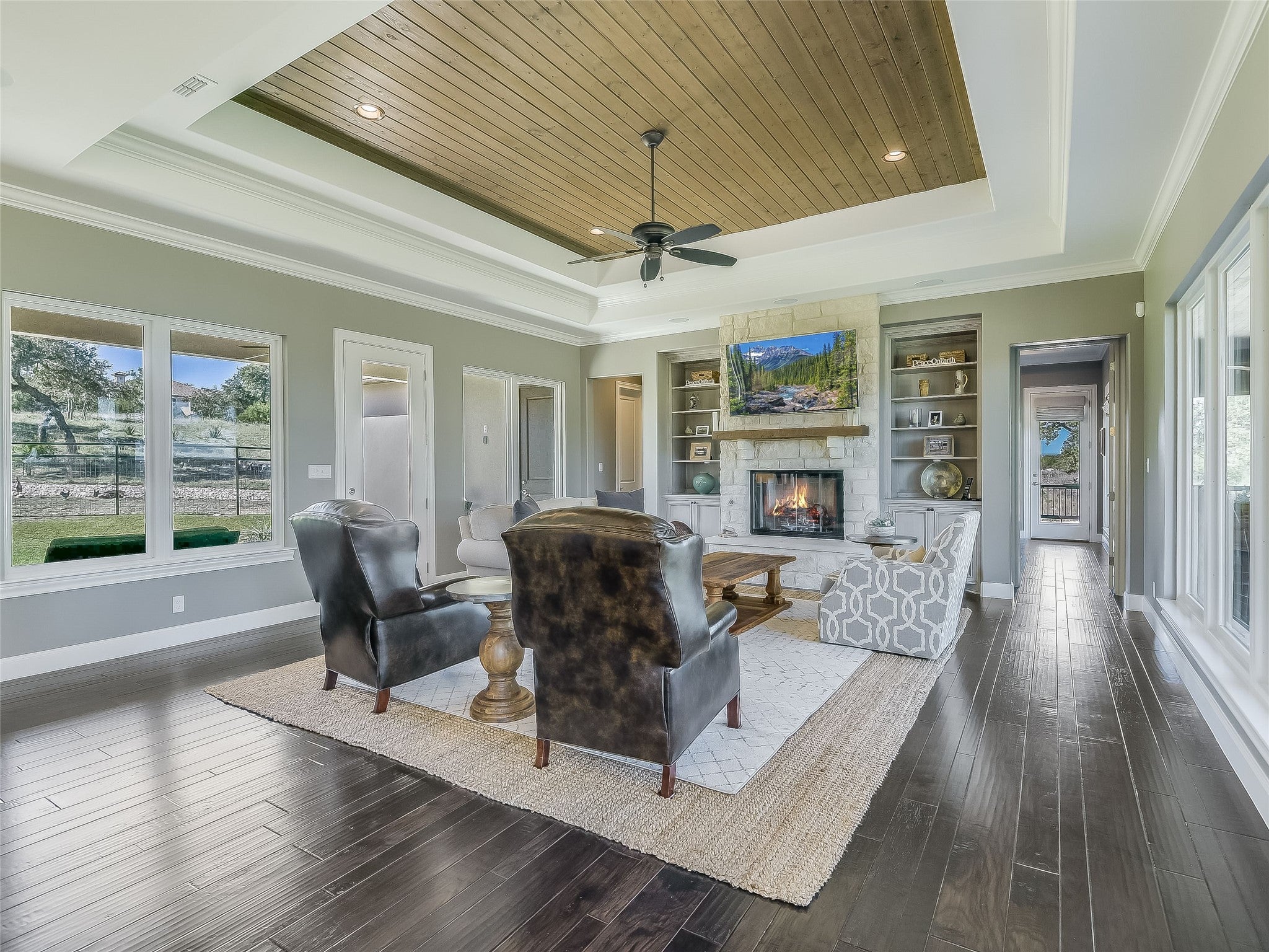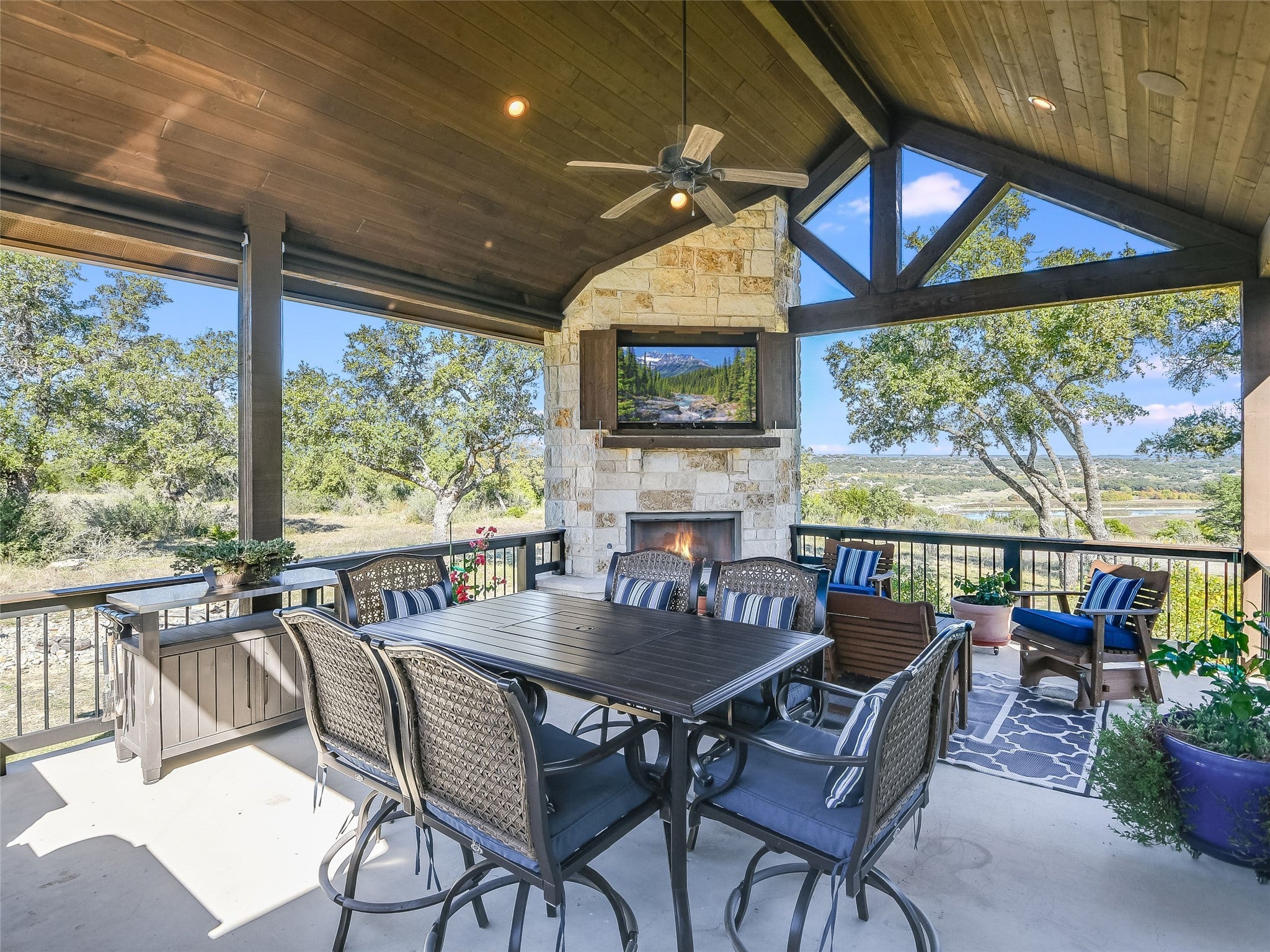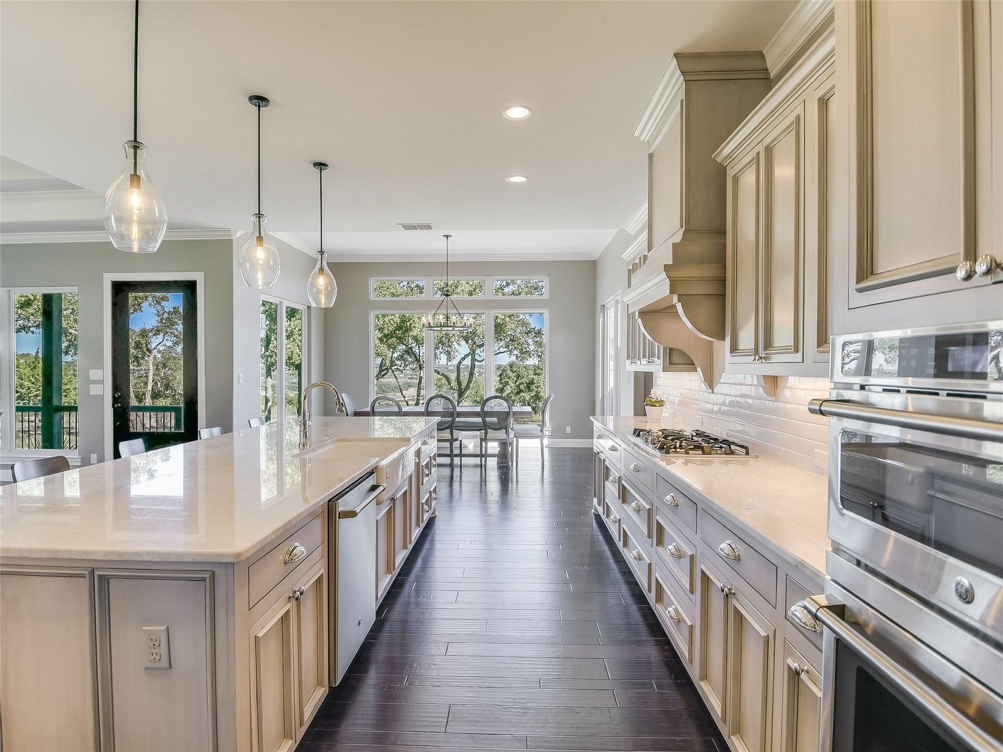 A place where mornings begin with riverfront sunrises and evenings end under Hill Country skies. Located within the prestigious gated community of Cordova Bend, this stunning home rests on 1.82 oak studded acres. The designer kitchen showcases custom cabinetry, striking Taj Mahal quartzite countertops, and a five burner gas cooktop. An expansive 18.x 24 outdoor living terrace invites effortless entertaining and unforgettable sunrise views over the Guadalupe River. An extended 3 car garage offers ample room for vehicles and boat storage, while the community HOA park provides convenient Canyon Lake access for kayaks and small watercraft. Come experience where the rhythm of the river, the beauty of Canyon Lake, and the tranquility of Hill Country living define everyday life.