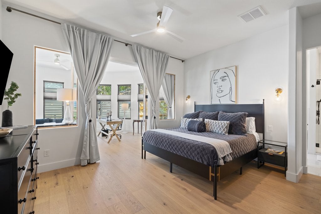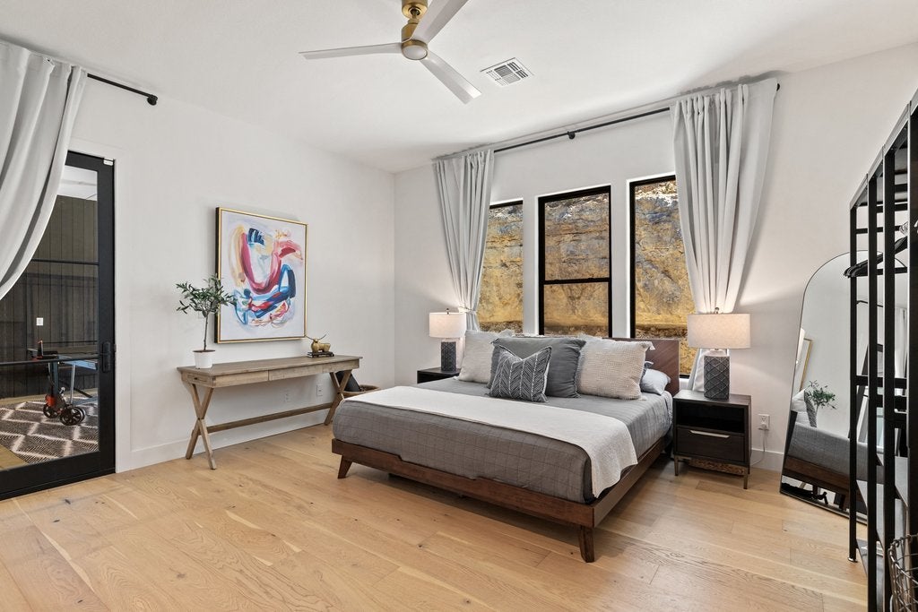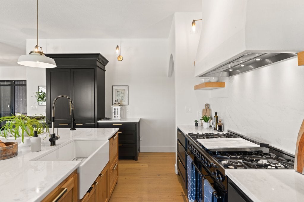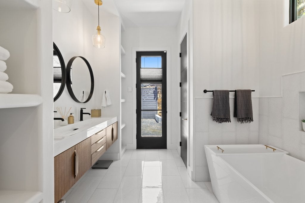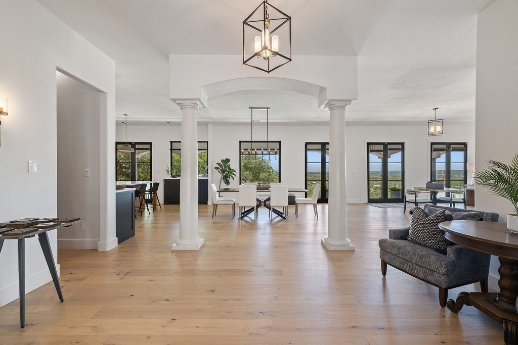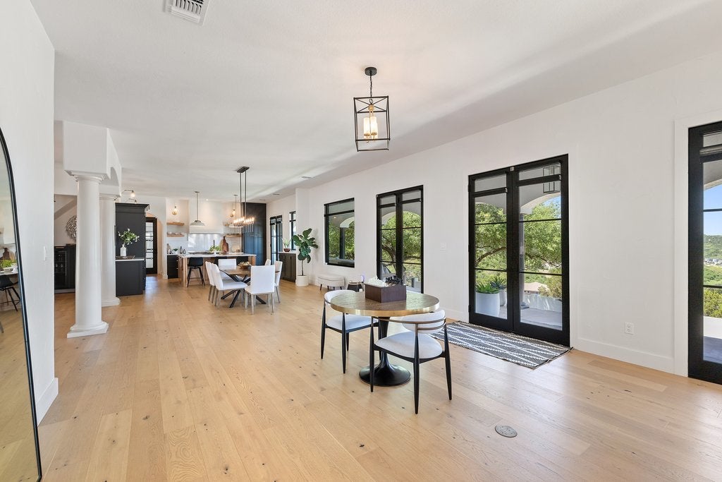 Lake Travis Getaway Estate: Santa Barbara Charm with Guest House & Lake Views. Perched above the rolling Hill Country with sweeping Lake Travis views, this rare double-lot estate embodies elevated indoor-outdoor living. From arrival, it feels less like a home and more like a permanent retreat. A stunning 90-foot veranda stretches across the front, framing panoramic vistas and extending the living space, perfect for sunrise coffee or evenings under painted skies. Outdoor living unfolds from a pergola-shaded lounge and private back porch to a front terrace with year-round hot tub and chiller, plus a fully fenced turf yard offering polished, low-maintenance enjoyment. Inside, the 3,738 sq ft residence is thoughtfully reimagined with wide-plank hardwoods, soaring 10-foot ceilings, expansive windows, and curated designer finishes. The main living area centers on a custom stucco fireplace and flows seamlessly into dining, a chef’s kitchen, and outdoor spaces. The kitchen features Brazilian marble, a large island, Dacor built-in refrigerator, double-drawer dishwasher, 48” professional range, plus a butler’s pantry, mudroom, and powder bath. The private primary suite offers a spa-like bath, in-suite laundry, and attached sunroom or office. Beyond three bedrooms, flexibility abounds with an upstairs bonus room (optional fourth bedroom), dedicated study, and art studio or hobby space. A fully equipped guest suite with private entrance, complete with kitchen, living, laundry, and Gaggenau refrigerator is ideal for multigenerational living or STR income. Extensively rebuilt, upgrades include a new flex room, custom garage storage, walk-in attic, Tesla charger, whole-home filtration, heat pump, dual tankless heaters, and Class 4 impact-resistant roof. Located in Briarcliff near the marina, dining, wineries, golf, pickleball, and Hill Country Galleria, within acclaimed Lake Travis ISD. A front-row seat to breathtaking views, designed to be lived, shared, and enjoyed daily.