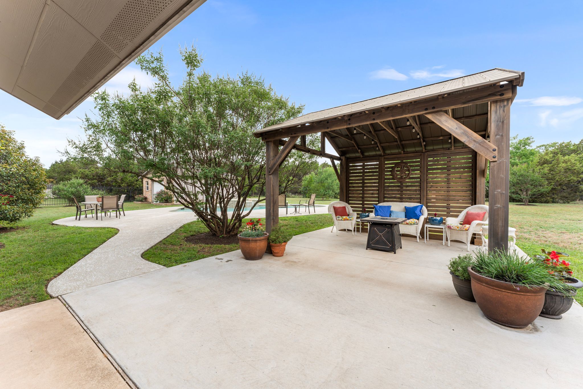- Back Yard, Landscaped, Moderate Trees, Open Lot, Few Trees, Private