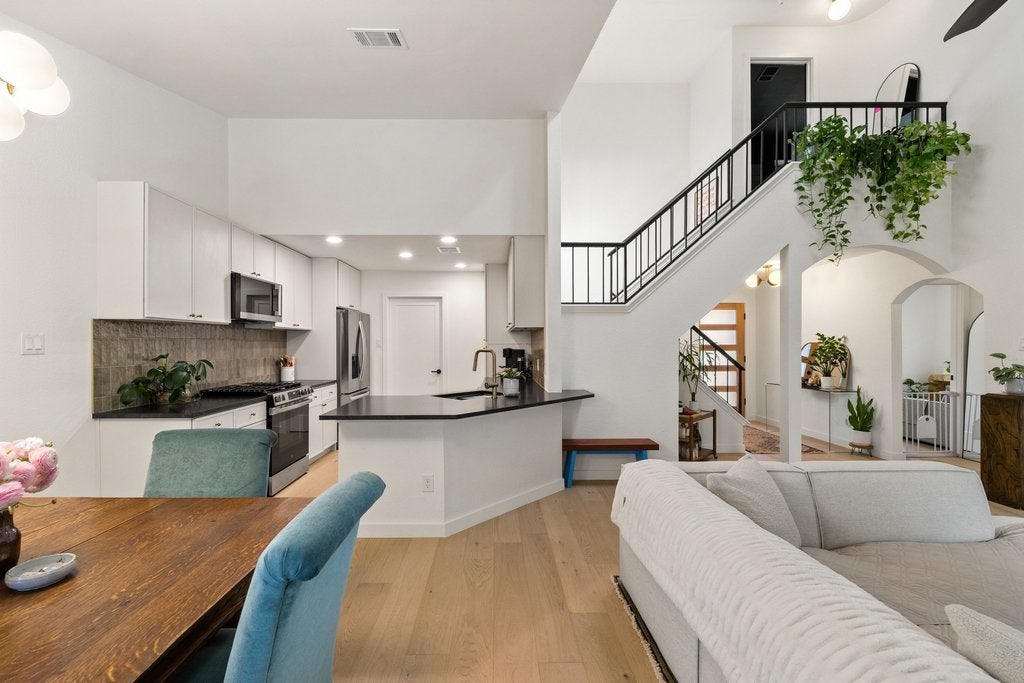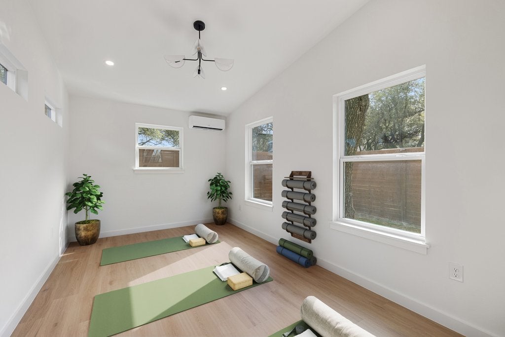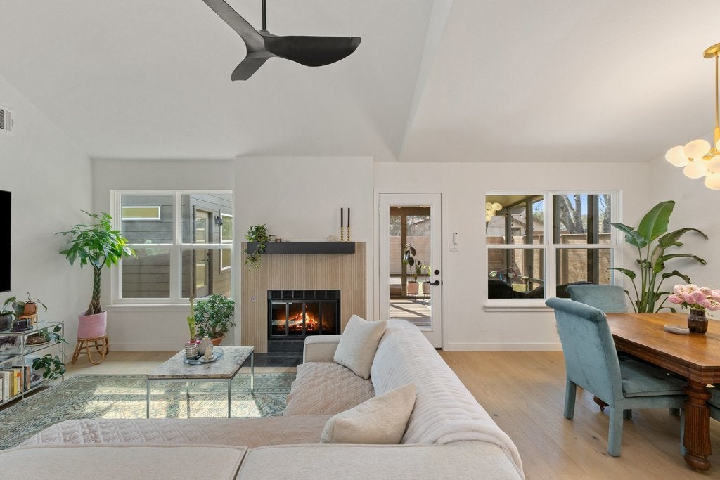 Located in the heart of Southwest Austin’s Maple Run neighborhood, this 3-bedroom, 2-bath home was remodeled in 2025 by Pesoli Properties with thoughtful design and elevated finishes throughout. Soaring ceilings, abundant natural light, and wood floors in the main living area create an open, airy feel, while the fireplace adds warmth and character. The kitchen features a beautiful tile backsplash, stainless steel appliances, and bar seating, flowing seamlessly into the dining and living area for entertaining. Two bedrooms are located on the main level, and the primary suite is privately tucked away on the second floor. Offering a quiet retreat separate from the rest of the home, the space features high ceilings, wood floors, a walk-in closet, and a spa-like ensuite bath with a double vanity, walk-in shower, and soaking tub. Stepping outside, the backyard is designed for health and wellness and entertaining alike, featuring a screened-in porch, attached sauna, outdoor shower, and a cowboy pool. A detached studio with a mini-split provides flexible space for a home office, gym, yoga studio, or guest overflow. Set on a charming, tree-lined street in Maple Run and just minutes from South Austin’s shopping, dining, and entertainment, this home delivers standout indoor-outdoor living in a highly desirable location. Stepping outside, the backyard is designed for health and wellness and entertaining alike, featuring a screened-in porch, attached sauna, outdoor shower, and a cowboy pool. A detached studio with a mini-split provides flexible space for a home office, gym, yoga studio, or guest overflow. Set on a charming, tree-lined street in Maple Run and just minutes from South Austin’s shopping, dining, and entertainment, this home delivers standout indoor-outdoor living in a highly desirable location.