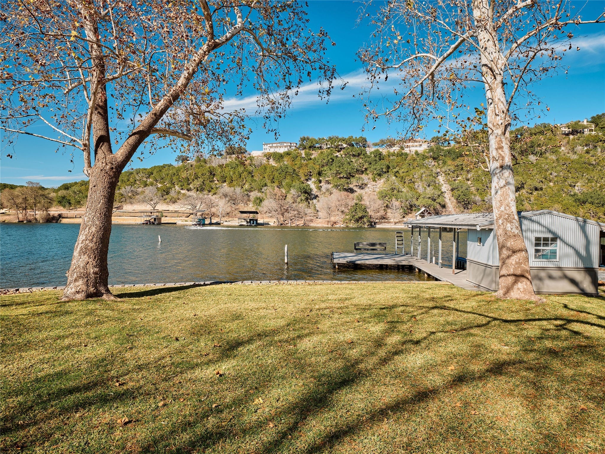 Situated on one of the most desirable stretches of Lake Austin, 3016 Edgewater Drive offers a rare opportunity to own a fully reimagined waterfront residence with a private boat dock and effortless access to the lake lifestyle. Completed in Spring 2023, the extensive remodel transformed the home into a design-forward retreat that balances architectural integrity with modern sophistication. Floor-to-ceiling steel windows and doors frame serene water views throughout, filling the home with natural light and creating a constant connection to the lake. The residence reflects the collaboration of an exceptional team, with Crowell Builders executing the renovation, Newberry Architecture leading the design and construction oversight, and Fern Santini curating interior selections. White oak engineered flooring, custom walnut cabinetry, floating stairs with bespoke railings, and a statement brass vent hood create a cohesive, elevated aesthetic. The chef’s kitchen is outfitted with a 48” Wolf 6-burner range with double ovens and griddle plus column Sub-Zero refrigeration. A high-efficiency heat pump HVAC system, advanced airflow technology, tankless water heating with circulating hot water, motorized shades, integrated Sonos audio, and full irrigation ensure a truly turnkey experience. Outdoors, a Lynx grill and private dock set the stage for lakeside entertaining, sunset dinners, and spontaneous days on the water. With its premier Edgewater address in Eanes ISD, meticulous 2023 remodel, and uncompromising level of design and execution, this Lake Austin property represents a rare blend of luxury, privacy, and timeless desirability. Voluntary HOA membership available through Lake Hills Community Association at $650 annually. Membership is required for access to community park and boat ramp. Tax and assessed values are estimates for illustration purposes only. All figures should be independently verified.